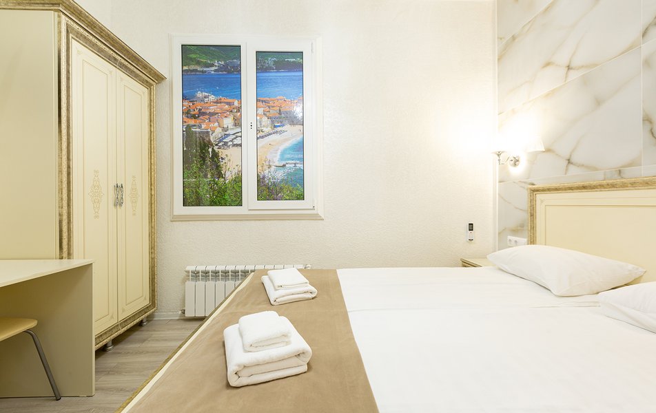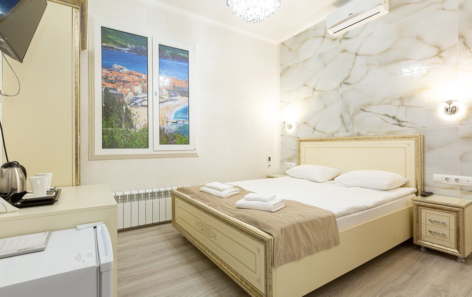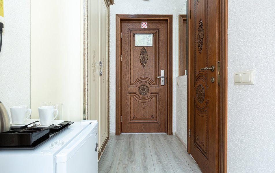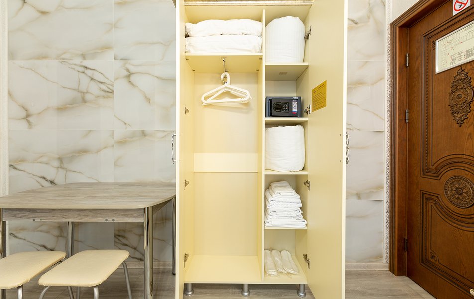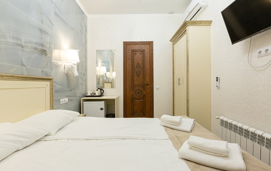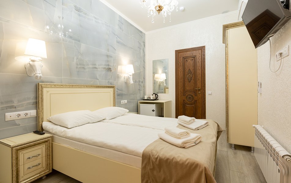 Бюджетный 2-местный (без окна) Количество комнат: 1-комнатный Тип номера: Стандартный Вид из номера: без окна Кол-во номеров: 3 Кол-во основных мест: 2 Площадь (кв. м): 12 Мебель: зеркало, кровать двуспальная, прикроватные тумбочки, шкаф Оборудование: кондиционер, мини-холодильник, сейф, телевизор ЖК, чайный набор посуды, электрочайник Санузел: с душевой кабиной, туалетные принадлежности, фен Сервис: Wi-Fi бесплатно, room-сервис, смена полотенец, смена постельного белья, уборка номера