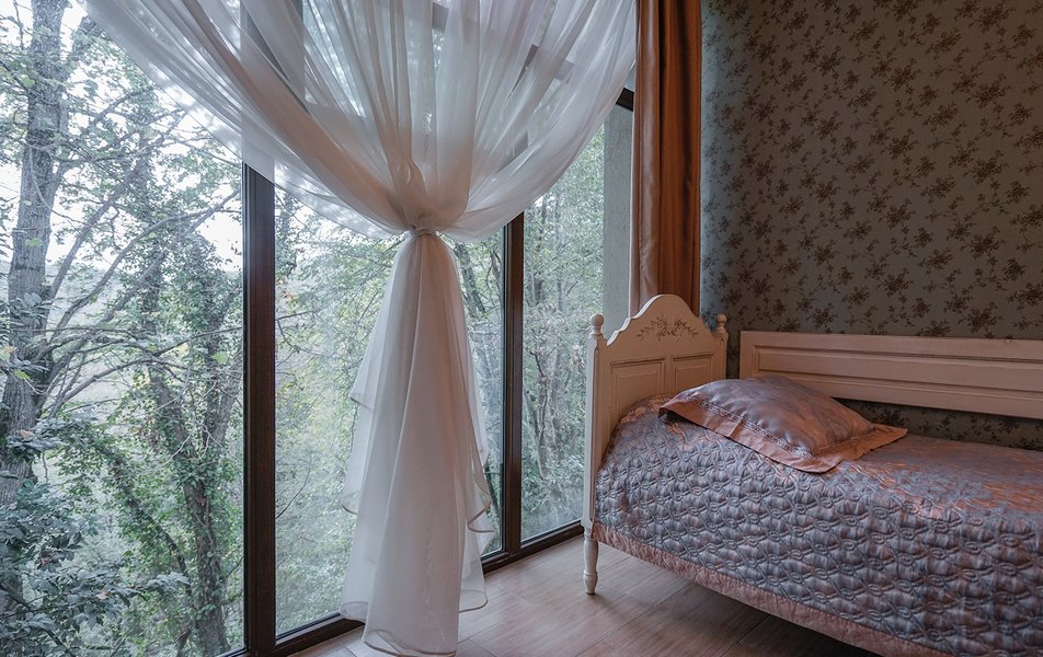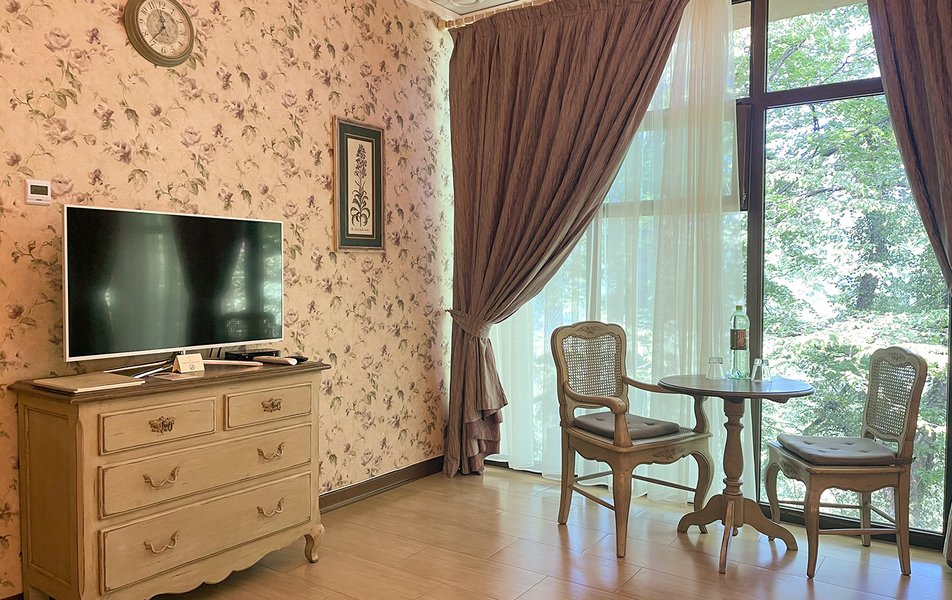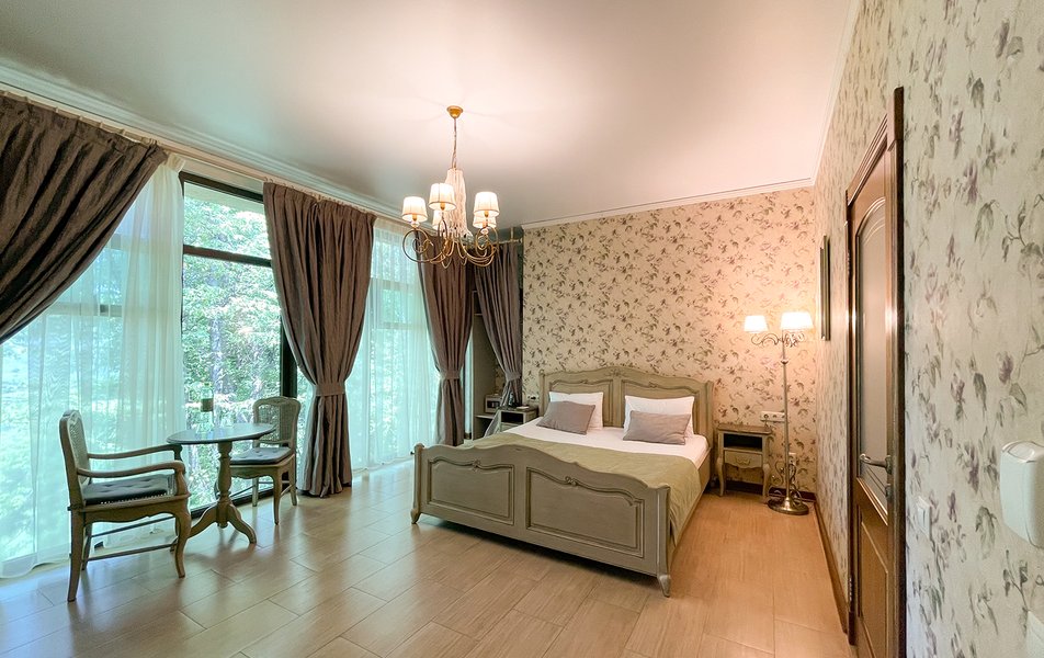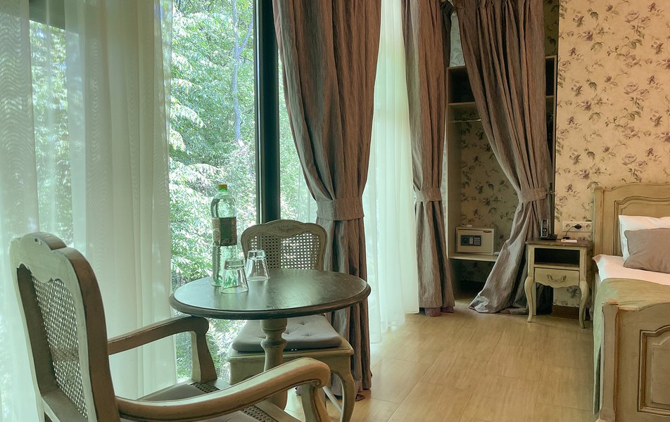 Отель идеально подойдет для тех, кто желает отдохнуть от городских шума и суеты, эдакий мини-санаторий. Расположен у горы Ахун, между Сочи и Хостой (до жд вокзала Сочи 15 мин на такси, 350 руб). Место очень зеленое, деревенское, поблизости нет крупных строений и дорог, за исключением узкого серпантина, ведущего на вершину. Отель очень интересно вписан в ландшафт: снаружи кажется маленьким, изнутри же понимаешь, что это целый комплекс построек. Номерной фонд разнообразный. У меня был одноместный номер на террасе у бассейна - очень удобно! Номер небольшой, но имеется все необходимое. Убирали ежедневно. Быстрый и уверенный wifi. Отель предлагает оздоровительные программы для мужчин и женщин, которые включают в себя проживание, 5-разовое диетическое питание и базовый комплекс процедур (например, кедровая бочка, пилинг, водорослевое обертывание, спа-уход за лицом, массаж, терренкур, йога и т.д.). В столовой сервируют как программное питание, так и можно сделать индивидуальный заказ по меню. Готовят вкусно. Минеральная вода Лазаревская в неограниченном количестве. Бюджета в 18-20 тыс в неделю вполне достаточно, чтобы прекрасно отдохнуть. Плюс большой выбор процедур за доп плату. Подробно обо всем можно узнать на сайте отеля или сделав запрос. Хочу отметить очень внимательное отношение к клиентам, чувствуешь себя долгожданным гостем. Я останавливалась здесь во время командировки и персонал сделал все, чтобы мое пребывание было максимально комфортным и при этом я уложилась в бюджет. (Яна, большое спасибо!) Специалисты, с кем мне довелось столкнуться - массажист, косметолог, гастроэнтеролог - работали на самом высоком уровне. Планирую вернуться сюда на программу лечебного голодания - лучше места не найти. Однозначно рекомендую Мишлен для оздоровительного отдыха как в одиночку, так и парам, компаниям. Обязательно возьмите с собой шлепки для перемещений по территории отеля, удобную спортивную одежду и обувь для терренкуров и занятий в зале, купальник, даже если едете зимой (джакузи на террасе никто не отменял).