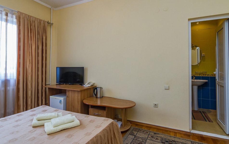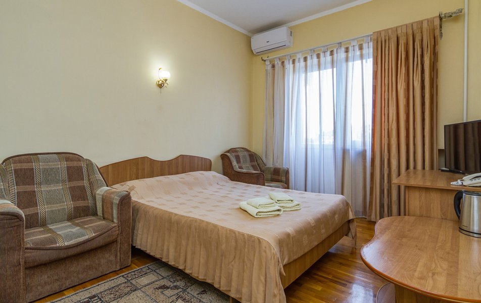 Отдыхали с дочерью на майских праздниках, это был не сезон, поэтому например, расположение к морю не очень интересовало. Очень отзывчивый и доброжелательный персонал, вкусные завтраки. Номер большой, но с "уставшей" старой мебелью, матрас уже со слегка выпирающими пружинами, есть кондиционер, балкон, холодильник. Каждый день убирались и меняли нам полотенца. Сам отель на окраине Сочи, недалеко остановка, на маршрутке минут 15-20 до центра.До моря пешком далеко, особенно обратно возвращаться в гору, но читала,что в сезон у них трансфер, в отеле есть бассейн. С балкона был красивый вид на море и горы.