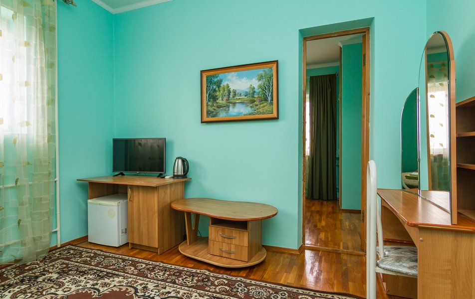 Чистый ухоженный номер,убираются каждый день,так же каждый день меняются полотенца и постель.Ездили с маленьким ребёнком,по приезду попросили кроватку,сразу же принесли и собрали.Завтраки вкусные.Персонал отзывчивый,приятный,все возникшие вопросы решают мгновенно!!!Басейн чистый,большой,вода тёплая,что позволяет купаться с ребёнком!Есть большой мангал на территории.Нам очень всё понравилось!С удовольствием приедим ещё!