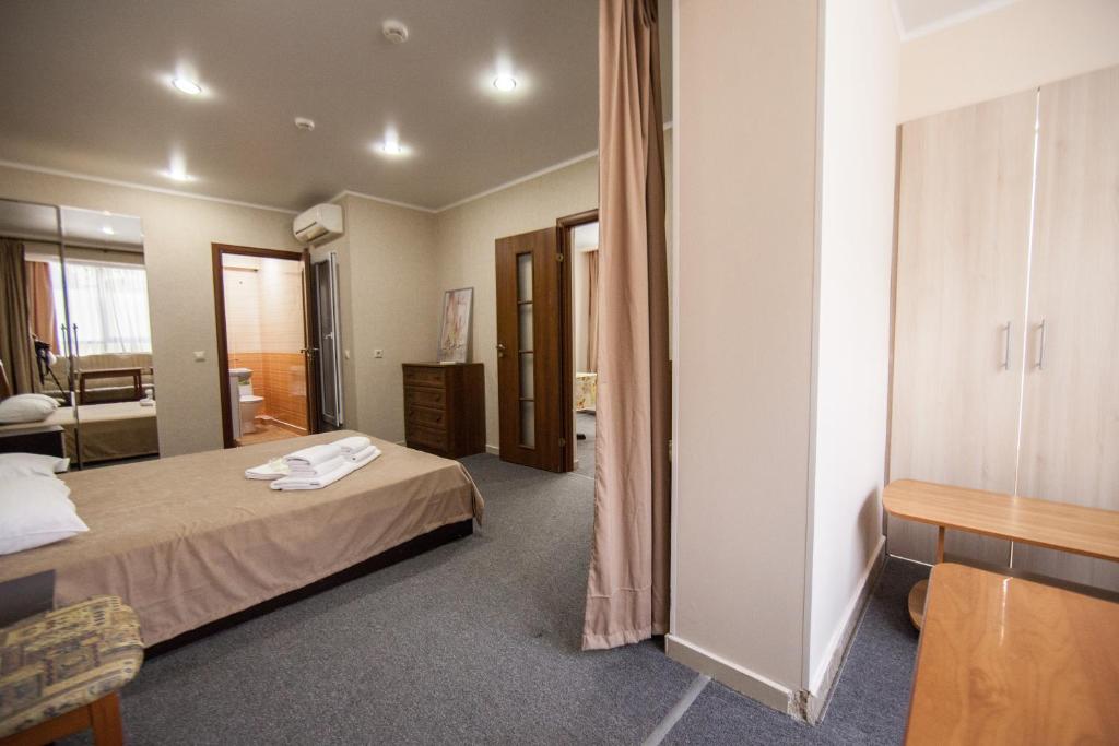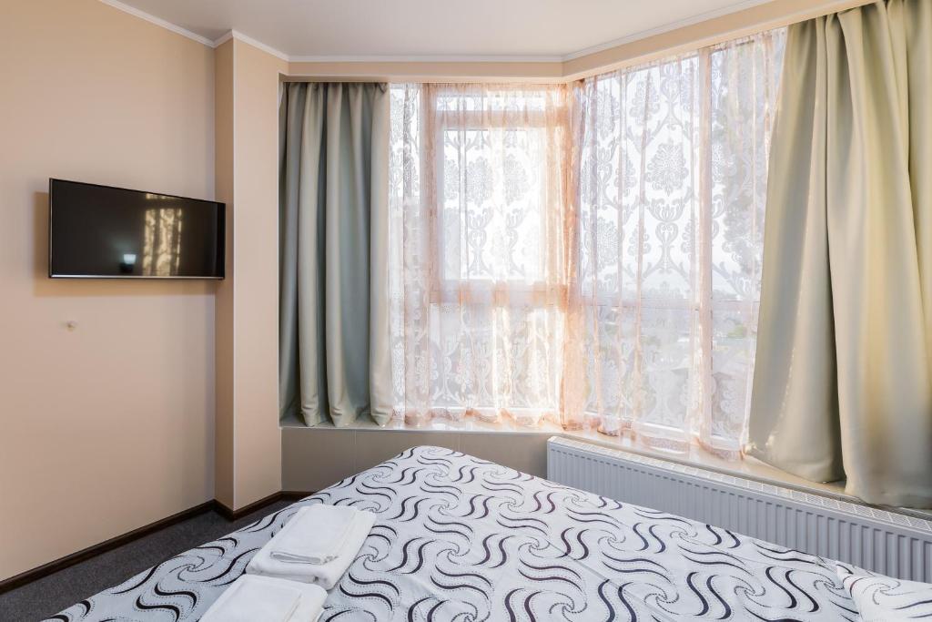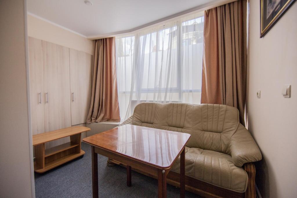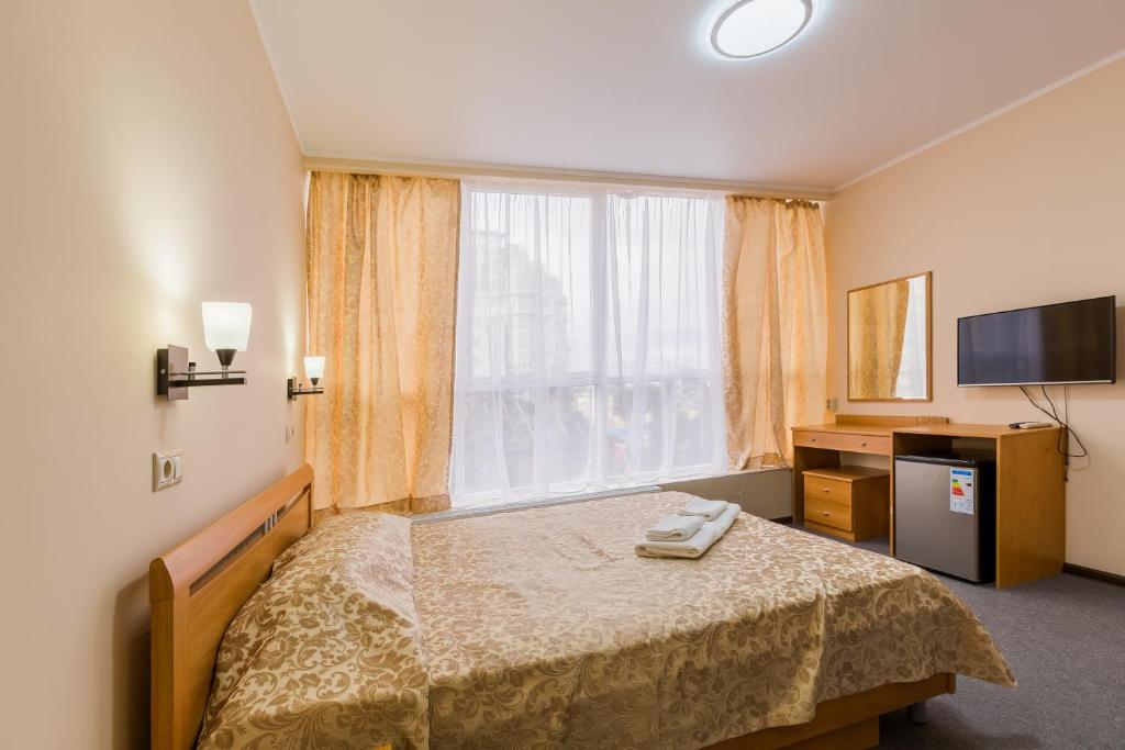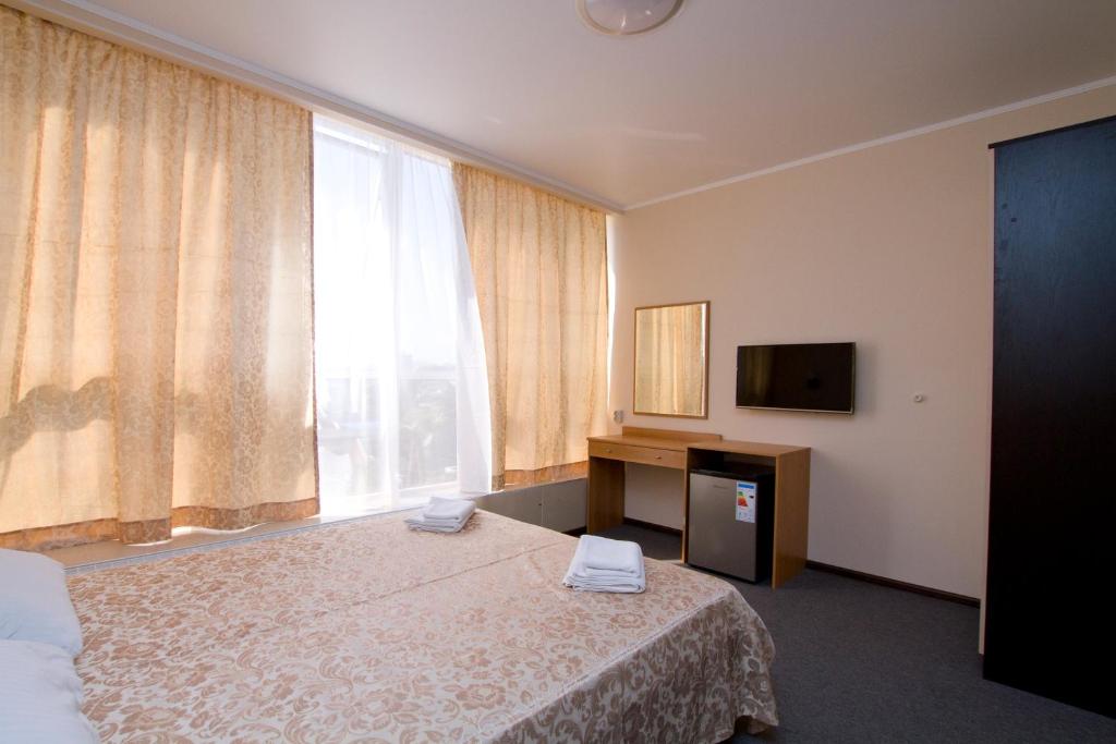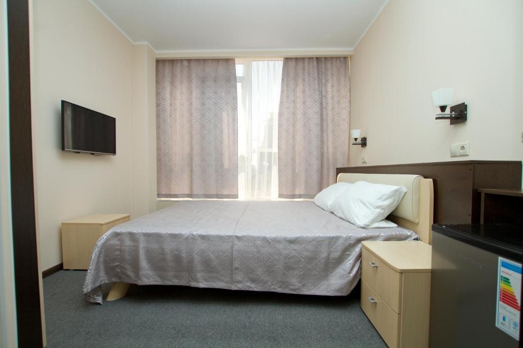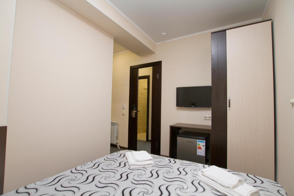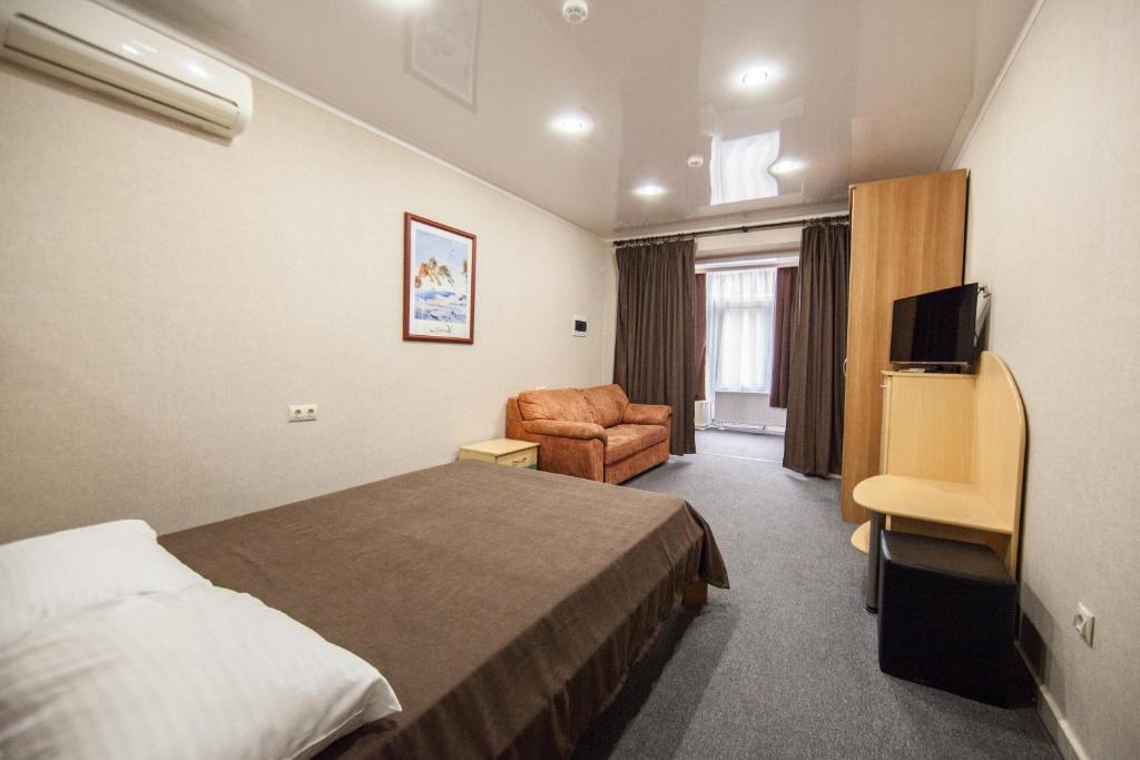 Отель на первом этаже жилого дома. Часть номеров без окон, но с большими и удобными кроватями и санузлами, жил в таком когда ездил один. В этом году взяли большой двухкомнатный номер с кухней и стиралкой. В номере очень чисто, кровати удобные, все на уровне неплохой трехзвездочной гостиницы, но без питания, что компенсируется кухней. Вид из окна очень неплохой, с одной стороны море, с другой горы. Для центра Сочи могу с полной увереность рекомендовать из-за классного расположения и цены, но для пляжного отдыха возможно бы выбрал что-то другое, т. к. отель метрах в 500 от моря и эти 500 метров с хорошим уклоном вверх. В целом буду рекомендовать знакомым.