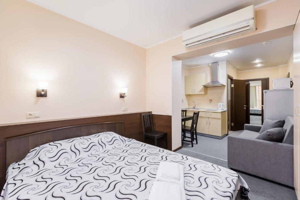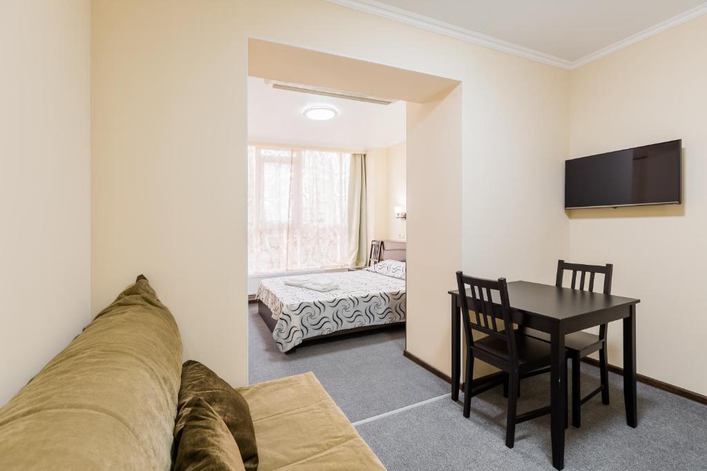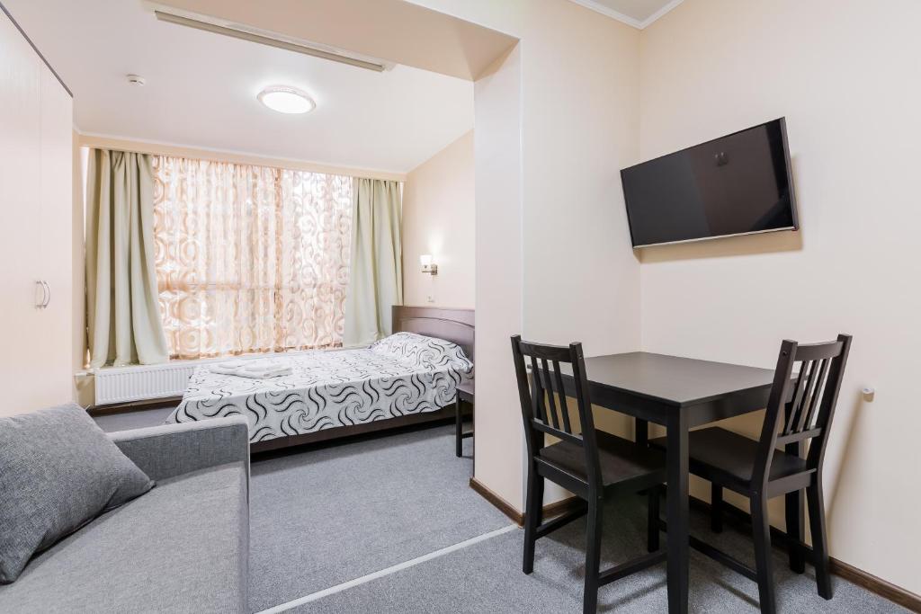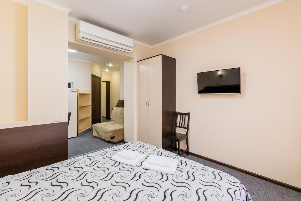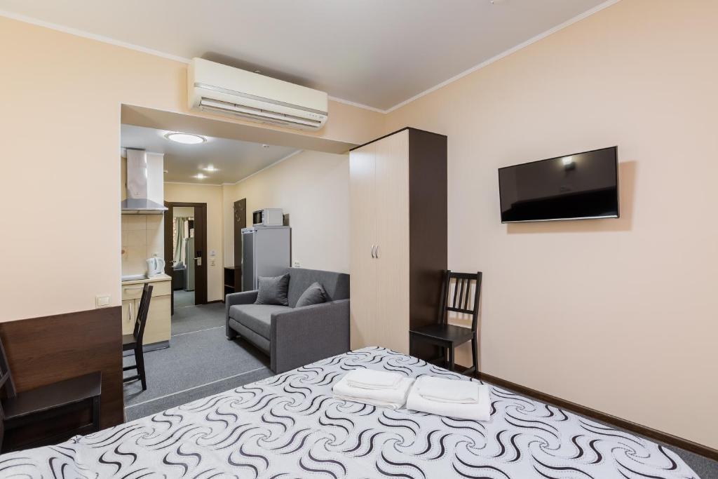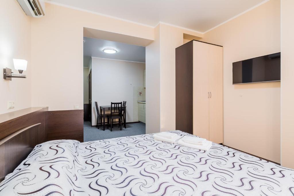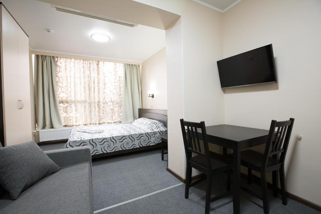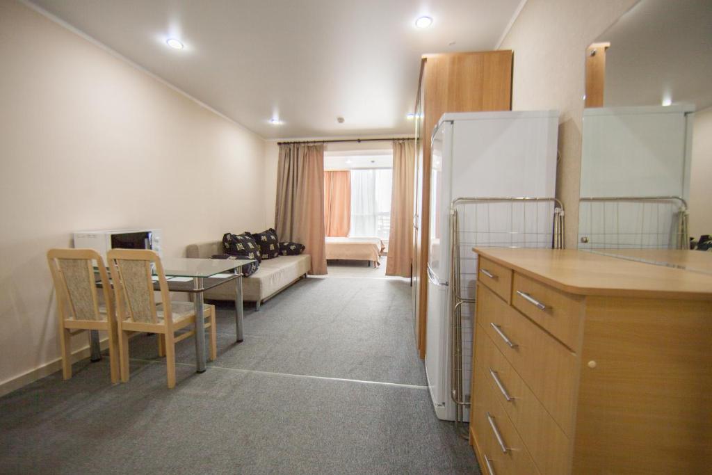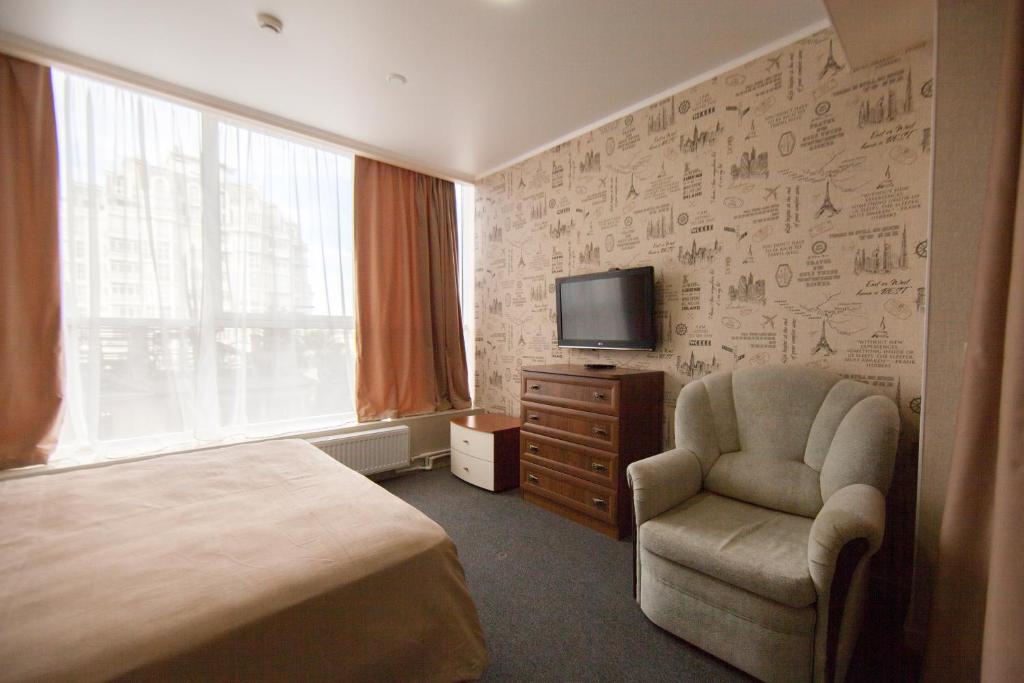 Отель на первом этаже жилого дома. Часть номеров без окон, но с большими и удобными кроватями и санузлами, жил в таком когда ездил один. В этом году взяли большой двухкомнатный номер с кухней и стиралкой. В номере очень чисто, кровати удобные, все на уровне неплохой трехзвездочной гостиницы, но без питания, что компенсируется кухней. Вид из окна очень неплохой, с одной стороны море, с другой горы. Для центра Сочи могу с полной увереность рекомендовать из-за классного расположения и цены, но для пляжного отдыха возможно бы выбрал что-то другое, т. к. отель метрах в 500 от моря и эти 500 метров с хорошим уклоном вверх. В целом буду рекомендовать знакомым.