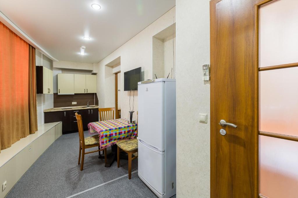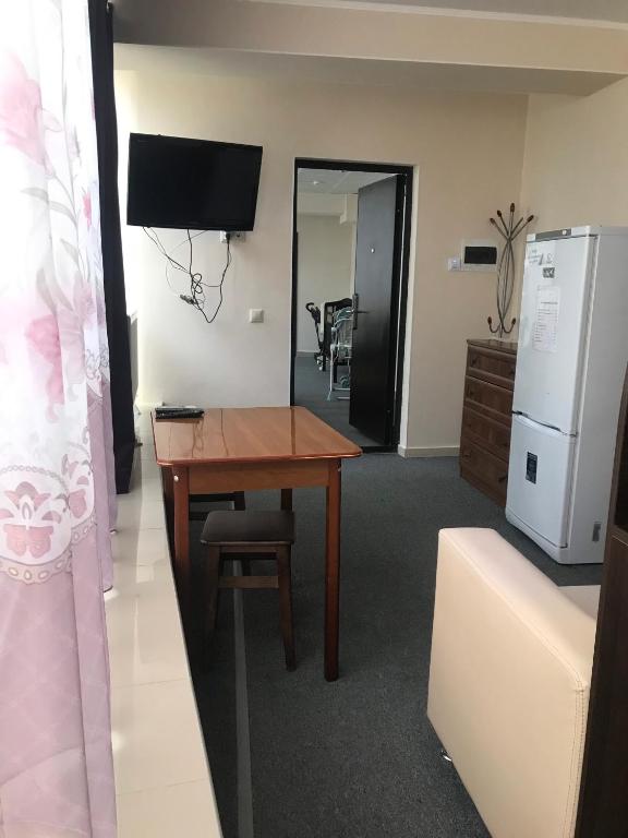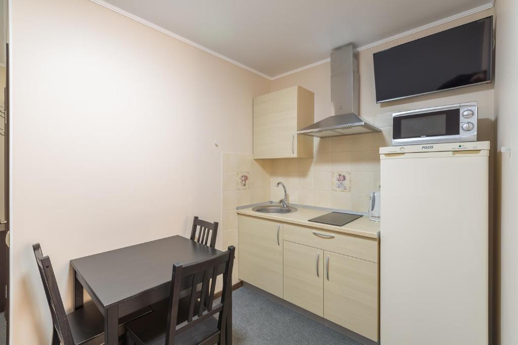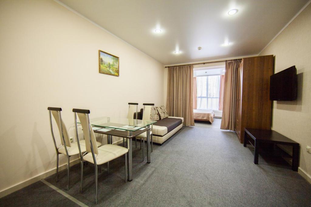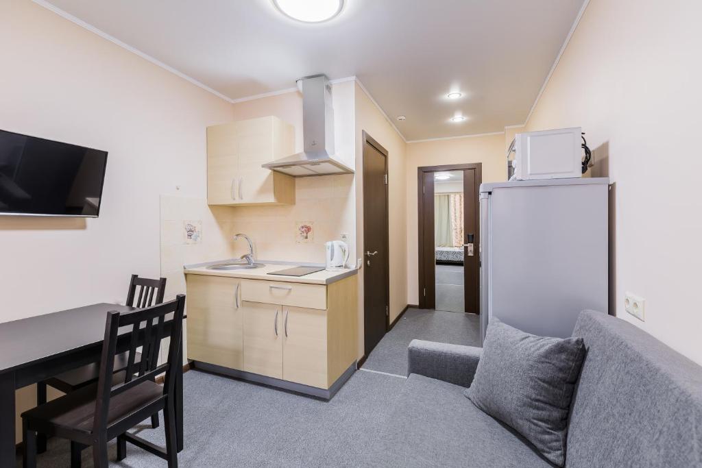 Выбрали эти апартаменты, в связи с удобством расположения (Центр, 2 игровые площадки, сосновый парк), отзывы в основном хорошие, не обратили внимание на отзыв , где отмечалось, что посуда и стиральная машина грязные. Нам повезло, стиральная машина оказалась новой, но вот посуда, неприятно было даже открывать ящики , где она лежит, запах старой засаленной кухни... чашки с коричневыми ободками, разделочная доска убитая настолько, что не описать, губка для посуды, которая предположительно должна быть новой , была в шерсти животных, видимо предыдущие жильцы отдыхали со своим питомцем. В итоге отмыла минимум необходимой посуды и только ей пользовалась( соду по моей просьбе предоставили ) Ещё смутил ковролин, в коридорах о нем заботились, в дождь застилали, чтобы не пачкался, а вот в номерах он тоже не первой свежести, что подтверждает запах сразу при входе в номер. Диван в 1 номере был кожаный, по нашей просьбе его быстро почистили, а вот во 2 тканевой, грязный , не знаю чистили ли его вообще когда-то. Стены тоже все в грязных следах. При этом зоны общего пользования очень чистые, и комната со стиральными машинами и гладильной доской, и Кухня. Непонятно, почему нельзя также чисто отмывать апартаменты. Отдельно хочется отметить работу персонала, чувствуешь себя , как на даче у родственников, все готовы помочь, очень радушные и доброжелательные. Думаю, если будет чистота, это будет просто супер апарт - отель.