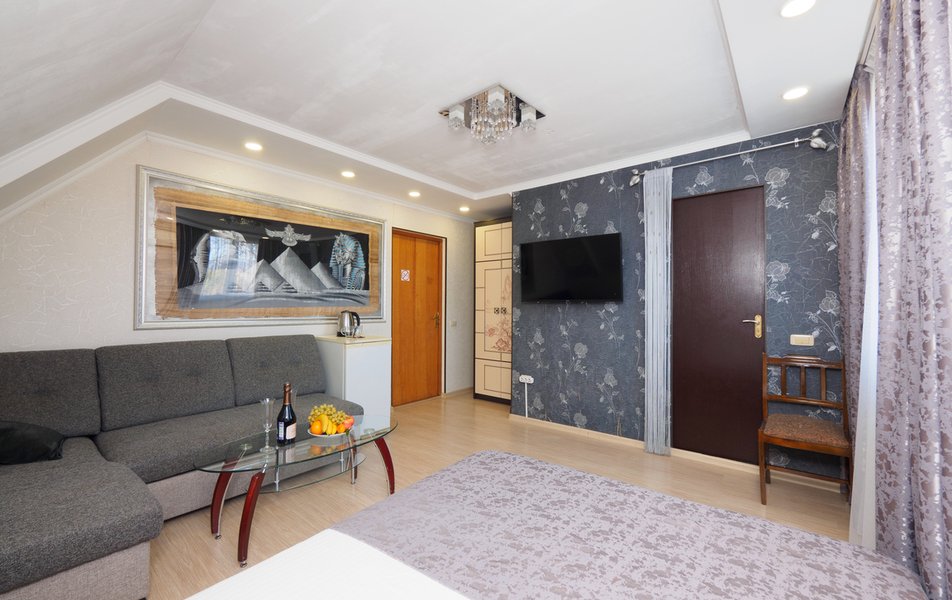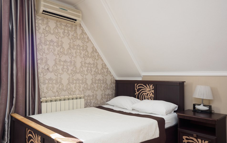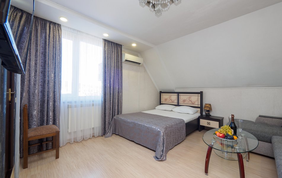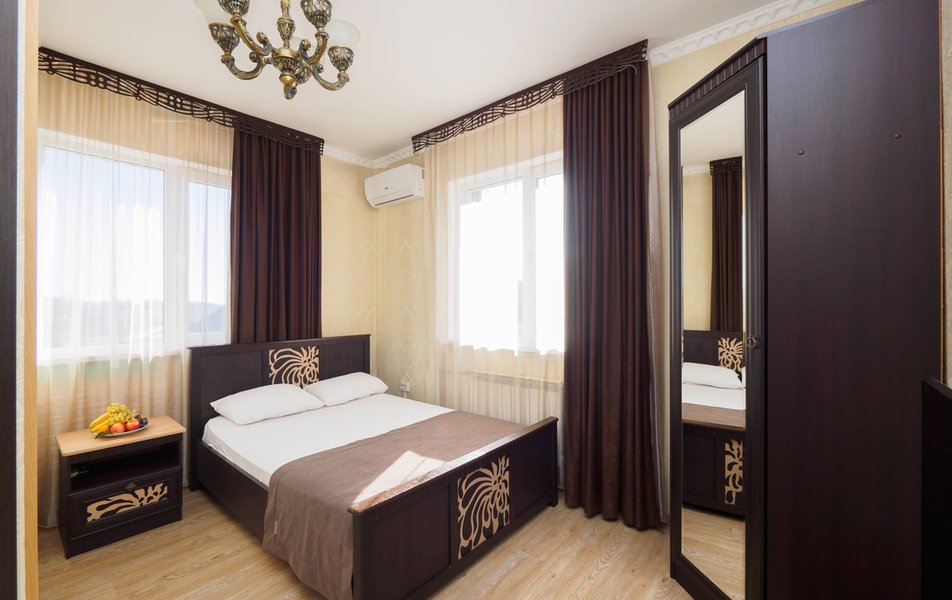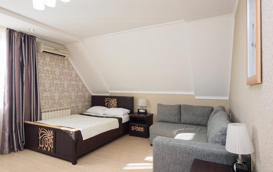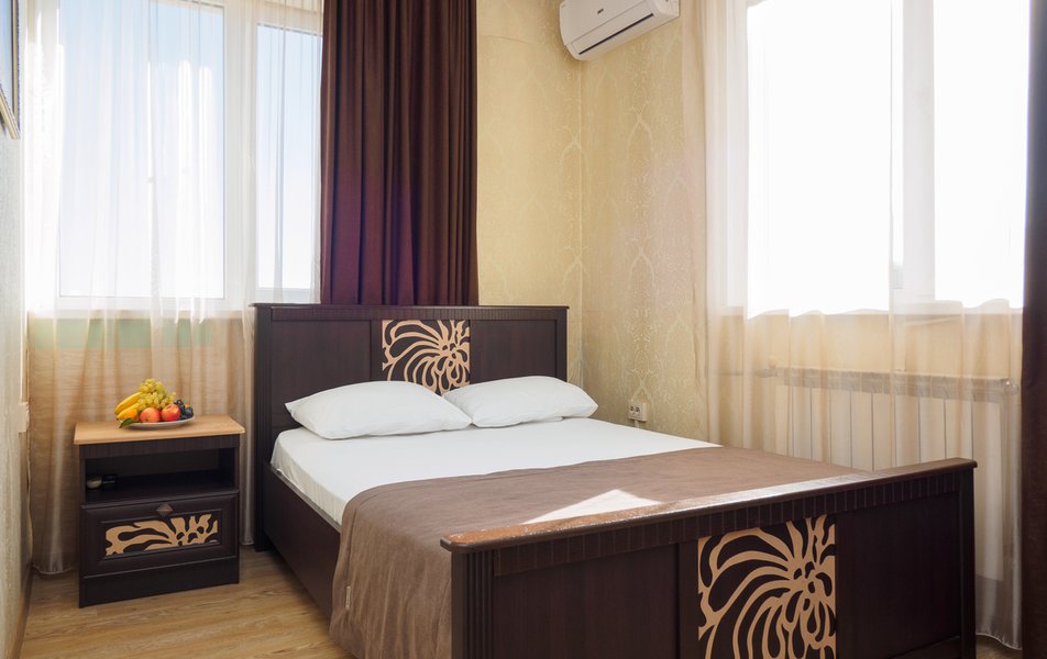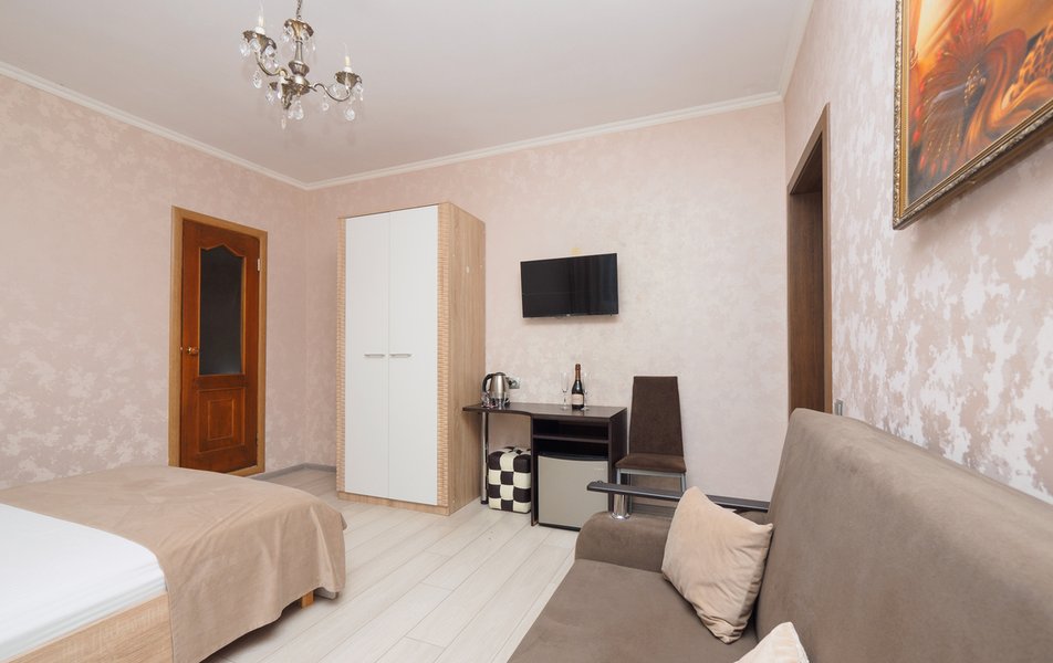 Стандартный 2-местный (без балкона + доп. место) Количество комнат: 1-комнатный Тип номера: Стандартный Дополнительное место: диван Кол-во доп. мест: 1 Кол-во номеров: 2 Кол-во основных мест: 2 Площадь (кв. м): 19 Мебель: диван, зеркало, кровать двуспальная, прикроватные тумбочки, стул, шкаф Оборудование: кондиционер, телевизор ЖК, холодильник, чайный набор посуды, электрочайник Санузел: с душем, туалетные принадлежности, фен Сервис: Wi-Fi бесплатно, смена полотенец, смена постельного белья, уборка номера