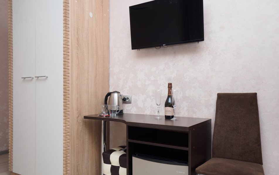 Стандартный 2-местный (без балкона) Количество комнат: 1-комнатный Тип номера: Стандартный Кол-во номеров: 5 Кол-во основных мест: 2 Площадь (кв. м): 18 Мебель: зеркало, кровать двуспальная, прикроватные тумбочки, стул, шкаф Оборудование: кондиционер, телевизор ЖК, холодильник, чайный набор посуды, электрочайник Санузел: с душем, туалетные принадлежности, фен Сервис: Wi-Fi бесплатно, смена полотенец, смена постельного белья, уборка номера