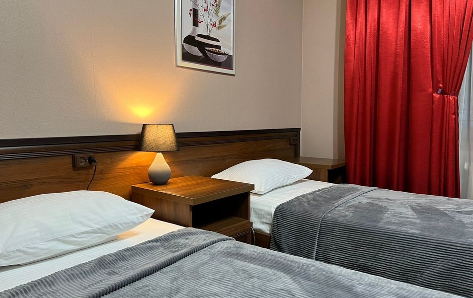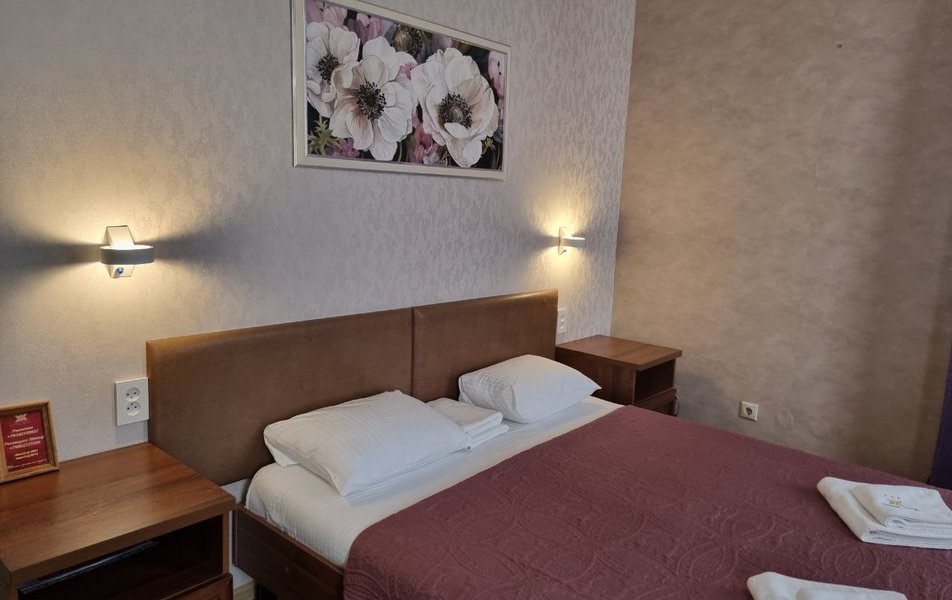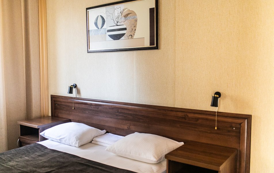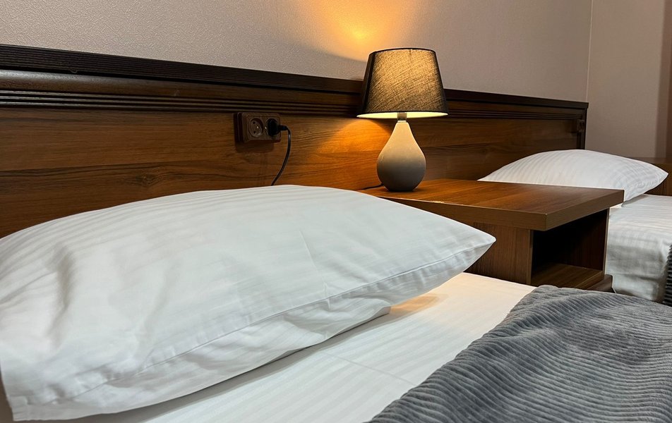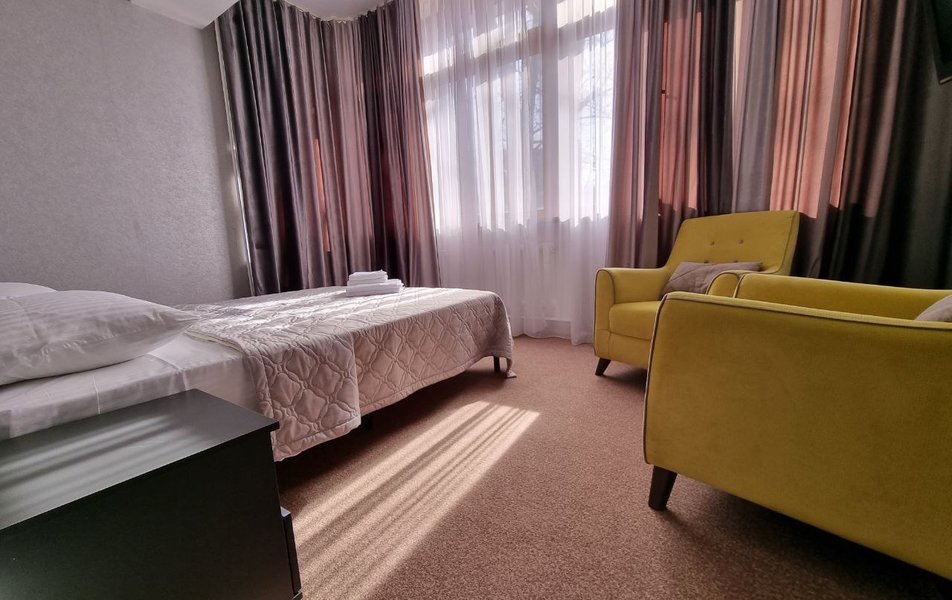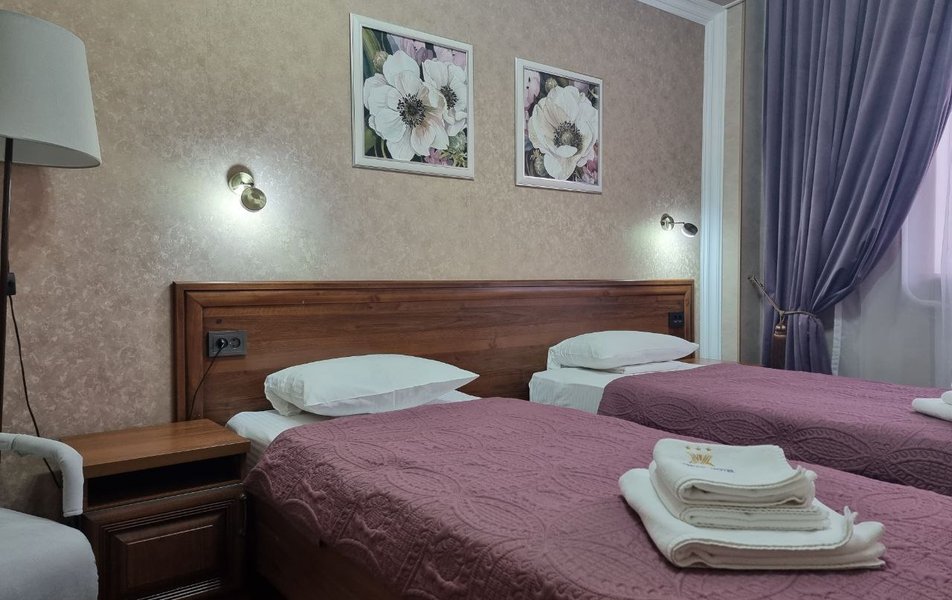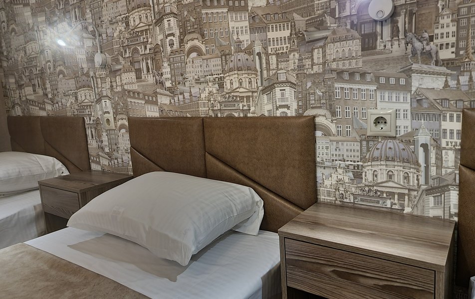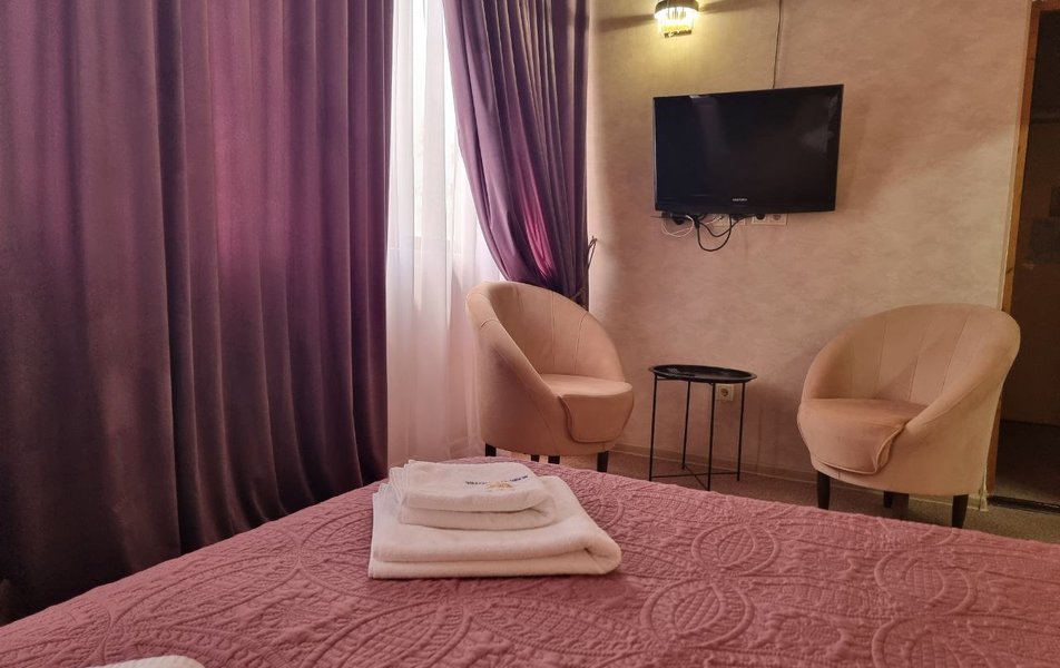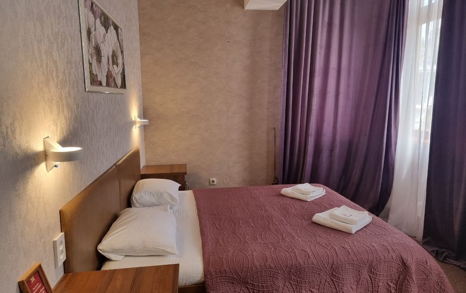 Жили в отеле в конце апреля 2024 года четыре ночи. Отель три звезды, в целом неплохо. Персонал приветливый, грубости не слышали. Но есть нюансы. 1. Сложный вход. Чтобы попасть в отель нужно пройти три пролета по лестнице на улице, далее еще два пролета по лестнице внутри, и только потом будет лифт. Это тяжело, особенно с чемоданом при заезде/выезде (носильщиков нет), да и после активного дня уже шли на последнем дыхании по этим лестницам. 2. Плохие завтраки. Проходят в ресторане "Штоф" (находится в этом же здании). Уже само название, честно сказать, оттолкнуло. Но не в этом дело. Шведского стола нет. Завтрак состоит из четырех компонентов. 1. На выбор каша или еще что-то одно (был омлет, глазунья, бутерброды). Каша слишком сладкая, ее здоровому человеку есть вредно, а тем, кто вынужден ограничивать себя в сахаре - строго нет. Приторная, зачем так сластить, не понятно. 2. Один кусок белого подсушенного хлеба (тост) с маслом - всегда, каждый день, без выбора. 3. Десерт без выбора. В разные дни были сырники, запеканка, шарлотка и круассан. Шарлотка ужасна... Кусок сухого теста, чуть политый вареньем. Сырники и запеканка сразу обильно политые сгущенкой и посыпанные сахарной пудрой (приносят и не спрашивают, полить или не полить, может я не хочу сгущенку?). Круассан самый обычный, вы такой купите в магазине. 4. Чай или кофе. Только одна чашка. Чай в пакетиках, кофе мы не заказывали. Никаких овощей, фруктов, нарезки - вообще больше ничего. 3. В нашем номере была плохая кровать. Сильно скрипела, матрас мягкий (это недостаток) и короткий. Может, не везде так, не знаю. 4. На окнах нет гребенок. Открытая створка тоже скрипела, пришлось блокировать подручными средствами. В остальном все нормально. Чайник есть в номере, кулер около администратора, гладильная комната и микроволновка в общей комнате на втором этаже. Шампунь, гель для душа и мыло - в пакетиках. Дозатора на стене в душе нет. Мебель и ремонт старые, но вполне приличные. У нас был номер повышенной комфортности, были тапочки, халаты, посуда, столовые приборы. Вернемся ли мы в этот отель? Скорее нет, разочаровали завтраки. Для командировки, думаю, подойдет.