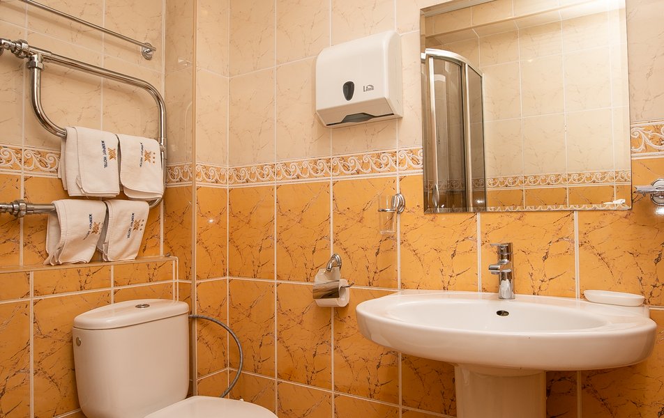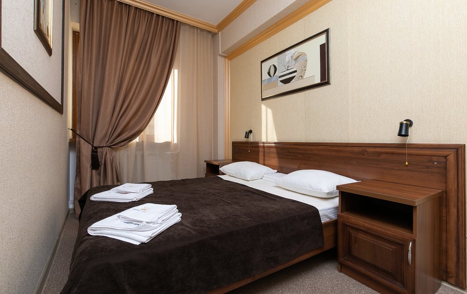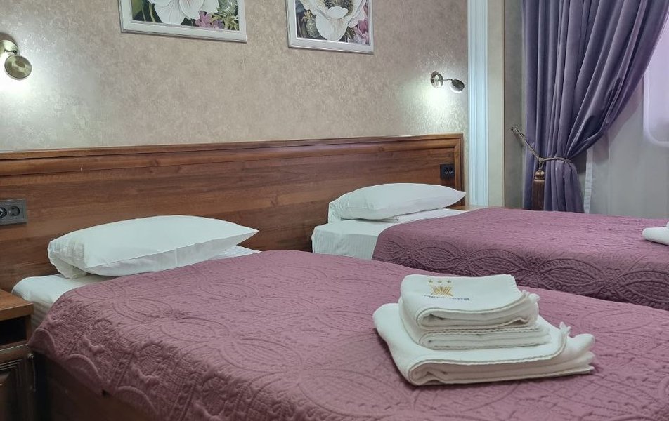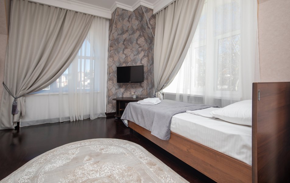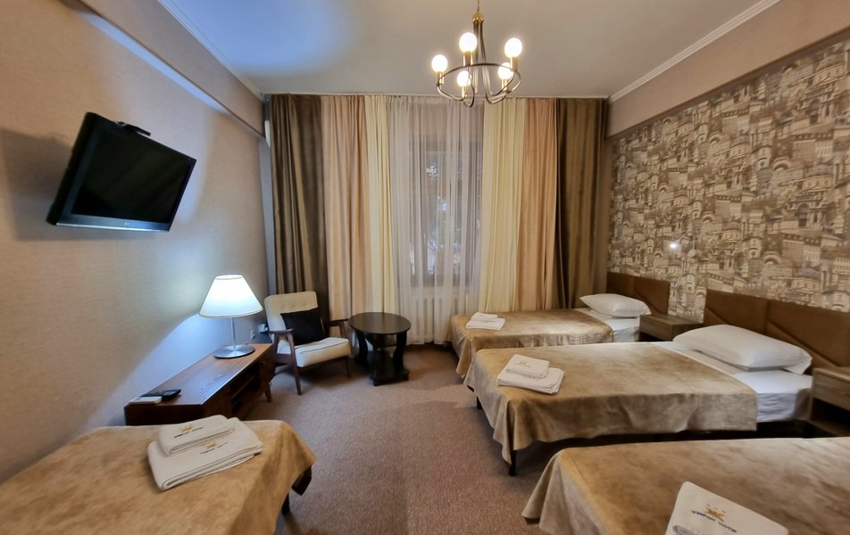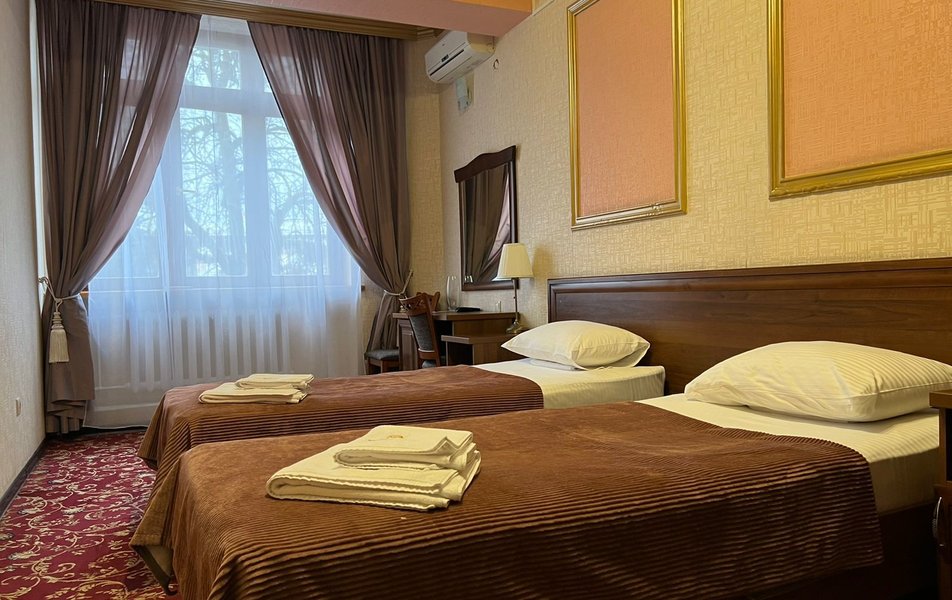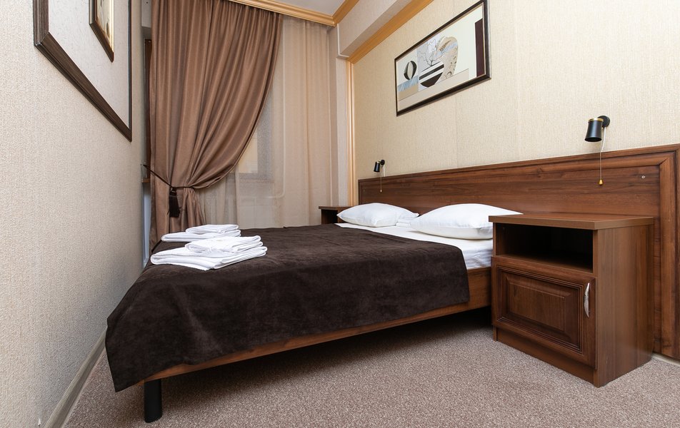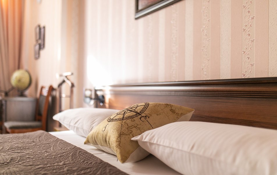 Жили в отеле в конце апреля 2024 года четыре ночи. Отель три звезды, в целом неплохо. Персонал приветливый, грубости не слышали. Но есть нюансы. 1. Сложный вход. Чтобы попасть в отель нужно пройти три пролета по лестнице на улице, далее еще два пролета по лестнице внутри, и только потом будет лифт. Это тяжело, особенно с чемоданом при заезде/выезде (носильщиков нет), да и после активного дня уже шли на последнем дыхании по этим лестницам. 2. Плохие завтраки. Проходят в ресторане "Штоф" (находится в этом же здании). Уже само название, честно сказать, оттолкнуло. Но не в этом дело. Шведского стола нет. Завтрак состоит из четырех компонентов. 1. На выбор каша или еще что-то одно (был омлет, глазунья, бутерброды). Каша слишком сладкая, ее здоровому человеку есть вредно, а тем, кто вынужден ограничивать себя в сахаре - строго нет. Приторная, зачем так сластить, не понятно. 2. Один кусок белого подсушенного хлеба (тост) с маслом - всегда, каждый день, без выбора. 3. Десерт без выбора. В разные дни были сырники, запеканка, шарлотка и круассан. Шарлотка ужасна... Кусок сухого теста, чуть политый вареньем. Сырники и запеканка сразу обильно политые сгущенкой и посыпанные сахарной пудрой (приносят и не спрашивают, полить или не полить, может я не хочу сгущенку?). Круассан самый обычный, вы такой купите в магазине. 4. Чай или кофе. Только одна чашка. Чай в пакетиках, кофе мы не заказывали. Никаких овощей, фруктов, нарезки - вообще больше ничего. 3. В нашем номере была плохая кровать. Сильно скрипела, матрас мягкий (это недостаток) и короткий. Может, не везде так, не знаю. 4. На окнах нет гребенок. Открытая створка тоже скрипела, пришлось блокировать подручными средствами. В остальном все нормально. Чайник есть в номере, кулер около администратора, гладильная комната и микроволновка в общей комнате на втором этаже. Шампунь, гель для душа и мыло - в пакетиках. Дозатора на стене в душе нет. Мебель и ремонт старые, но вполне приличные. У нас был номер повышенной комфортности, были тапочки, халаты, посуда, столовые приборы. Вернемся ли мы в этот отель? Скорее нет, разочаровали завтраки. Для командировки, думаю, подойдет.