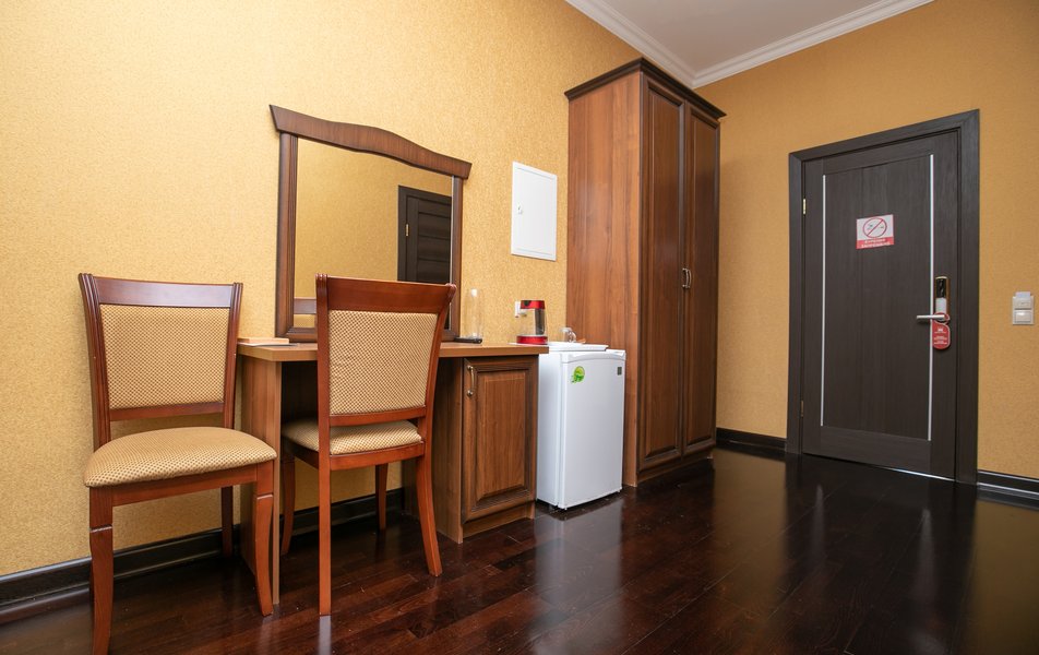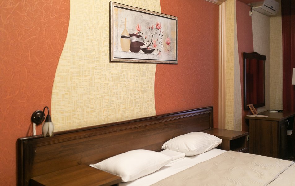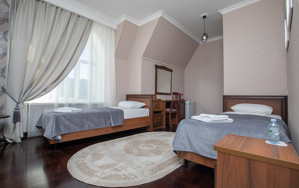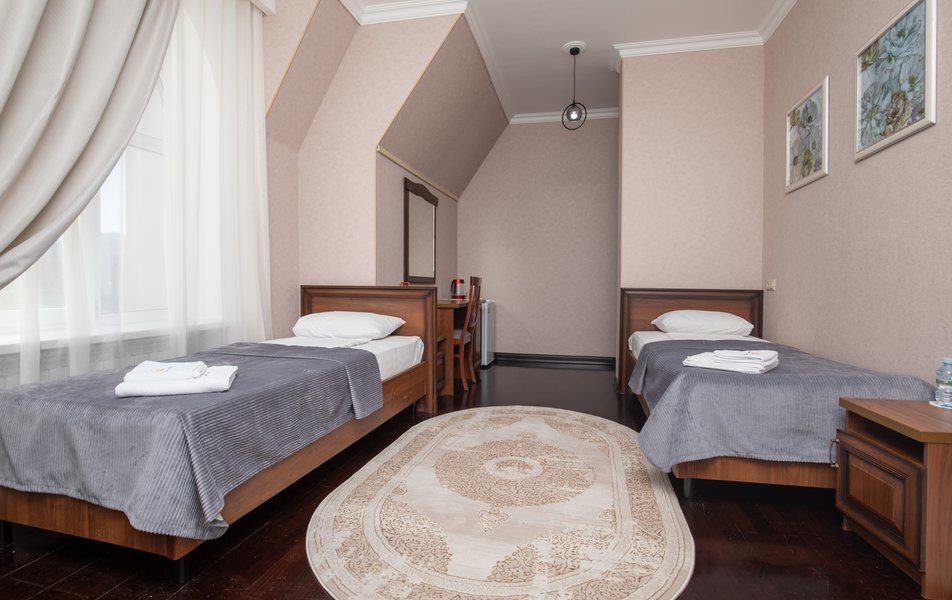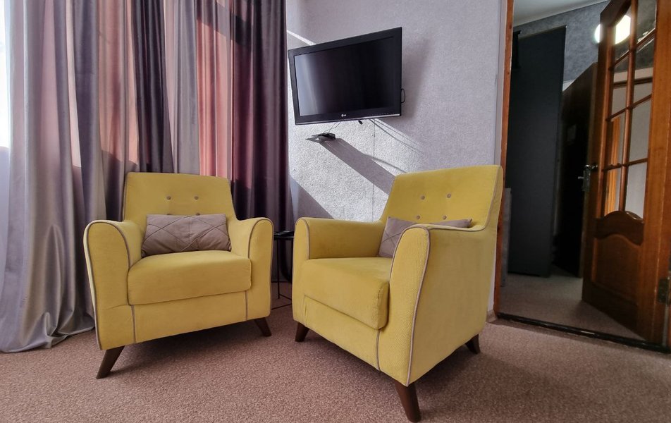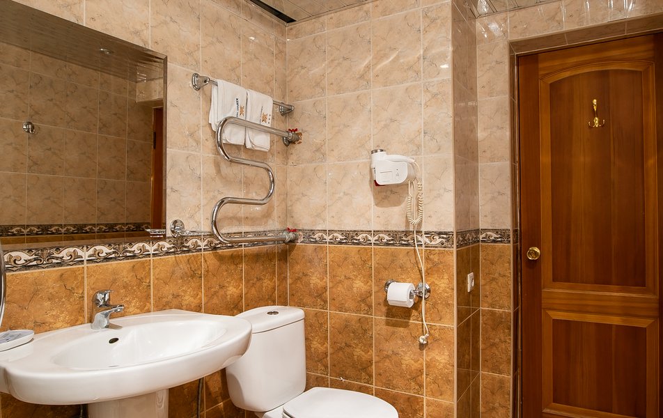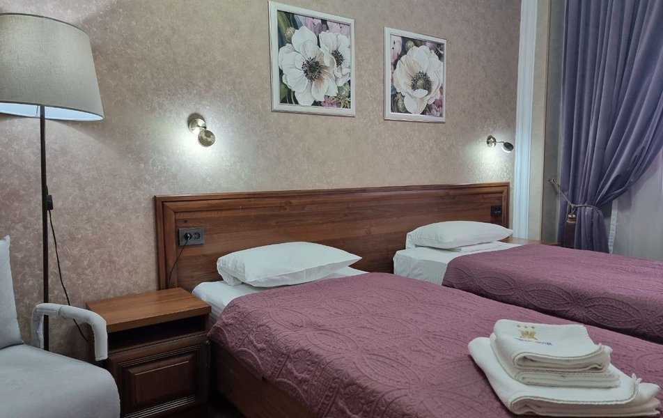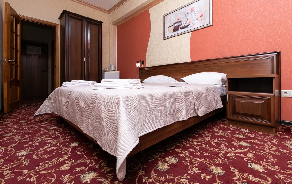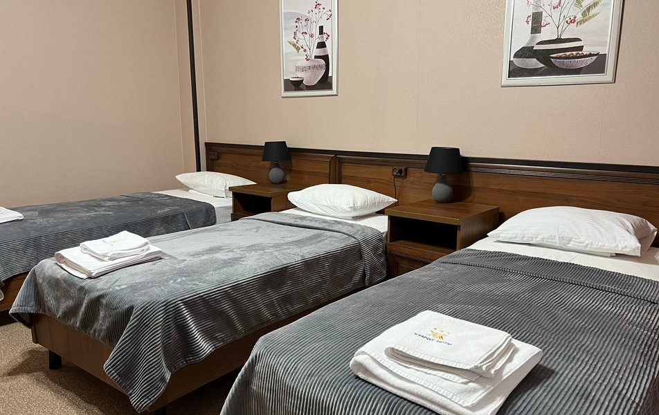 Жили в отеле в конце апреля 2024 года четыре ночи. Отель три звезды, в целом неплохо. Персонал приветливый, грубости не слышали. Но есть нюансы. 1. Сложный вход. Чтобы попасть в отель нужно пройти три пролета по лестнице на улице, далее еще два пролета по лестнице внутри, и только потом будет лифт. Это тяжело, особенно с чемоданом при заезде/выезде (носильщиков нет), да и после активного дня уже шли на последнем дыхании по этим лестницам. 2. Плохие завтраки. Проходят в ресторане "Штоф" (находится в этом же здании). Уже само название, честно сказать, оттолкнуло. Но не в этом дело. Шведского стола нет. Завтрак состоит из четырех компонентов. 1. На выбор каша или еще что-то одно (был омлет, глазунья, бутерброды). Каша слишком сладкая, ее здоровому человеку есть вредно, а тем, кто вынужден ограничивать себя в сахаре - строго нет. Приторная, зачем так сластить, не понятно. 2. Один кусок белого подсушенного хлеба (тост) с маслом - всегда, каждый день, без выбора. 3. Десерт без выбора. В разные дни были сырники, запеканка, шарлотка и круассан. Шарлотка ужасна... Кусок сухого теста, чуть политый вареньем. Сырники и запеканка сразу обильно политые сгущенкой и посыпанные сахарной пудрой (приносят и не спрашивают, полить или не полить, может я не хочу сгущенку?). Круассан самый обычный, вы такой купите в магазине. 4. Чай или кофе. Только одна чашка. Чай в пакетиках, кофе мы не заказывали. Никаких овощей, фруктов, нарезки - вообще больше ничего. 3. В нашем номере была плохая кровать. Сильно скрипела, матрас мягкий (это недостаток) и короткий. Может, не везде так, не знаю. 4. На окнах нет гребенок. Открытая створка тоже скрипела, пришлось блокировать подручными средствами. В остальном все нормально. Чайник есть в номере, кулер около администратора, гладильная комната и микроволновка в общей комнате на втором этаже. Шампунь, гель для душа и мыло - в пакетиках. Дозатора на стене в душе нет. Мебель и ремонт старые, но вполне приличные. У нас был номер повышенной комфортности, были тапочки, халаты, посуда, столовые приборы. Вернемся ли мы в этот отель? Скорее нет, разочаровали завтраки. Для командировки, думаю, подойдет.