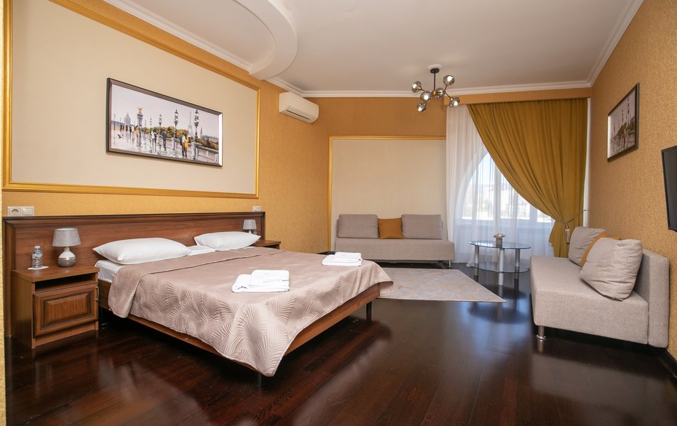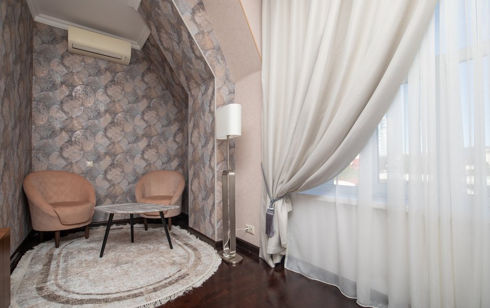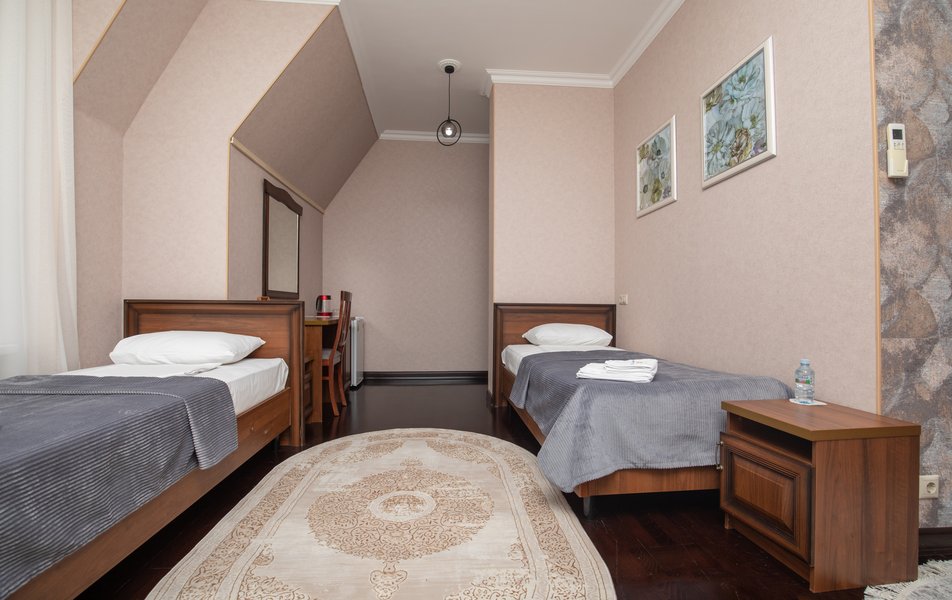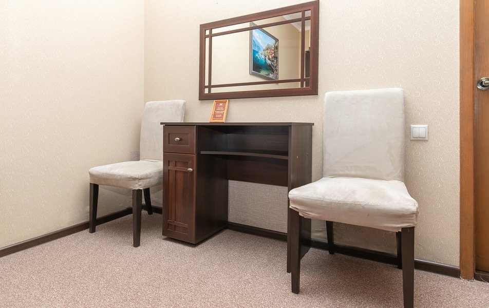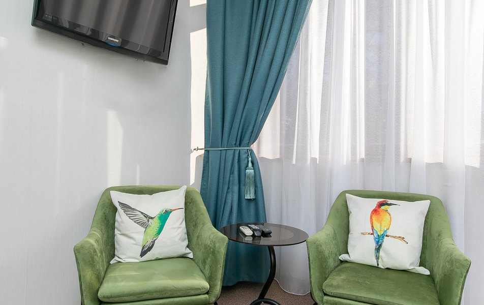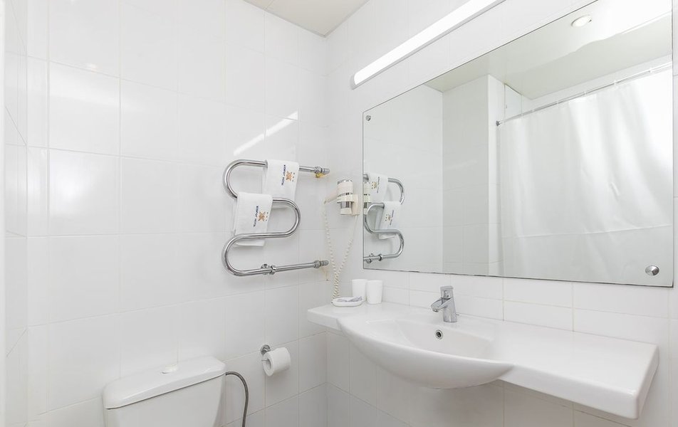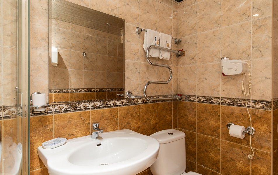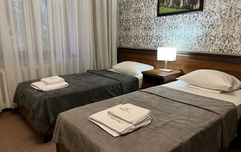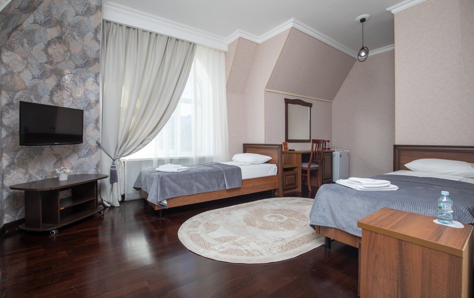 Жили в отеле в конце апреля 2024 года четыре ночи. Отель три звезды, в целом неплохо. Персонал приветливый, грубости не слышали. Но есть нюансы. 1. Сложный вход. Чтобы попасть в отель нужно пройти три пролета по лестнице на улице, далее еще два пролета по лестнице внутри, и только потом будет лифт. Это тяжело, особенно с чемоданом при заезде/выезде (носильщиков нет), да и после активного дня уже шли на последнем дыхании по этим лестницам. 2. Плохие завтраки. Проходят в ресторане "Штоф" (находится в этом же здании). Уже само название, честно сказать, оттолкнуло. Но не в этом дело. Шведского стола нет. Завтрак состоит из четырех компонентов. 1. На выбор каша или еще что-то одно (был омлет, глазунья, бутерброды). Каша слишком сладкая, ее здоровому человеку есть вредно, а тем, кто вынужден ограничивать себя в сахаре - строго нет. Приторная, зачем так сластить, не понятно. 2. Один кусок белого подсушенного хлеба (тост) с маслом - всегда, каждый день, без выбора. 3. Десерт без выбора. В разные дни были сырники, запеканка, шарлотка и круассан. Шарлотка ужасна... Кусок сухого теста, чуть политый вареньем. Сырники и запеканка сразу обильно политые сгущенкой и посыпанные сахарной пудрой (приносят и не спрашивают, полить или не полить, может я не хочу сгущенку?). Круассан самый обычный, вы такой купите в магазине. 4. Чай или кофе. Только одна чашка. Чай в пакетиках, кофе мы не заказывали. Никаких овощей, фруктов, нарезки - вообще больше ничего. 3. В нашем номере была плохая кровать. Сильно скрипела, матрас мягкий (это недостаток) и короткий. Может, не везде так, не знаю. 4. На окнах нет гребенок. Открытая створка тоже скрипела, пришлось блокировать подручными средствами. В остальном все нормально. Чайник есть в номере, кулер около администратора, гладильная комната и микроволновка в общей комнате на втором этаже. Шампунь, гель для душа и мыло - в пакетиках. Дозатора на стене в душе нет. Мебель и ремонт старые, но вполне приличные. У нас был номер повышенной комфортности, были тапочки, халаты, посуда, столовые приборы. Вернемся ли мы в этот отель? Скорее нет, разочаровали завтраки. Для командировки, думаю, подойдет.