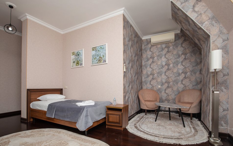 Не стоит таких денег. Номера старые. Сначала заселили в номер, в котором не работал кондиционер, проблема с душем, нет туалетной бумаги. После того, как я обратилась с жалобами, переселили в другой номер. Цена 3000 руб в сутки подойдет, но не больше. Один плюс, это хорошая локация.