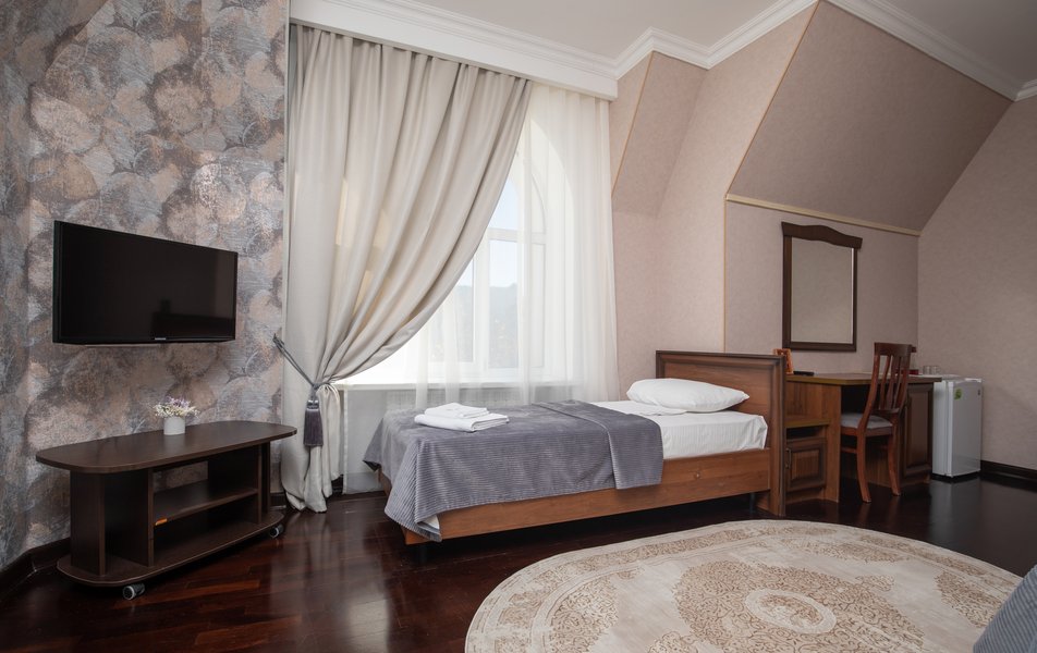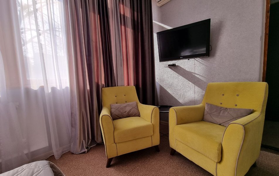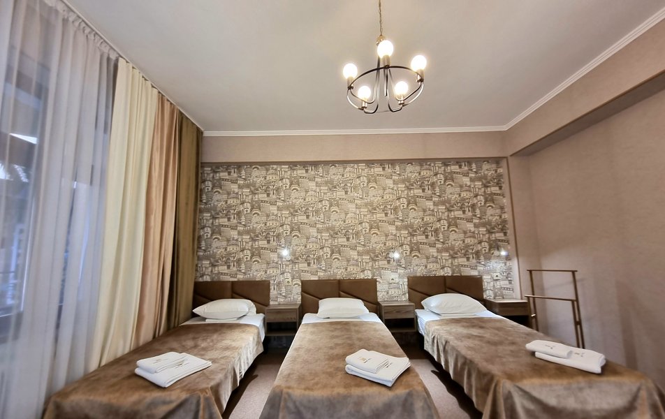 Лестниц очень много, чтоб до ресепшна добрать нужно 50 и более ступенек преодолеть и чтоб добраться до номера до лифта тоже 3 пролёта подняться. Очень неудобно если планируете приехать детьми колясками. ну и номера не 3 звёзды а 2, все старое требует ремонта, в некоторых номерах разводы на потолке на стенах, прихожеи все маленькие обувь некуда ставить и двери входная и туалета открывается во внутрь так что вообще не остаётся места в прихожей. Я не рекомендую