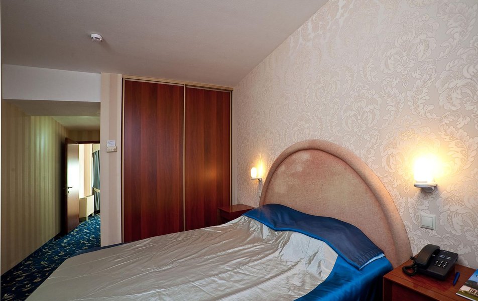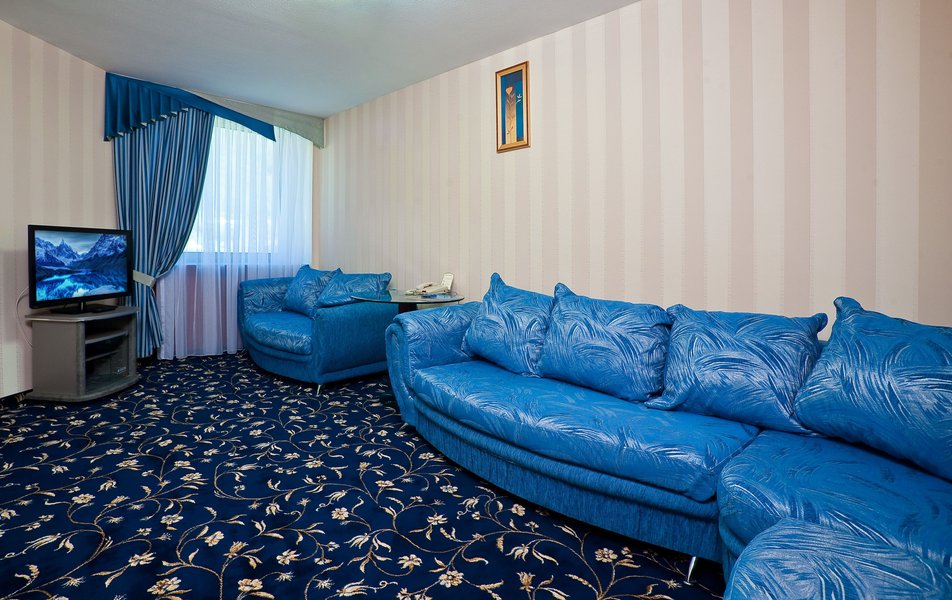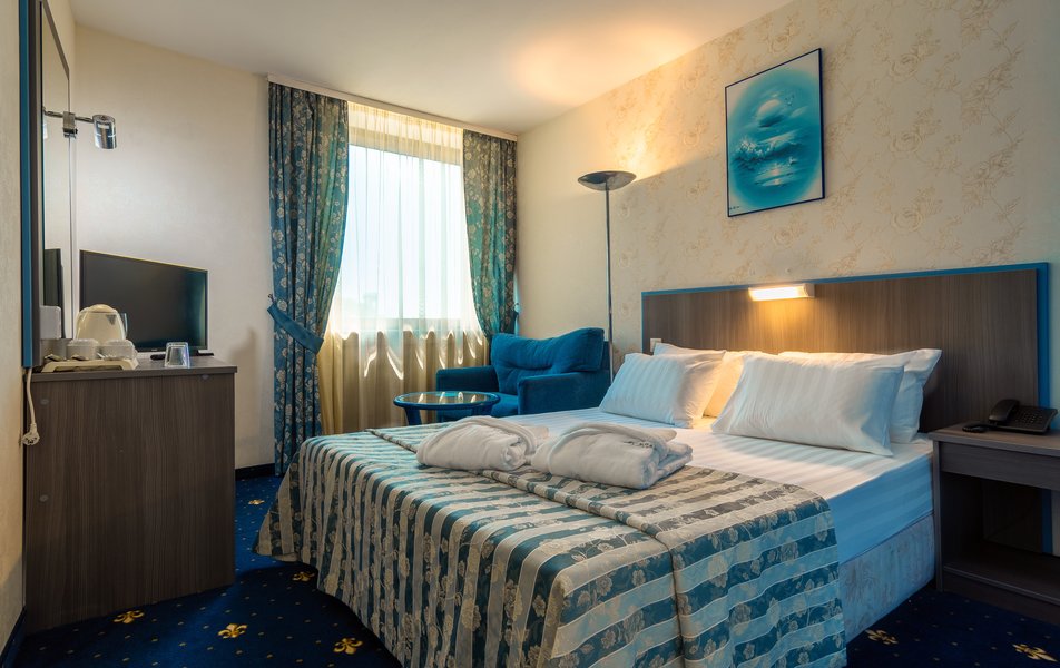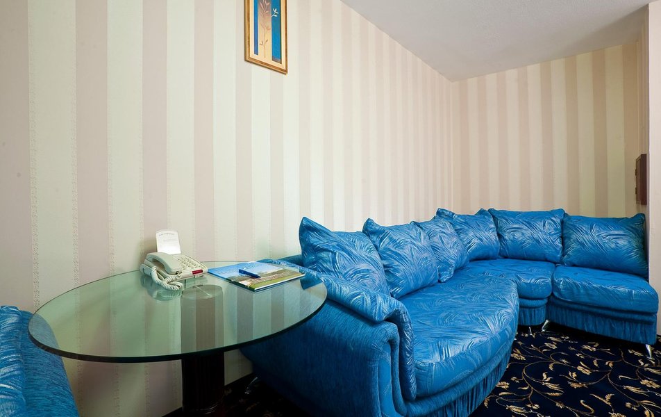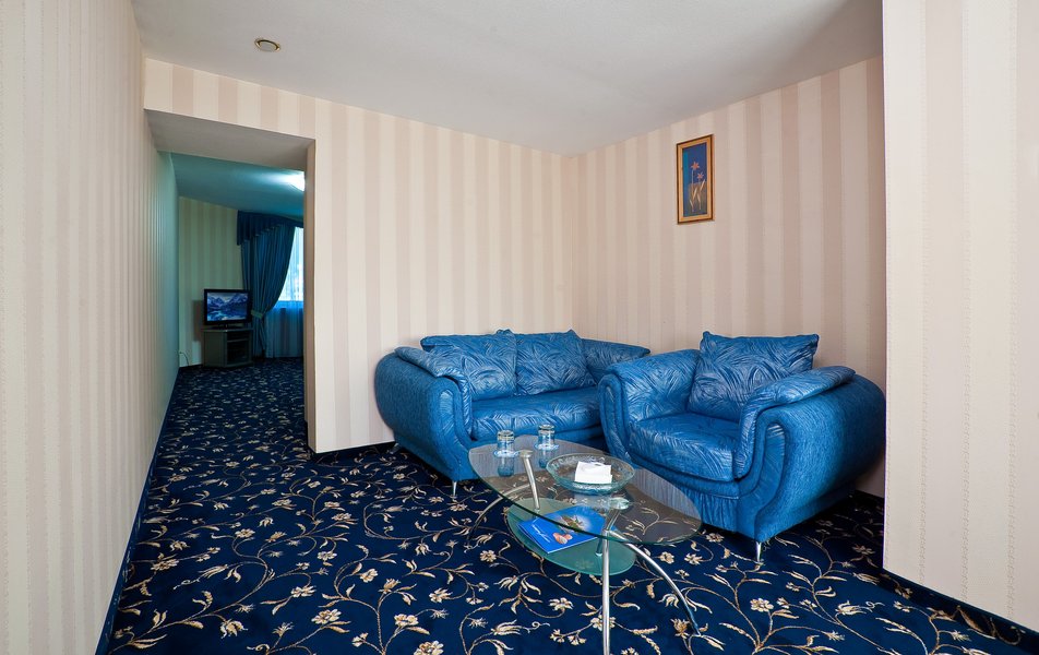 Джуниор Сюит 2-местный Количество комнат: 1-комнатный Тип номера: Джуниор Сюит Дополнительное место: диван или кресло-кровать Кол-во доп. мест: 1 Кол-во номеров: 24 Кол-во основных мест: 2 Корпус: Молния Площадь (кв. м): 35 Балкон: с мебелью Мебель: вешалка, зеркало, кресло, кресло-кровать: или диван, кровать двуспальная, прикроватные тумбочки, столик журнальный, шкаф Оборудование: гладильная доска, сплит-система, телевизор, телефон, утюг, чайная станция Санузел: с ванной, тапочки, туалетные принадлежности, фен, халат Сервис: Wi-Fi бесплатно, мини-бар, смена полотенец, смена постельного белья, уборка номера, услуги международной телефонной связи