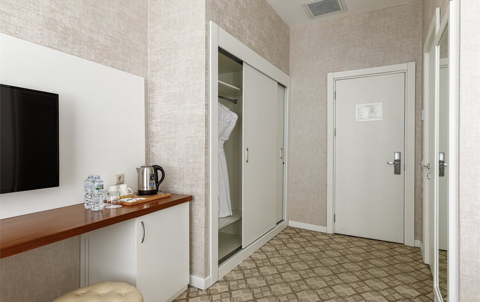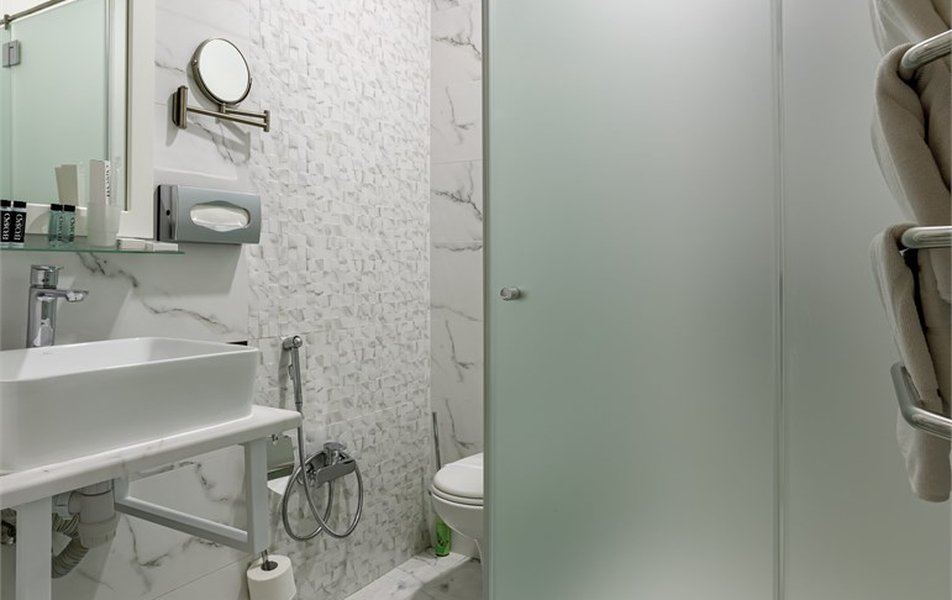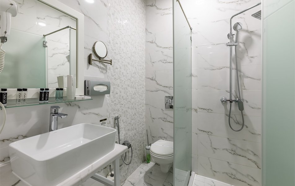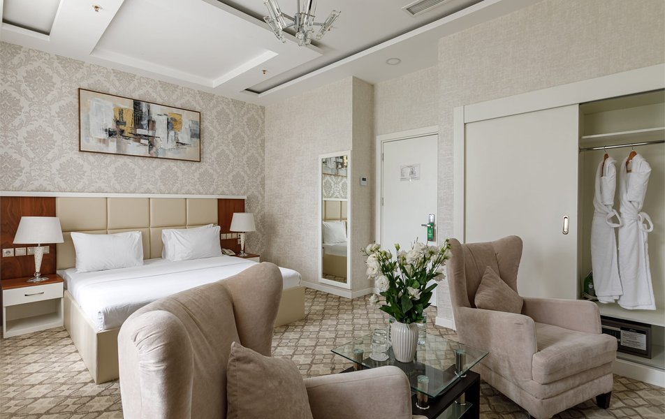 Отвратителтный номер. Просто посмотрите на фото, и все станет понятно. Грязно, неопрятно, окна просто как из свинарника, на тумбе около кровати был слой пыли, провела пальцем. За крышкой унитаза остатки какой-то грязи. В один день раковину просто не помыли, остались разводы грязи. Выкинули мою собственную зубную щетку (это не шутка, уборщицу отправили покупать мне новую). Гладильные доски потрепанные, прям дыры, из которых торчит поролон, пришлось класть полотенце от отвращения. Душ сломан, не закрепить лейку. Короче, смотрите фото, наслаждайтесь, и ни в коем случае не совершайте мою ошибку не ведитесь на фото на сайте отеля. Кстати, у меня номер был бизнес дабл, хоть бы дали нормальный, если клиент не берет стандарт…