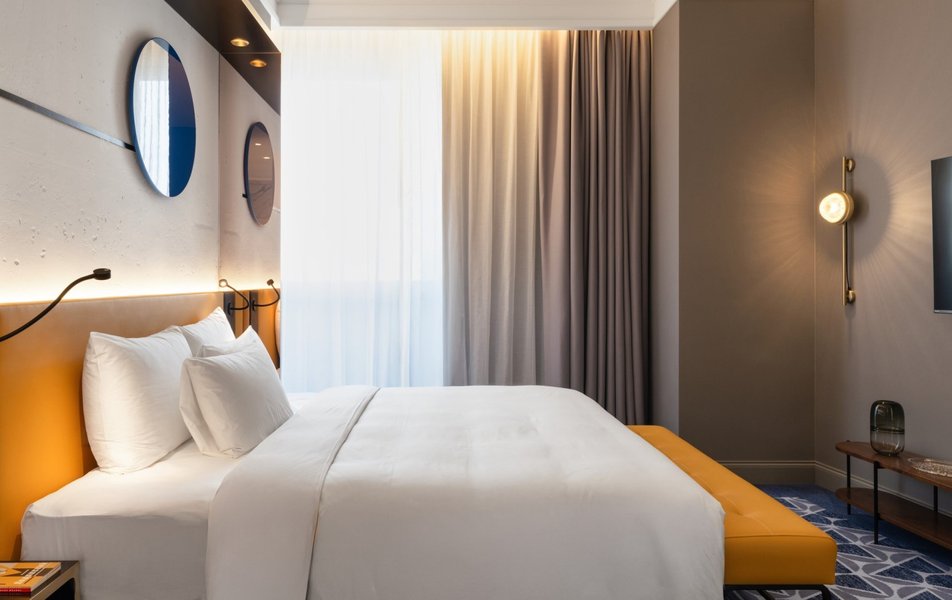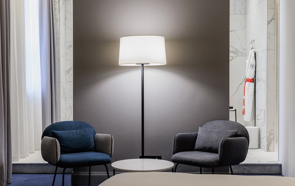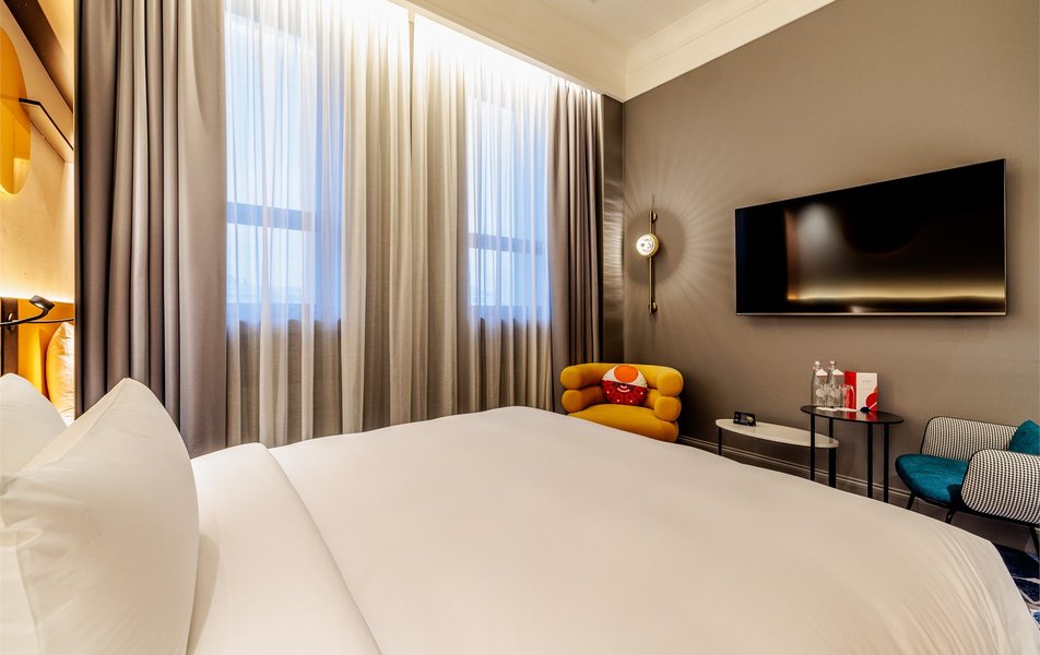 Премиум 2-местный TWIN (вид во двор) Количество комнат: 1-комнатный Вид из номера: на двор Кол-во основных мест: 2 Площадь (кв. м): 24 Мебель: вешалка, зеркало, кровати односпальные, прикроватные тумбочки, стол, стулья, шкаф Оборудование: весы, климатическая система: система климат-контроля, кофемашина, мини-холодильник, сейф, телевизор, телефон, электрочайник Санузел: с душем, тапочки, туалетные принадлежности, фен, халат Сервис: Wi-Fi бесплатно, room-сервис, мини-бар, смена полотенец, смена постельного белья, уборка номера