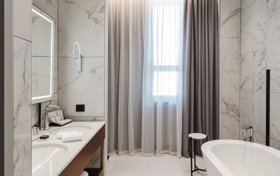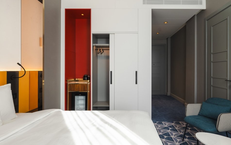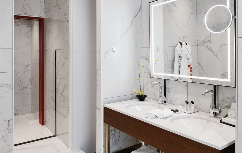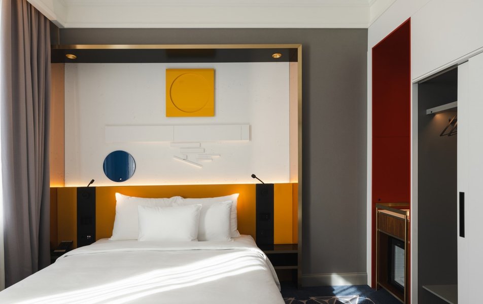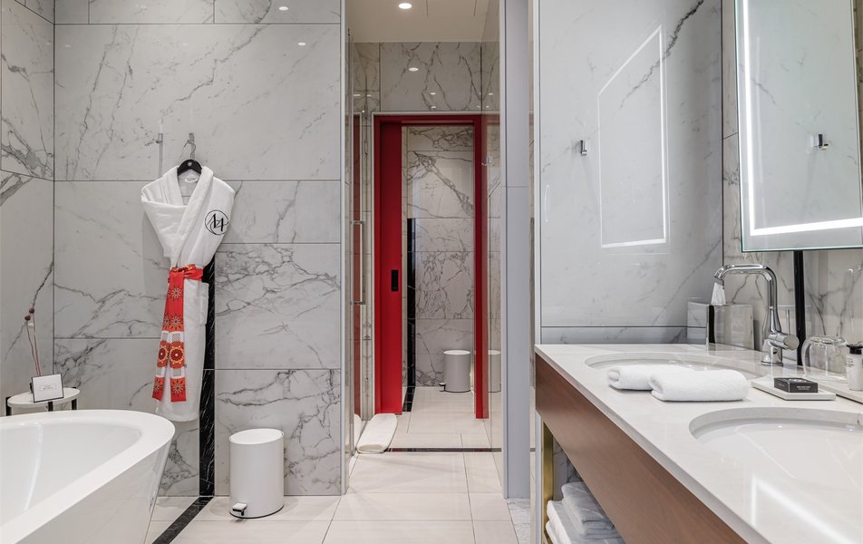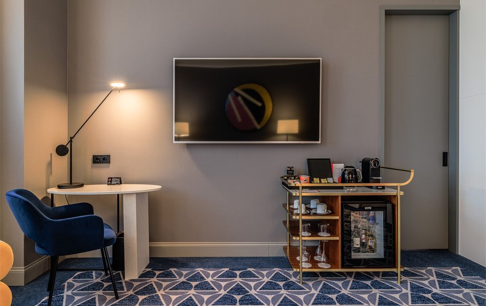 Люкс 2-местный 2-комнатный Амбассадор Количество комнат: 2-комнатный Тип номера: Люкс Кол-во доп. мест: 1 Кол-во основных мест: 2 Площадь (кв. м): 67 Мебель: вешалка, диван, зеркало, кровать двуспальная, прикроватные тумбочки, стол, стулья, шкаф Оборудование: весы, климатическая система: система климат-контроля, кофемашина, мини-холодильник, сейф, телевизор, телефон, электрочайник Санузел: с ванной, с душем, тапочки, туалетные принадлежности, фен, халат Сервис: Wi-Fi бесплатно, room-сервис, мини-бар, смена полотенец, смена постельного белья, уборка номера