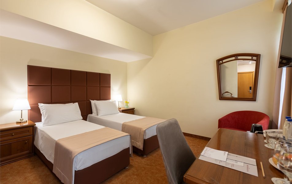 Выбрали 4* , заказали по интернету номер. Хотели проверить резервацию - трубку не взяли. Пришли - оказалось, нет того номера, но есть другой. Естественно, что дороже. По общему правилу должны были бы поселить за те же деньги, но не поселили. В номере не оказалось второго набора не только туалетных принадлежностей, полотенец, но и .... одеяла! Пообещали дать одеяло, но только завтра! После настойчивого требования выдать одеяло для сна сейчас - пред сном - выдали. В номере под стульями валялся мусор. Он и провалялся все 2 дня... Отелю требуется обновление. А так, зимний сад - замечательный, завтрак - нормальный. При выезде девушка на ресепшен спросила: "Понравилось?". Мы замялись... А что так? По мере рассказа (до мусора в номере не дошли) лицо становилось все более отстраненным....