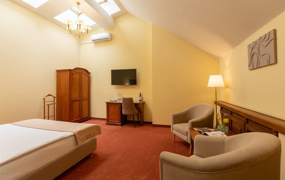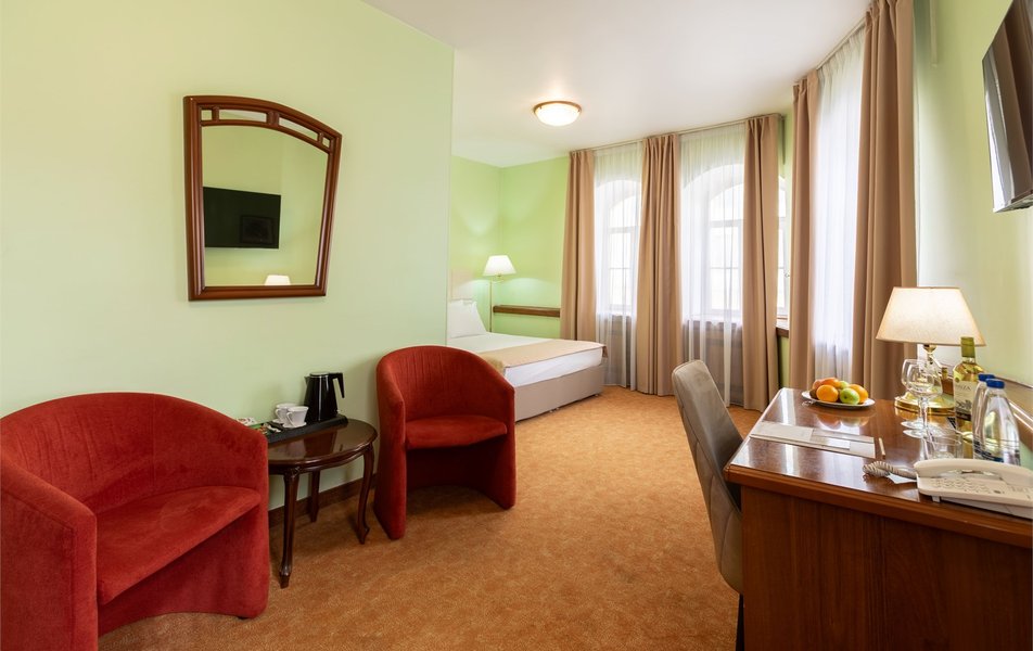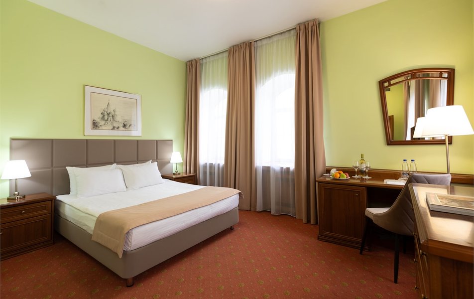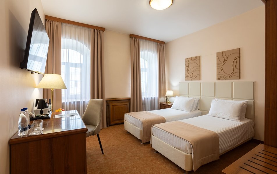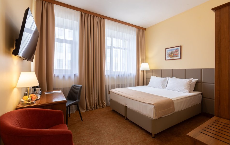 Подкупило удачное расположение, красивый двор и, как никак, 4 звёзды. По факту не знаю как эта гостиница получила 4 звёзды , но буду последователен. 1. В номере очень душно и висит табличка - просьба проветривать каждый час. 2. В номере грязно. Видно что убираются, но генеральной уборки не было дано и в некоторые углы лучше не заглядыать. 3. Ни одной розетки поблизости кровати. Как хочешь так и заряжайся. 4 ТВ приставка свисает с телевизора на изоленте 5. В душе ничего кроме горячей воды не течет . 6 В 10 утра в Субботу (!!!) Позвонили с рецепта и спросили не пойду ли я на завтрак. Спасибо за испорченное утро. 7. Свет в ванной включается только если включить люстру в номере. Ночью пописать не замеченным не выйдет) 8. Висит QR код с предложением оставить отзыв. По ссылке написано что отель не принимает отзывы В общем хотел написать, что это может и 4 звёзды в, к примеру, Сызрани, но решил не оскорблять Сызрань. Это правда очень плохо. Я съехал раньше срока.