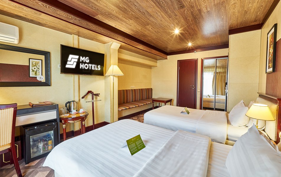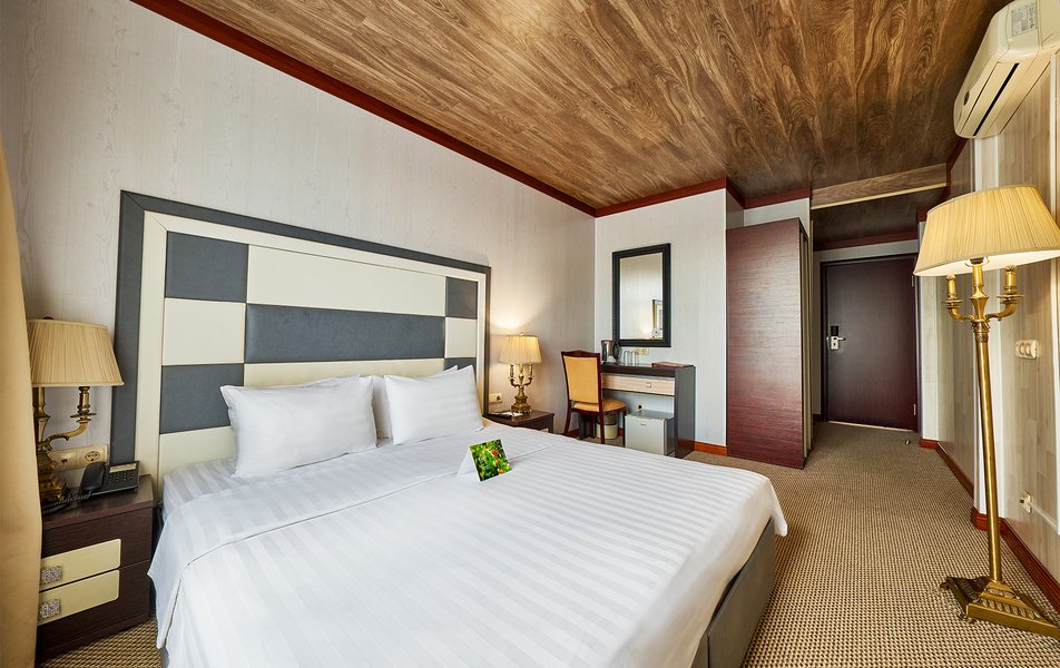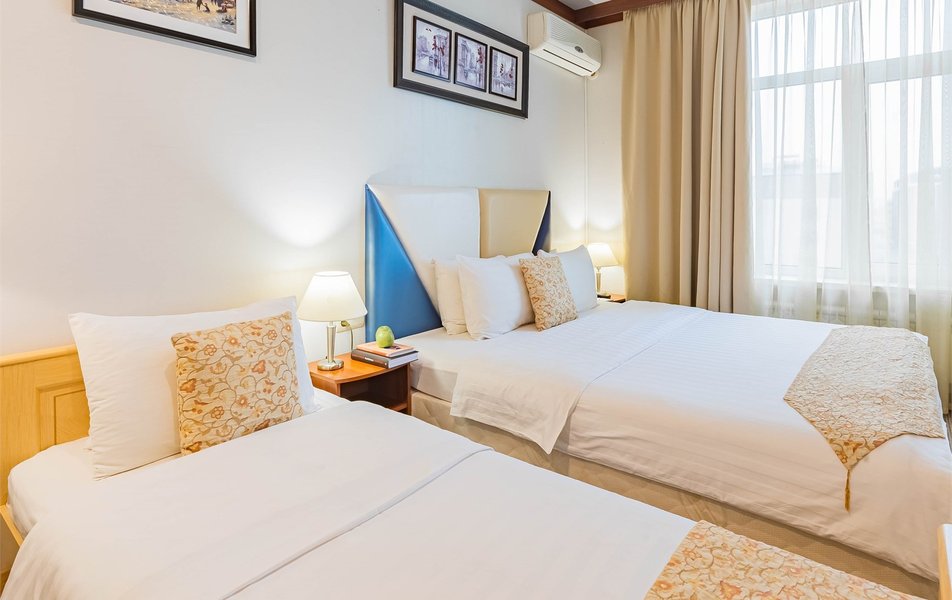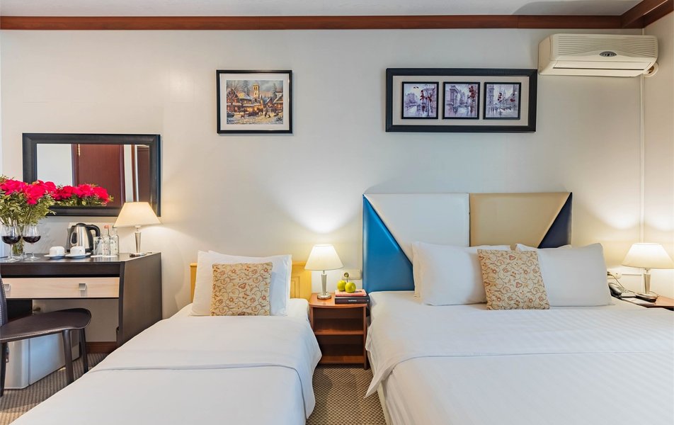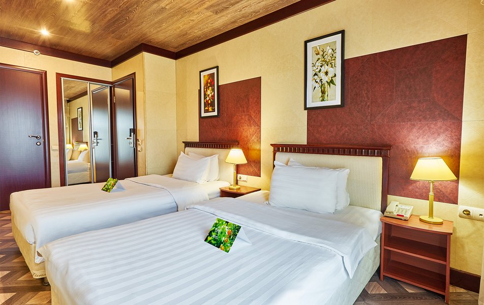 Сюда можно заманить только обманом. Полотенца в пятнах, весь туалет вонял мочой, двери ломались у меня и у родственников в другом номере, их чинили 30 минут. Уборка номера плохая и раз в два дня, когда мусор уже накопился просили убрать номер два раза подряд так и не убрали. Кондиционер протекает очень сильно, а в другом номере мы его так и не включали потому что не было пульта. В коридоре каждый день с 9 утра сверлили очень громко, ремонтировали коридор. У соседей в номере была собака которая гавкала с 8 утра. Все старое грязное и вонючее, было ошибкой сюда заселиться.