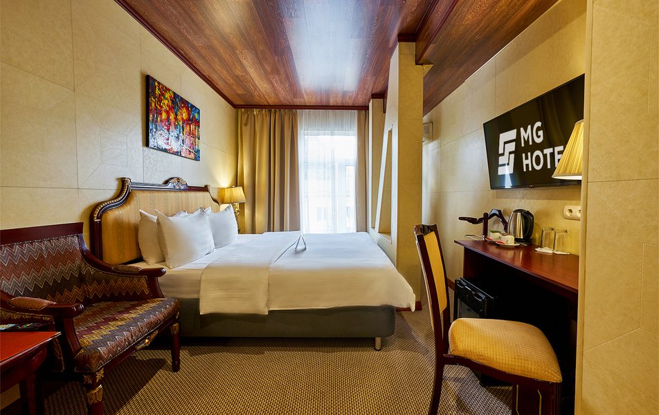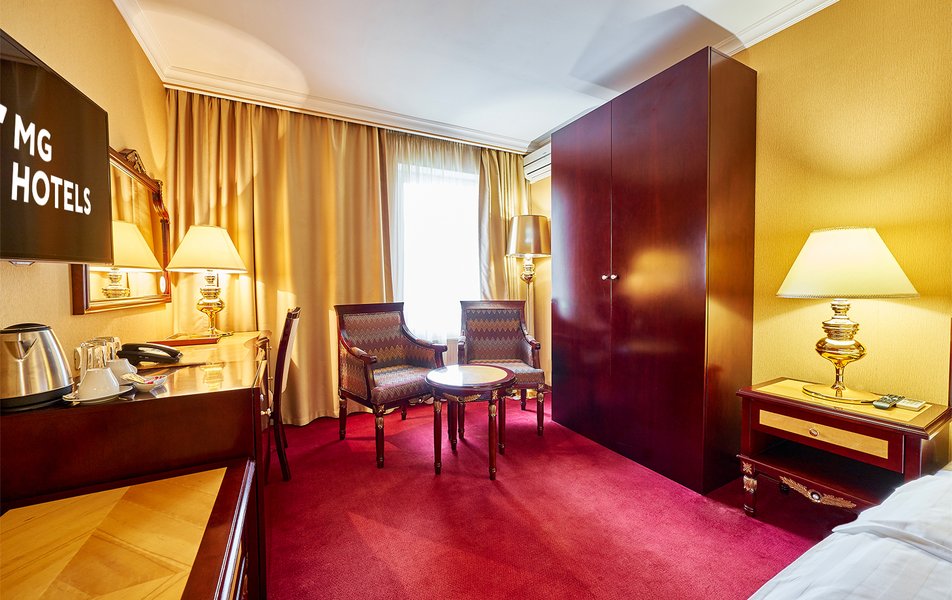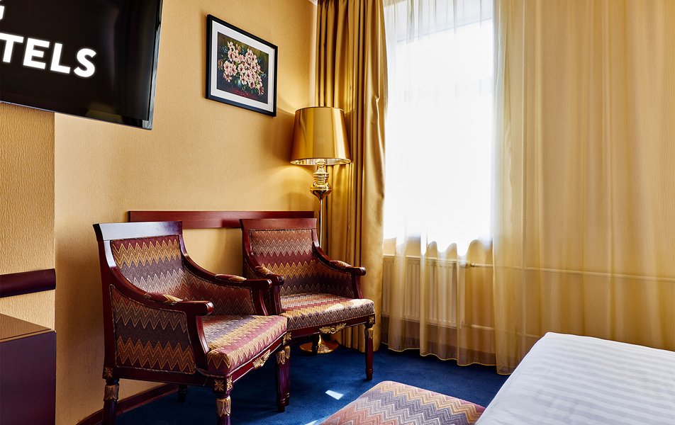 Если коротко, плохо все: начиная со сломанной мебели, обшарпанных углов, отсутствием нормального освещения, тухлых полотенец,ржавого душа, очень маленькой площади номеров (при раздвинутых двух односпальных кроватях не открывается полностью дверь в ванную и ящик тумбочки), заканчивая абсолютно не заинтересованном в вас персонале. Спасибо хоть без грубостей. Сервис отеля на уровне хостела. Грязно, темно, некомфортно, тесно и дорогой завтрак при очень скудно "шведском столе". Единственный плюс - расположение - в пешей доступности от вокзалов. Точно не выберу этот отель снова.