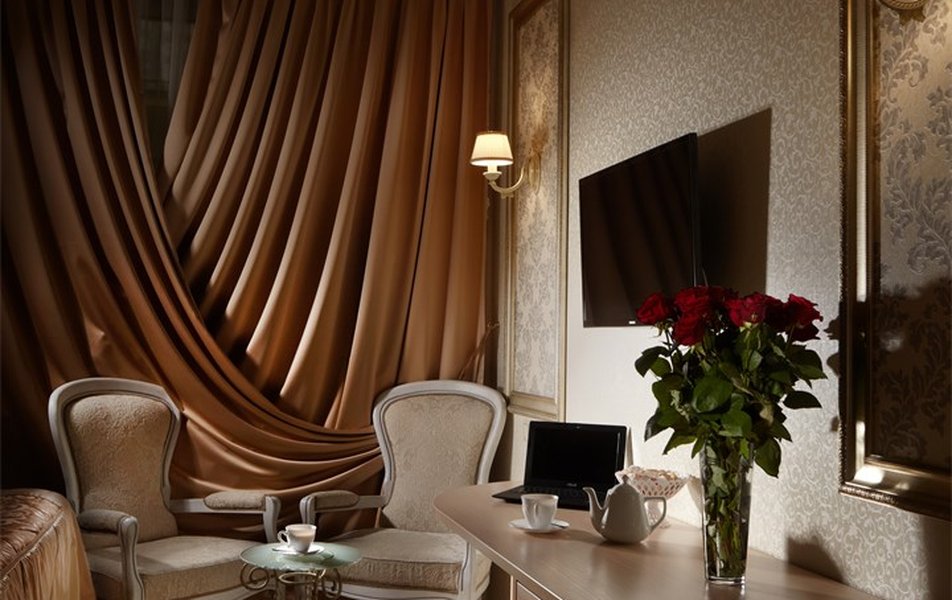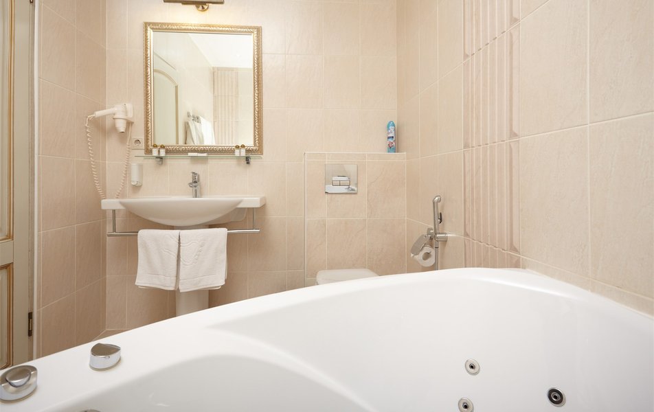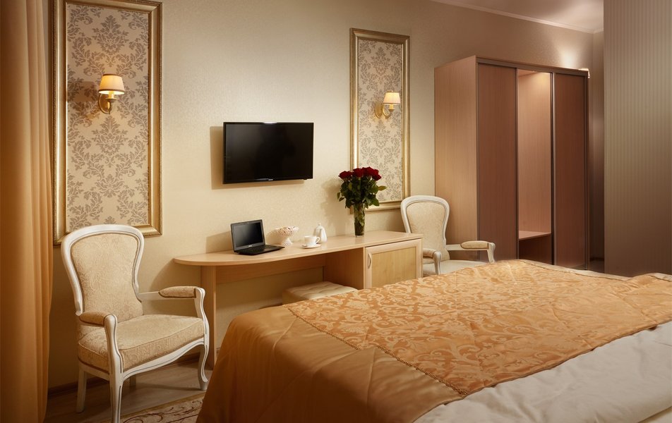 Делюкс 2-местный 1-комнатный Количество комнат: 1-комнатный Тип номера: Делюкс Вид из номера: на город Кол-во основных мест: 2 Площадь (кв. м): 16 Мебель: вешалка, зеркало, кровать двуспальная, прикроватные тумбочки, стол, стулья, шкаф Оборудование: кондиционер, сейф, телевизор ЖК, телефон Санузел: с джакузи, тапочки, туалетные принадлежности, фен, халат Сервис: Wi-Fi бесплатно, room-сервис, смена полотенец, смена постельного белья, уборка номера, услуги внутренней телефонной связи