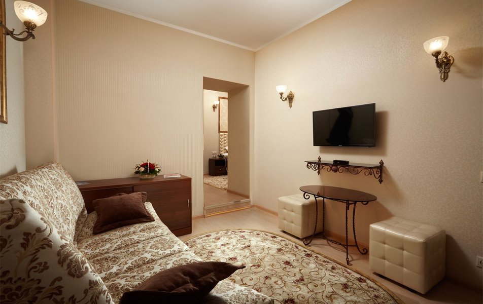 Делюкс 2-местный 2-комнатный (Плюс) Количество комнат: 2-комнатный Тип номера: Делюкс Дополнительное место: диван Вид из номера: на город Кол-во доп. мест: 1 Кол-во основных мест: 2 Площадь (кв. м): 18 Мебель: вешалка, диван, зеркало, кресло, кровать двуспальная, прикроватные тумбочки, стол, стулья, тумба, шкаф Оборудование: кондиционер, сейф, телевизор ЖК, телефон Санузел: с душевой кабиной, тапочки, туалетные принадлежности, фен, халат Сервис: Wi-Fi бесплатно, room-сервис, смена полотенец, смена постельного белья, уборка номера, услуги внутренней телефонной связи