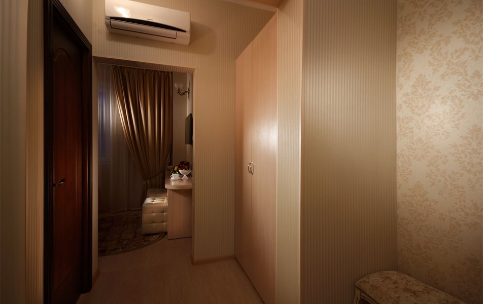 Бюджетный 2-местный 1-комнатный Количество комнат: 1-комнатный Тип номера: Эконом Вид из номера: на город Кол-во основных мест: 2 Площадь (кв. м): 18 Мебель: вешалка, зеркало, кровать двуспальная, прикроватные тумбочки, стол, тумба багажная, шкаф Оборудование: кондиционер, сейф, телевизор ЖК, телефон Санузел: с душевой кабиной, тапочки, туалетные принадлежности, фен Сервис: Wi-Fi бесплатно, room-сервис, смена полотенец, смена постельного белья, уборка номера, услуги внутренней телефонной связи
