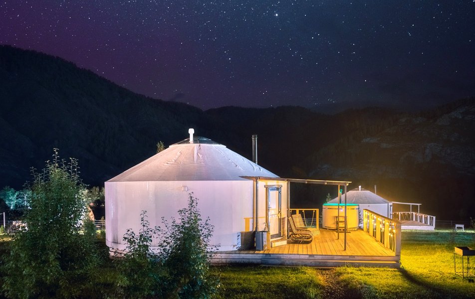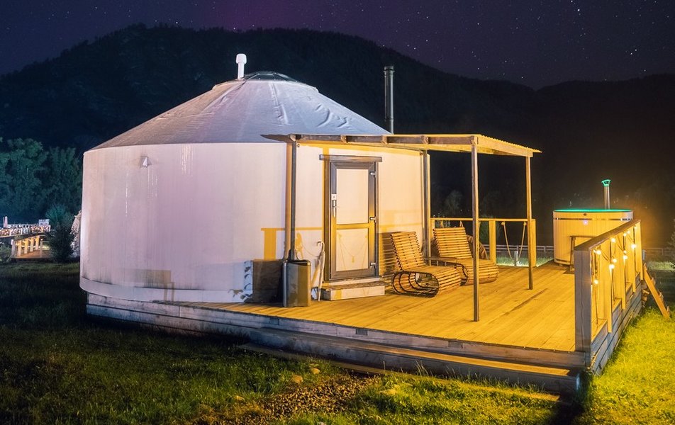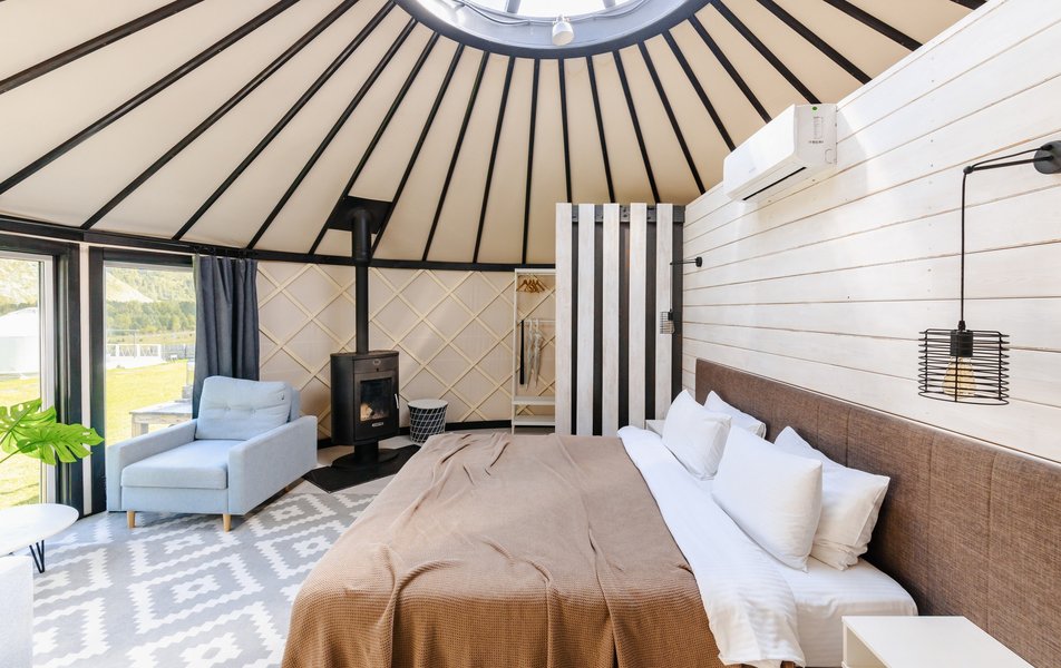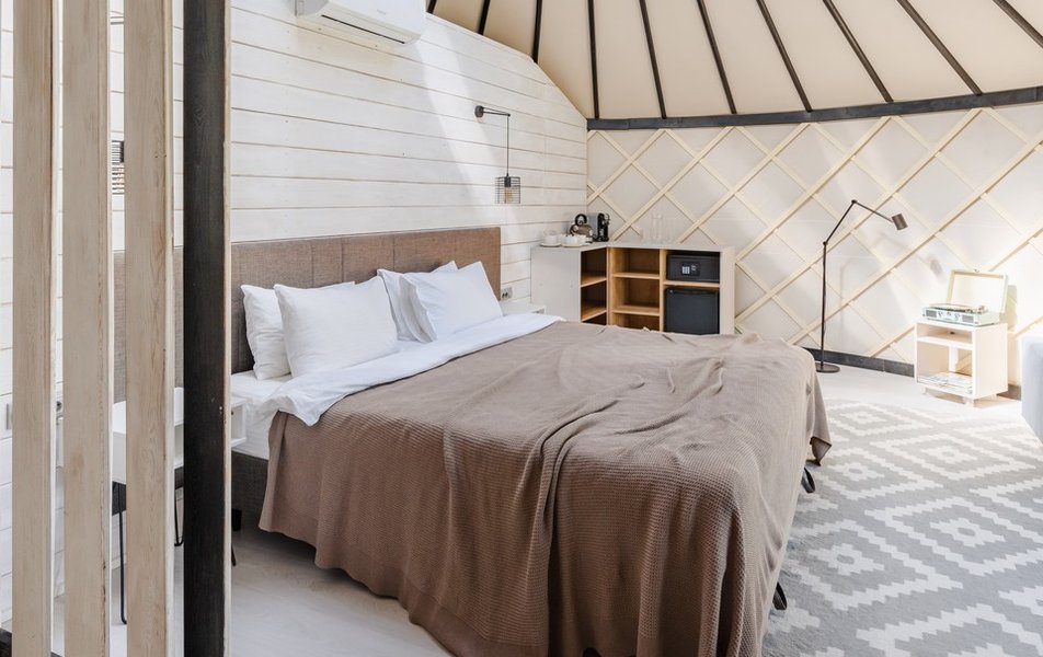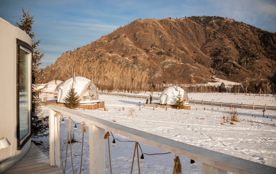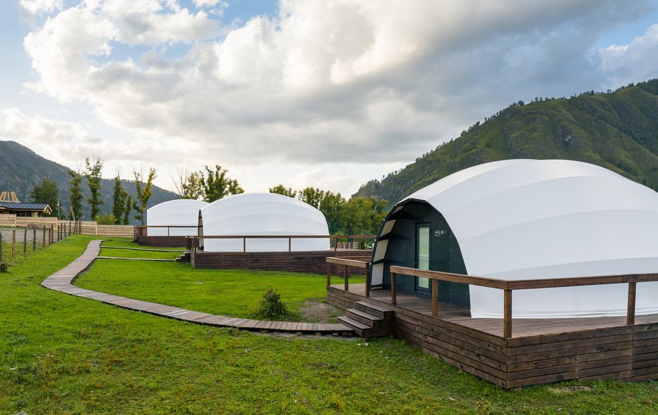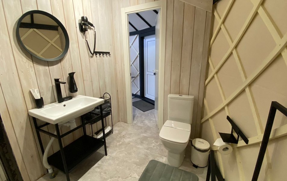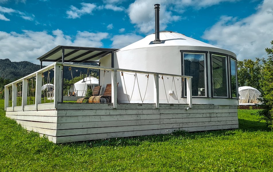 Оригинальный отель) есть номера сферы, а есть юрты. В номерах тепло, есть даже камины. Если жарко, то можно включить кондей. Территория интересная, понятная. Кафешка вкусная. В юртах можно заказать горячую бочку, баню по-японски: впечатляет) всегда мечтала пожить в таким местечке, и вот получилось) персонал очень приятный.