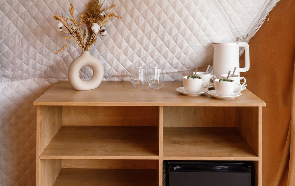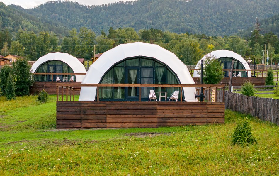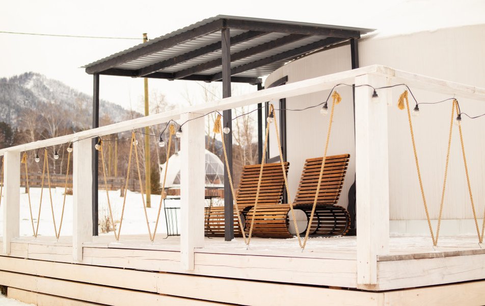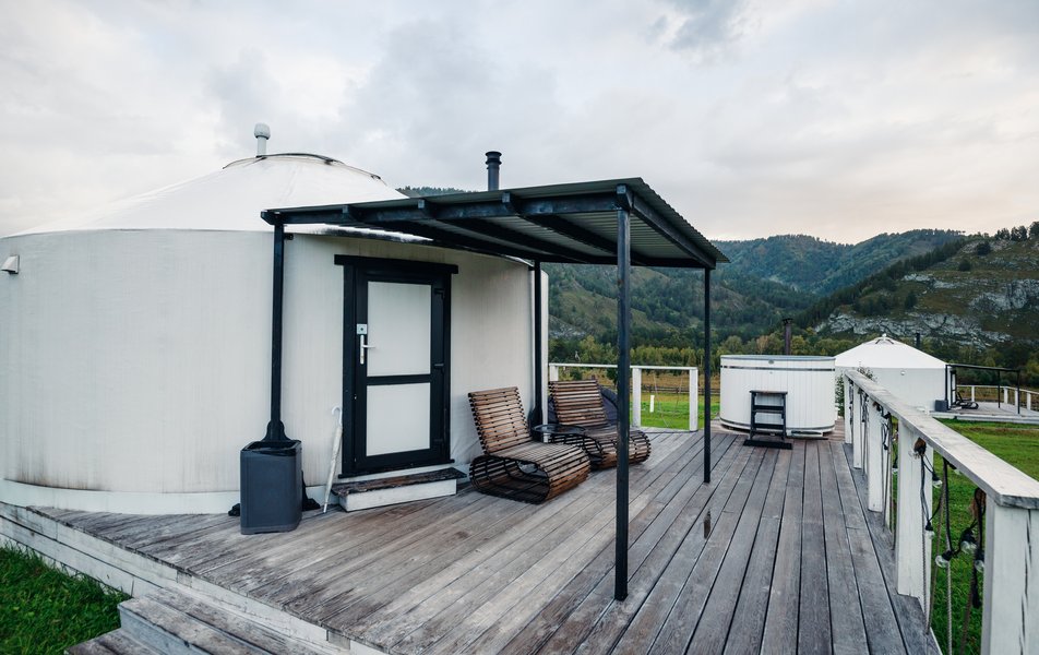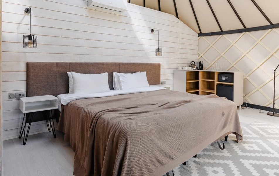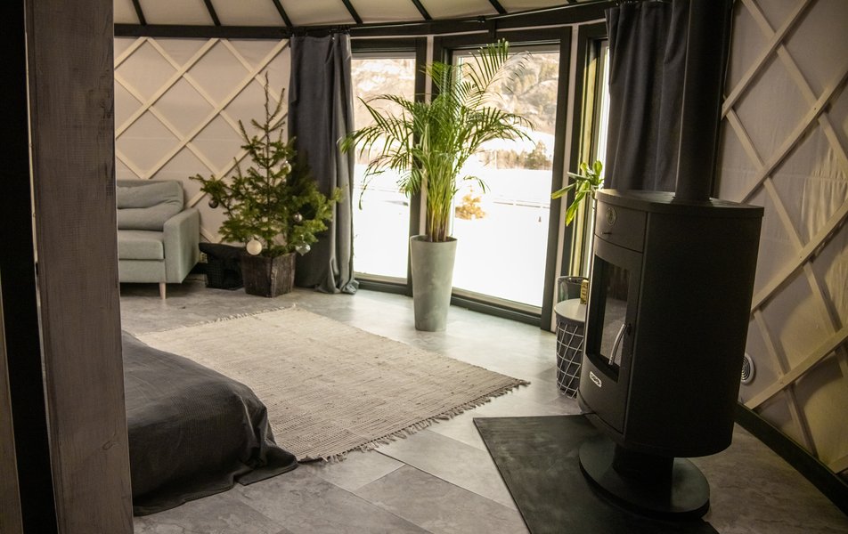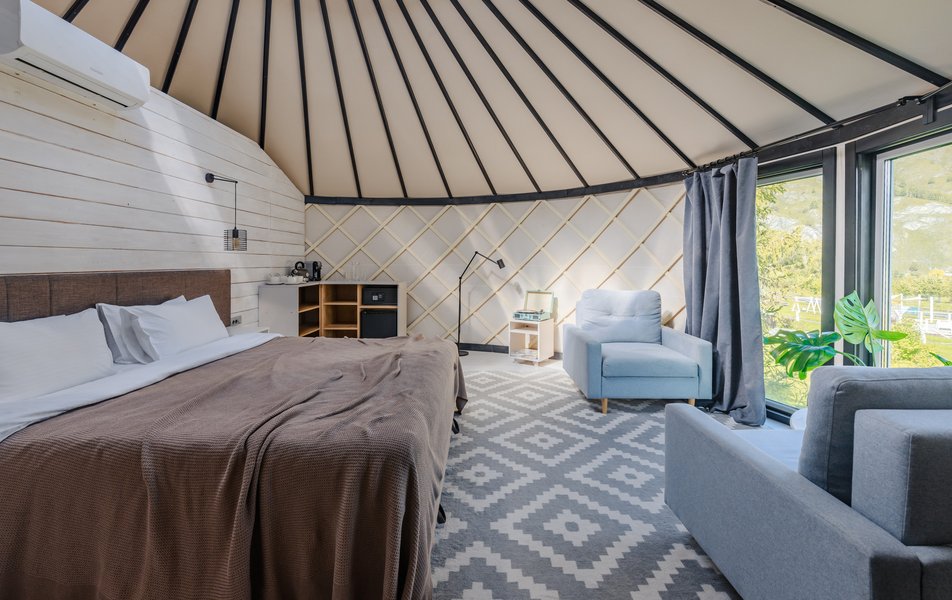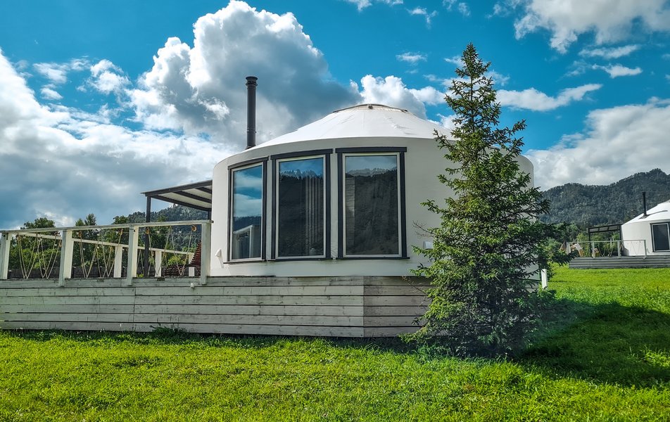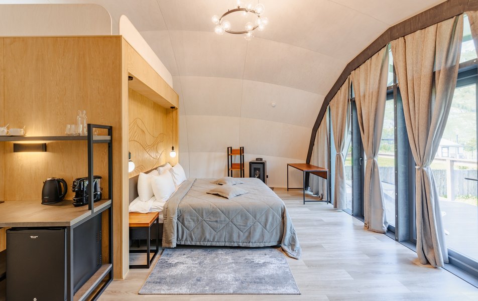 Оригинальный отель) есть номера сферы, а есть юрты. В номерах тепло, есть даже камины. Если жарко, то можно включить кондей. Территория интересная, понятная. Кафешка вкусная. В юртах можно заказать горячую бочку, баню по-японски: впечатляет) всегда мечтала пожить в таким местечке, и вот получилось) персонал очень приятный.