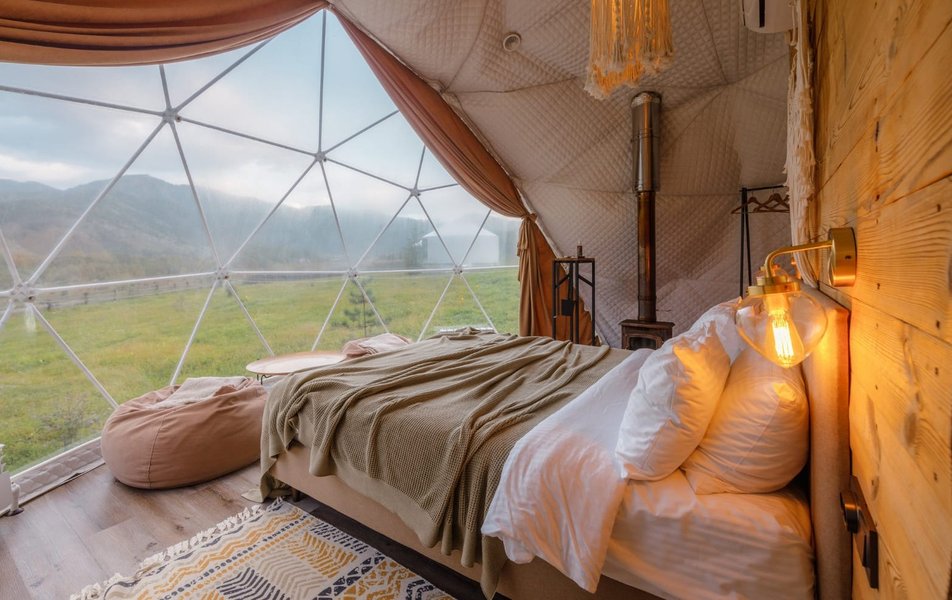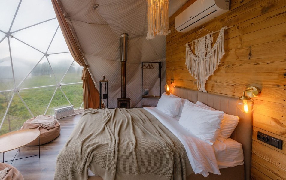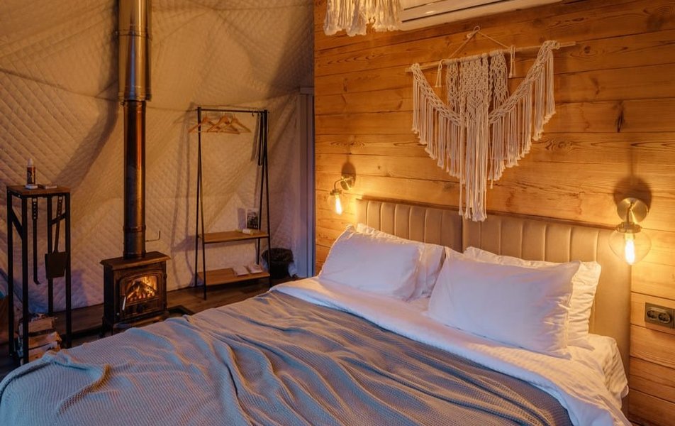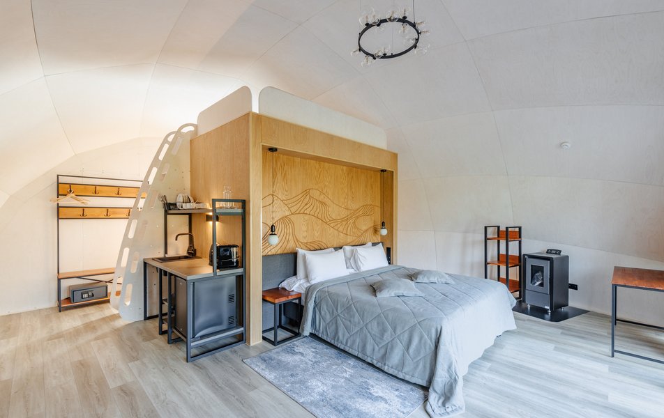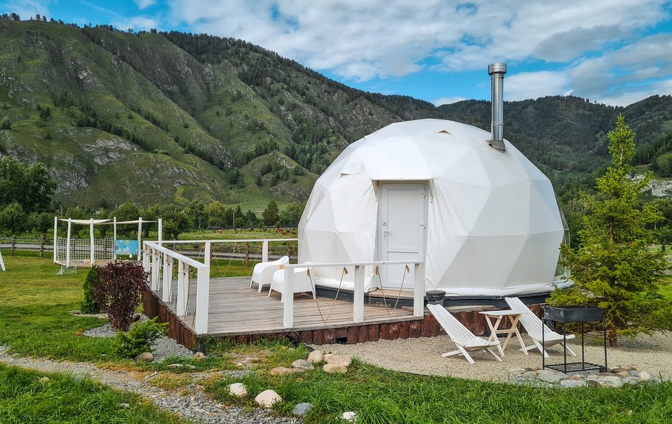 Останавливались в отеле на ноябрьские праздники, при выборе отеля были, конечно же сомнения (вдруг холодно? вдруг грязно? вдруг далеко от цивилизации?) Милейшая пара молодых ребят встретила на ресепшн, они прям созданы для этого места, уже на них смотришь и понимаешь, что с выбором отеля не прогадал) всё рассказали, всё показали, всё предложили, что могли предложить, проводили в номер (жили в куполе #7) и при входе в номер случилась любовь Я не знаю как это работает, но ты прям чувствуешь себя как дома, ты чувствуешь, что всё сделано с любовью и душой в куполе тепло, уютно, всё идеально чистое, новое. Зы: даже выходить не хотелось) но если ты вышел из купола, то и на улице глаз радуется) на достаточно большой территории всё расположено с умом, у каждого "домика" оборудованная мангальная зона с креслами-шезлонгами, по всей территории порядок и чистота, куда не глянь, везде потрясающие виды, а если пару раз сказать "кскс", то к вам обязательно в гости прибежит какой-нибудь милейший пушистик А ещё в отеле есть приятный бонус в виде завтраков, которые можно прям в кровати принимать) завтраки хорошие, сытные, но и без них отель просто восхитителен Это место в сердечке на долгие годы