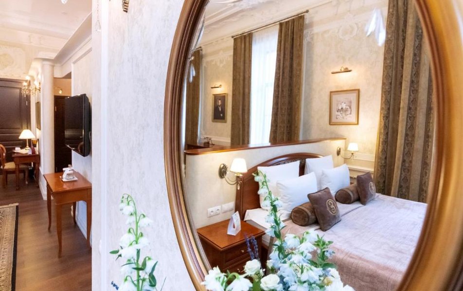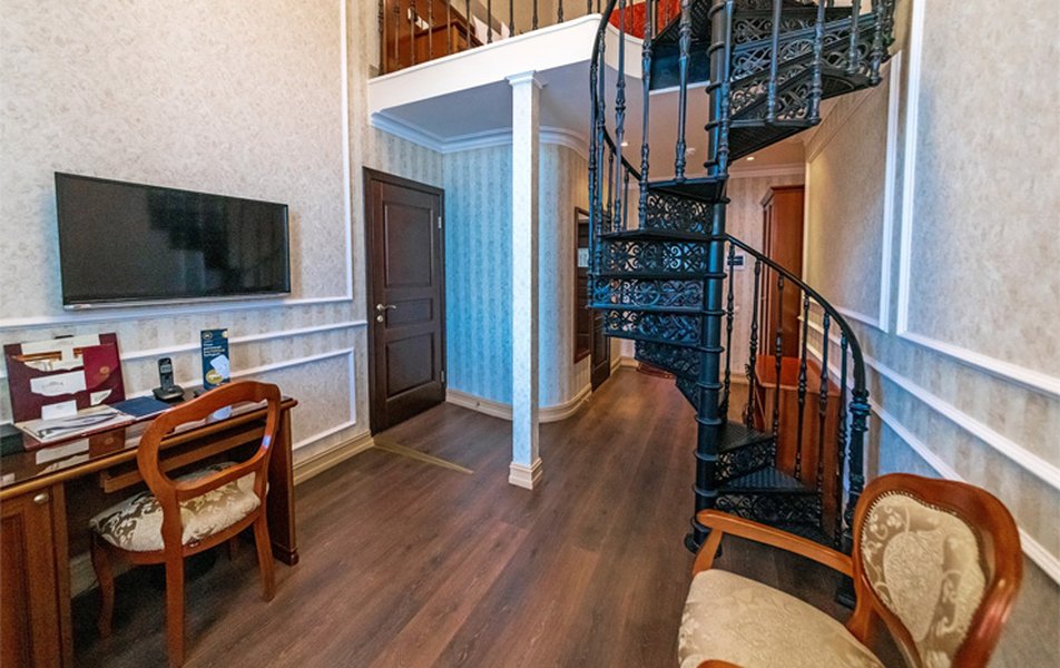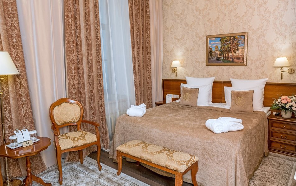 Делюкс 3-местный 1-комнатный (с видом на небо Санкт-Петербурга, мансарда) Количество комнат: 1-комнатный Тип номера: Делюкс Кол-во основных мест: 3 Площадь (кв. м): 37 Мебель: вешалка, диван раскладной, зеркало, кровати односпальные /одна двуспальная кровать, прикроватные тумбочки, стол, стулья, тумба багажная, шкаф Оборудование: кондиционер, кофемашина, мини-холодильник, сейф, телевизор ЖК, телефон, чайный набор посуды, электрочайник Санузел: с душем, тапочки, туалетные принадлежности, фен, халат Сервис: Wi-Fi бесплатно, смена полотенец, смена постельного белья, уборка номера, услуги внутренней телефонной связи