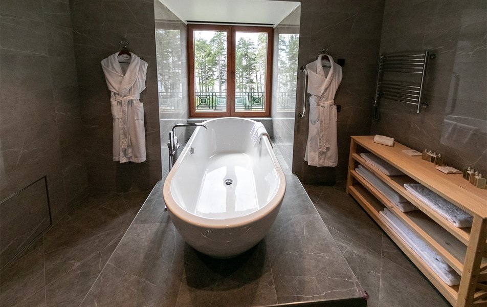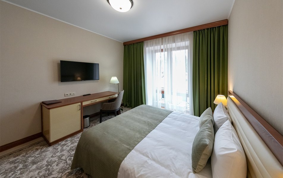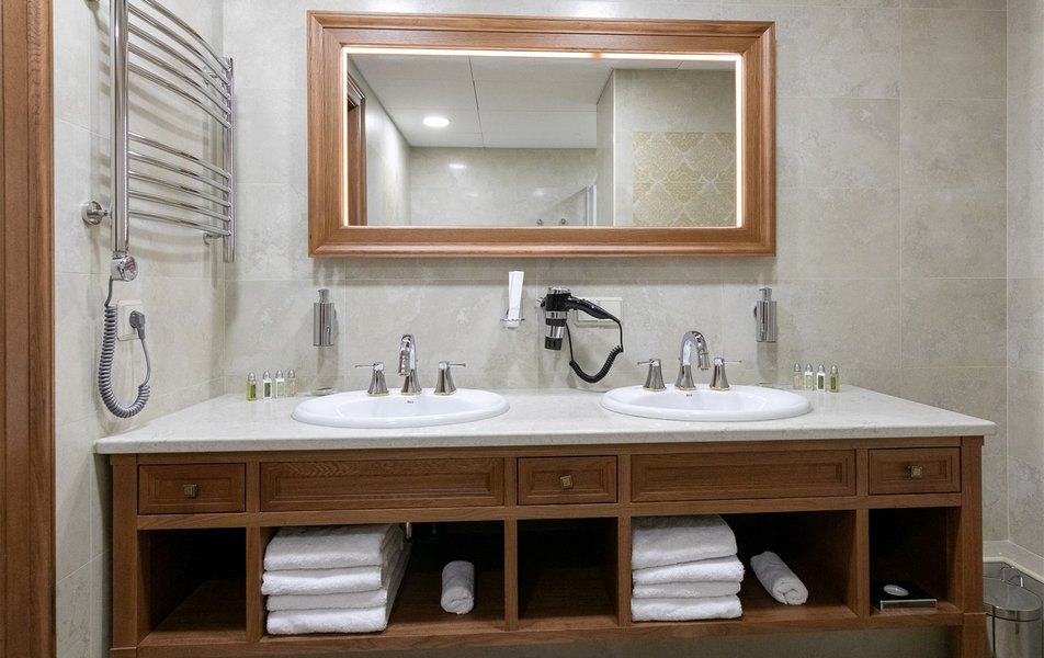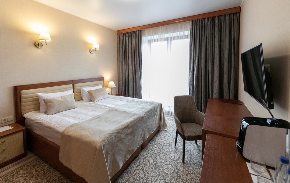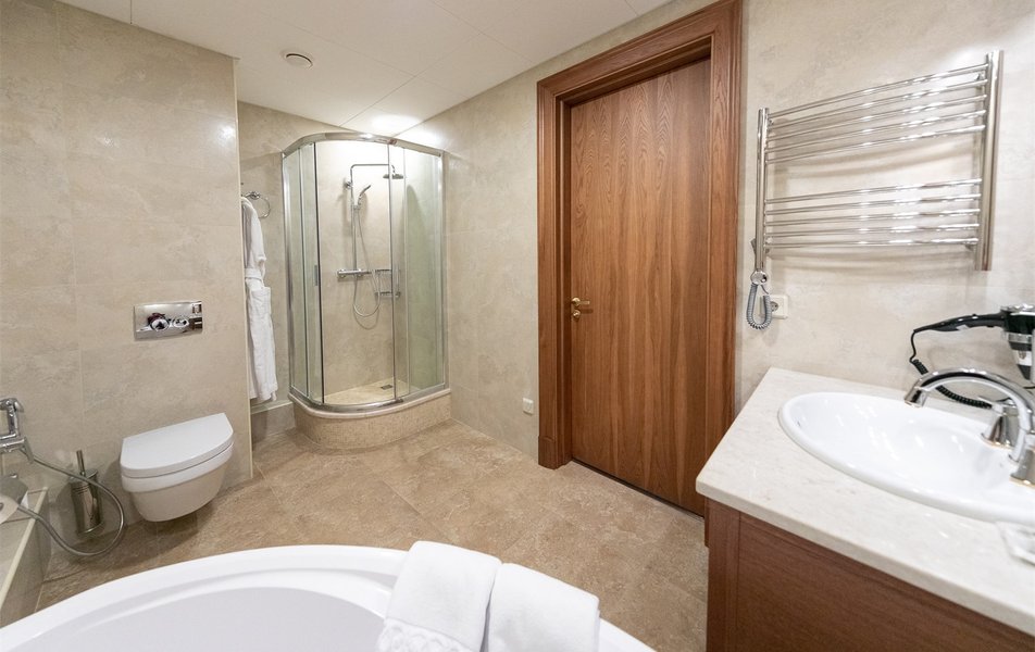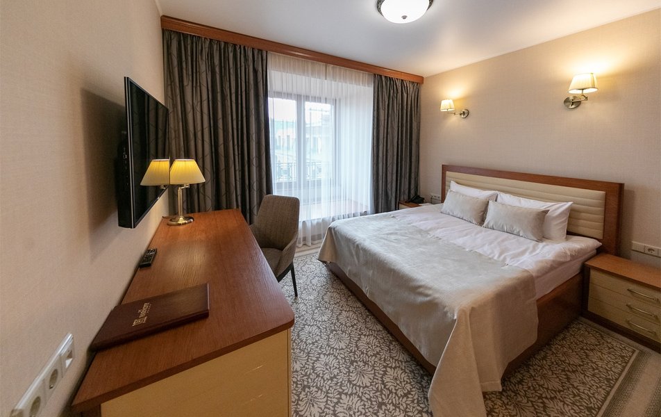 Люкс 4-местный 3-комнатный Президентский Количество комнат: 3-комнатный Тип номера: Люкс Кол-во основных мест: 4 Площадь (кв. м): 320 Мебель: диван, зеркало, кровать двуспальная, прикроватные тумбочки, стол, стулья, шкаф Оборудование: бильярд, кондиционер, кофемашина, микроволновая печь, набор посуды, плита электрическая, сейф, телевизор, телефон, холодильник, чайный набор посуды, электрочайник Санузел: 2 санузла, с ванной, с душевой кабиной, тапочки, туалетные принадлежности, фен, халат Сервис: Wi-Fi бесплатно, смена полотенец, смена постельного белья, уборка номера, услуги внутренней телефонной связи