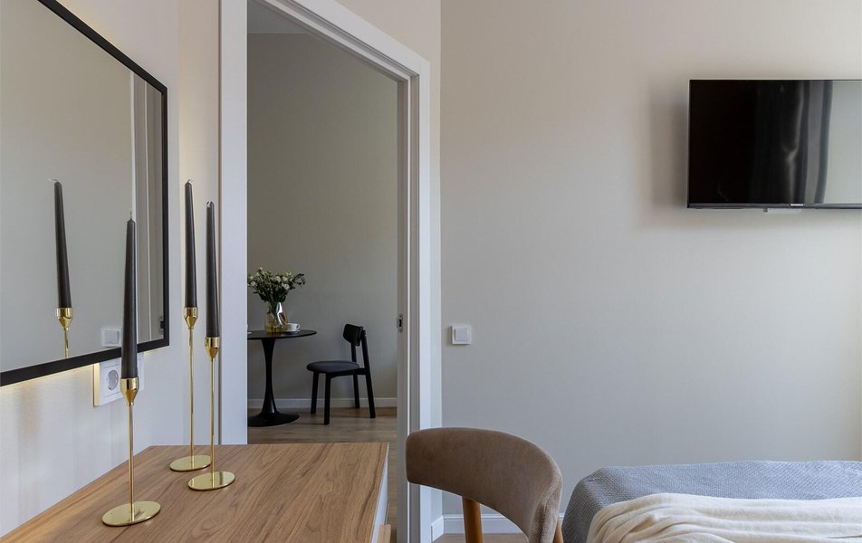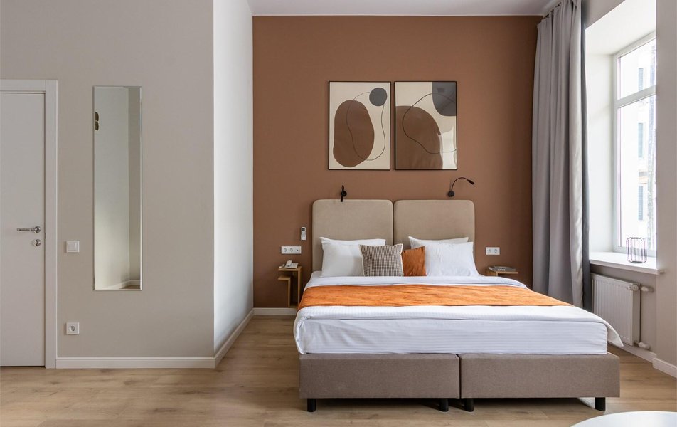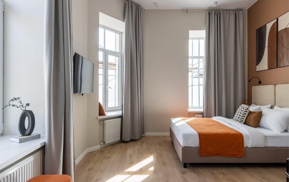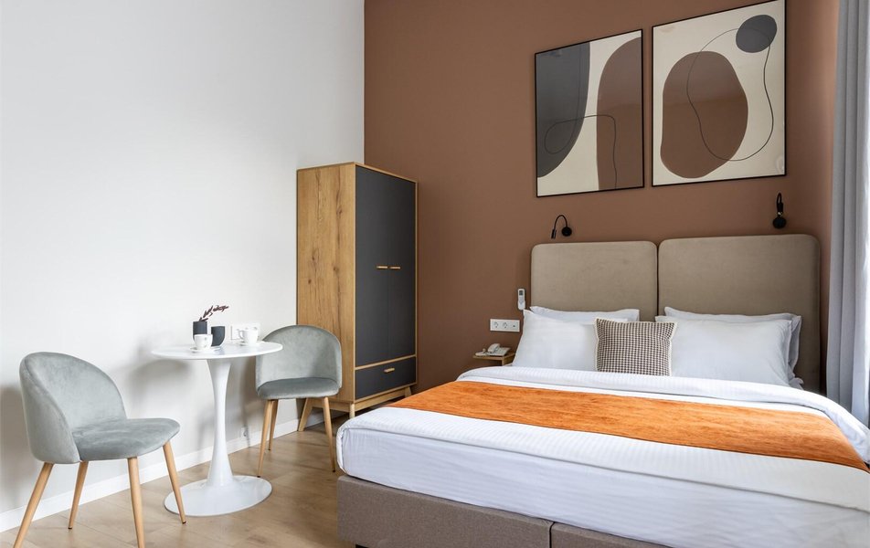 Заселили в забронированный номер только после 16.00, (номер был не готов) , при этом администратор ни единого слова извинения не принесла . Про работу администраторов (и да их много, они почему-то очень часто меняются ) - это абсолютно безразличны , неприветливые девушки, когда проходишь мимо ресепшена, они никогда не здороваются , на претензии или пожелания отвечают сквозь зубы и в большей части ничего не знают и не владеют информацией. Заранее заказывали 2 одеяла, об это забыли , пришлось ждать , когда принесут. На кровати ужасный грязный и разорванный матрас, его просто накрыли наматрасником , об этом все знают , но мер по замене не принимают, решение после неоднократного обращения нашли - принесли топер, но от этого спать не стало лучше. Полотенца в номере меняли через день, они очень старые , застиранные. Номер на 4 этаже , лифта нет, только по нашей просьбы наш багаж доставил сотрудник мужчина, администратор сама не предлагает такую услугу. Номер был с кухней - из положительного это только наличие бумажных салфеток , тарелок , 2 бокалов для вина и 2 чашек одинаковых . Столовые приборы - ложки и вилки все разные , старые , их надо заменить . Кастрюля и сковорода самые дешевые , как из фольги. Номер убирали каждый день, хорошо, девушка очень старательная и приветливая . Расположение отеля хорошее , рядом метро , до основных достопримечательной быстро добираться (это из позитивных моментов). В целом отель не соответствует 4 звездам, как они себя позируют.