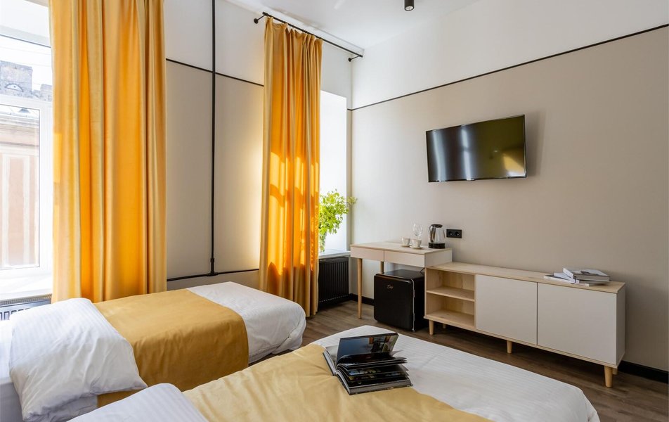 У нас был поздний заезд (около 1.00), мы оплатили за полные сутки и внесли предоплату за номер, а также сразу оплатили 4 дня парковки, хотя провели там всего 3 суток. Я несколько раз звонила и предупредила, что у нас поздний заезд, мы на машине, нам нужна парковка,которую мы оплатили и в вотс ап прислали чек. Арка на парковку оказалась закрыта. Гончарная улица с односторонним движением, машину поставить вообще некуда, даже на тротуар. Мы сделали 3 круга, пока дозванивались и нам открыли въезд. С парковки в отель попасть нельзя, надо выйти снова на Гончарную (нас не предупредили, мы опять дозванивались в отель). Сотрудница на ресепшене неспеша копировала наши документы и выставила к оплате сумму, большую, чем мне показалось должна быть. Стали выяснять, оказалось, что потеряли информацию о нашей предоплате (напоминаю, что я прислала чеки в вотсап по реквизитам, что они мне выставили). Ладно, разобрались, сотрудница подтвердила, что у нас оплачены завтраки. Номер был на 4 этаже (лифта нет, никто не провожает). Лезть высоко и с вещами неудобно. Номер крошечный, но чистый (кроме постельного белья и полотенец. Белье в пятнах, полотенца когда-то были белые, но очень устали). Утром спустились на завтрак и кормить нас отказались, потому что нас нет в списках. Отправили на ресепшн разбираться. Завтрак невкусный, от сырников ребенка (11 лет) через 10 минут вырвало. Ждать завтрак нужно не меньше 40 минут (мы в другие дни не дождались и решили завтракать в кафе). Про гастробар Марсала написала отдельный отзыв. Резюме, это не 4 звезды, а 2. Не советую и сама больше никогда не поеду
