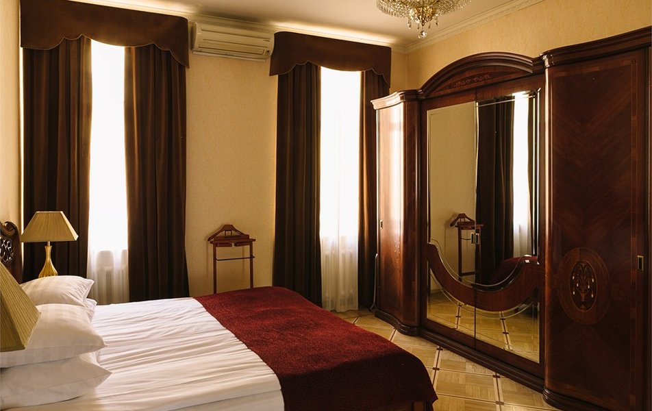 Люкс 2-местный 1-комнатный Количество комнат: 1-комнатный Тип номера: Люкс Дополнительное место: кровать Кол-во доп. мест: 1 Кол-во основных мест: 2 Площадь (кв. м): 30 Мебель: зеркало, кровати односпальные /одна двуспальная кровать, прикроватные тумбочки, стол, стулья, шкаф Оборудование: кондиционер, мини-холодильник, сейф, телевизор, телефон Санузел: с душем или ванной, тапочки, теплый пол, туалетные принадлежности, фен, халат Сервис: Wi-Fi бесплатно, room-сервис, мини-бар, смена полотенец, смена постельного белья, уборка номера, услуги телефонной связи по территории отеля