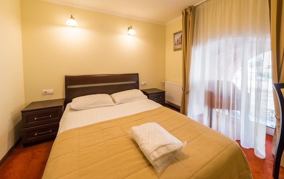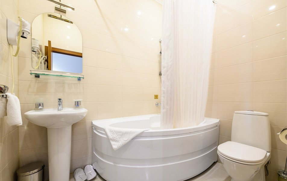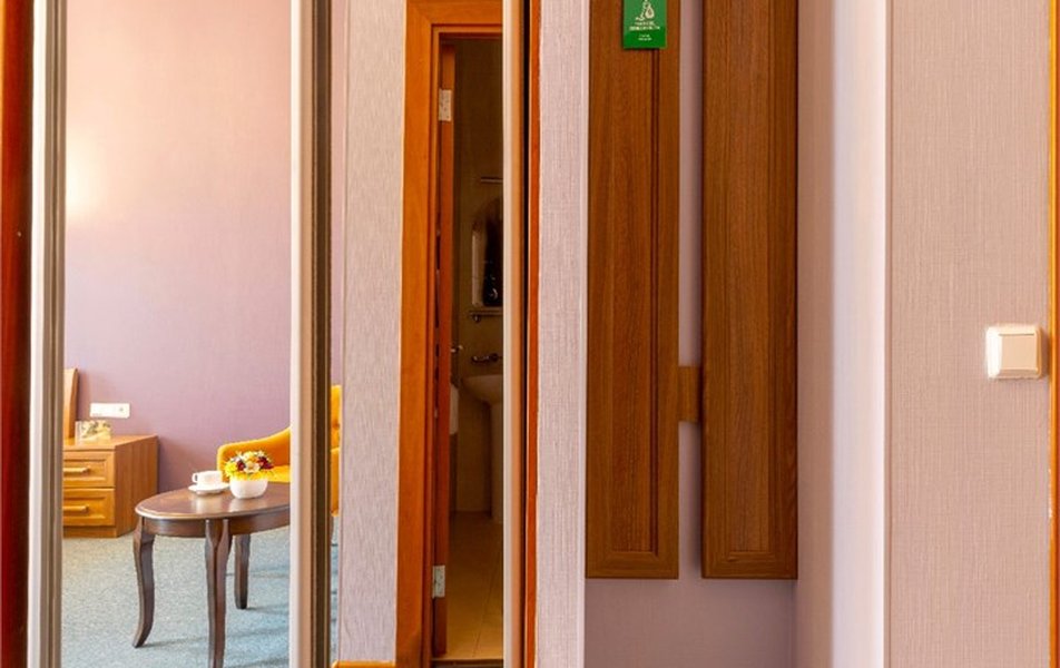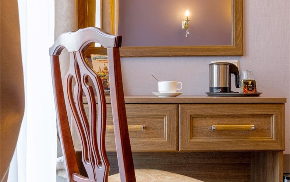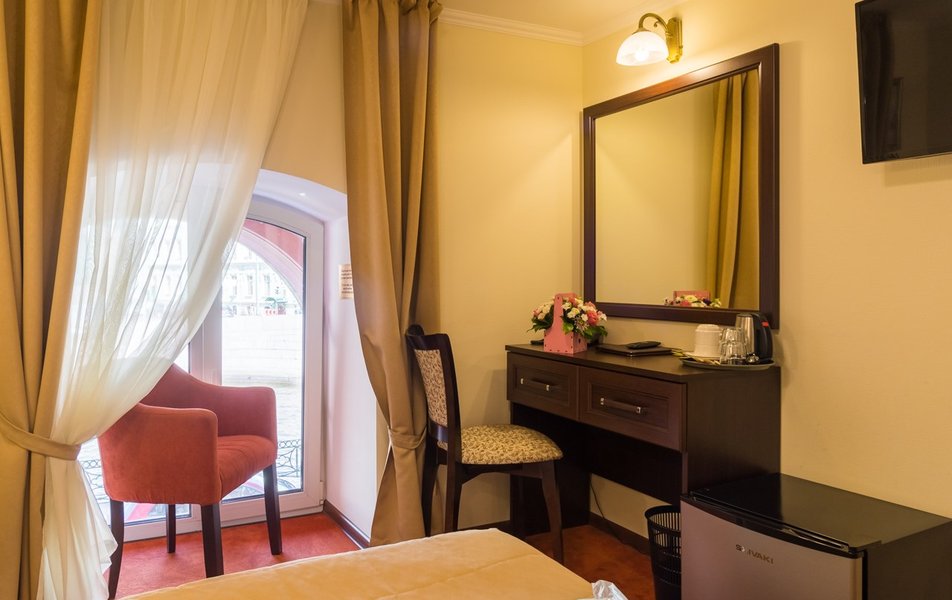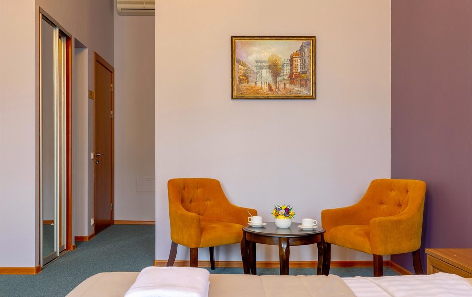 Люкс 2-местный (с балконом и джакузи, вид на набережную) Количество комнат: 1-комнатный Тип номера: Люкс Дополнительное место: еврораскладушка Вид из номера: на реку: на набережную Кол-во доп. мест: 1 Кол-во основных мест: 2 Площадь (кв. м): 23 Мебель: вешалка, зеркало, кровать двуспальная, прикроватные тумбочки, стол, столик туалетный, стулья, шкаф Оборудование: кондиционер, мини-холодильник, набор посуды, сейф, телевизор, чайный набор посуды, электрочайник Санузел: с джакузи, тапочки, туалетные принадлежности, фен, халат Сервис: Wi-Fi бесплатно, смена полотенец, смена постельного белья, уборка номера
