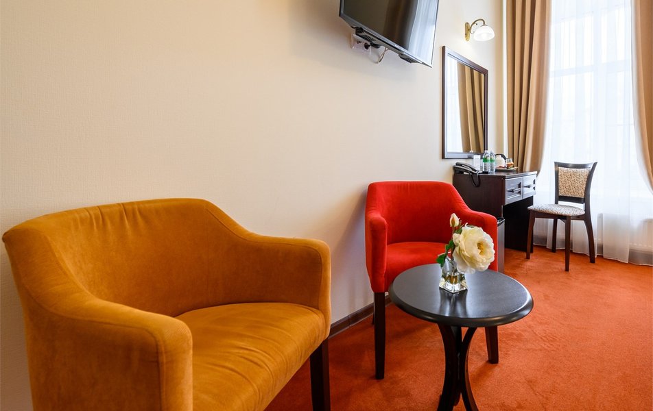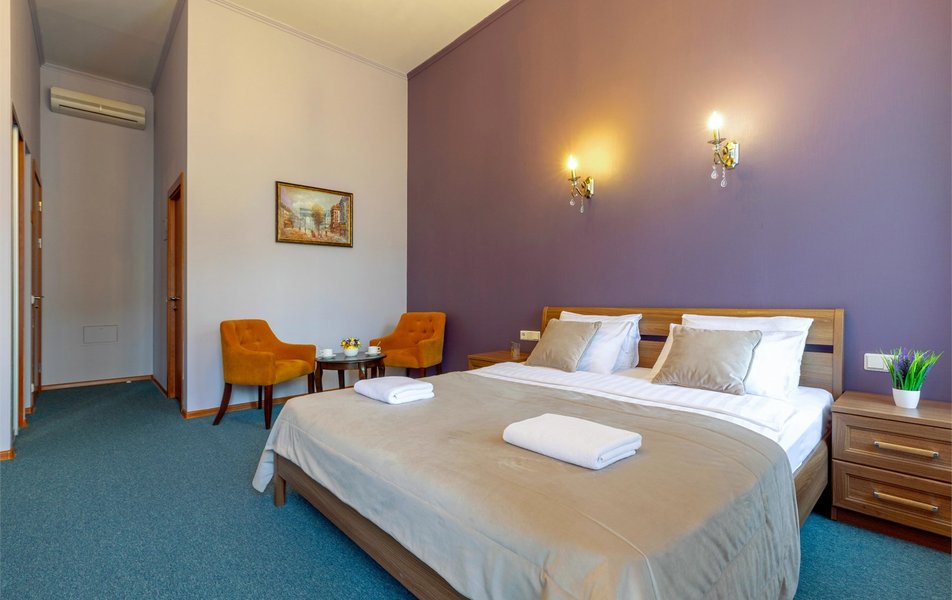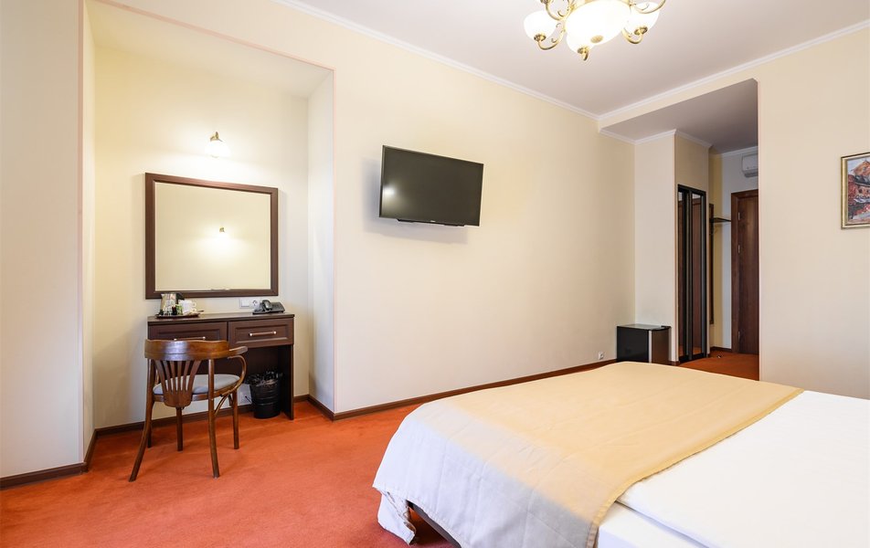 Делюкс 2-местный (с балконом, вид на набережную) Количество комнат: 1-комнатный Тип номера: Полулюкс Дополнительное место: еврораскладушка Вид из номера: на реку: на набережную Кол-во доп. мест: 1 Кол-во основных мест: 2 Площадь (кв. м): 23 Мебель: вешалка, зеркало, кровать двуспальная, прикроватные тумбочки, стол, стулья, шкаф Оборудование: кондиционер, мини-холодильник, набор посуды, сейф, телевизор, чайная станция, чайный набор посуды Санузел: с душем, тапочки, туалетные принадлежности, фен, халат Сервис: Wi-Fi бесплатно, смена полотенец, смена постельного белья, уборка номера