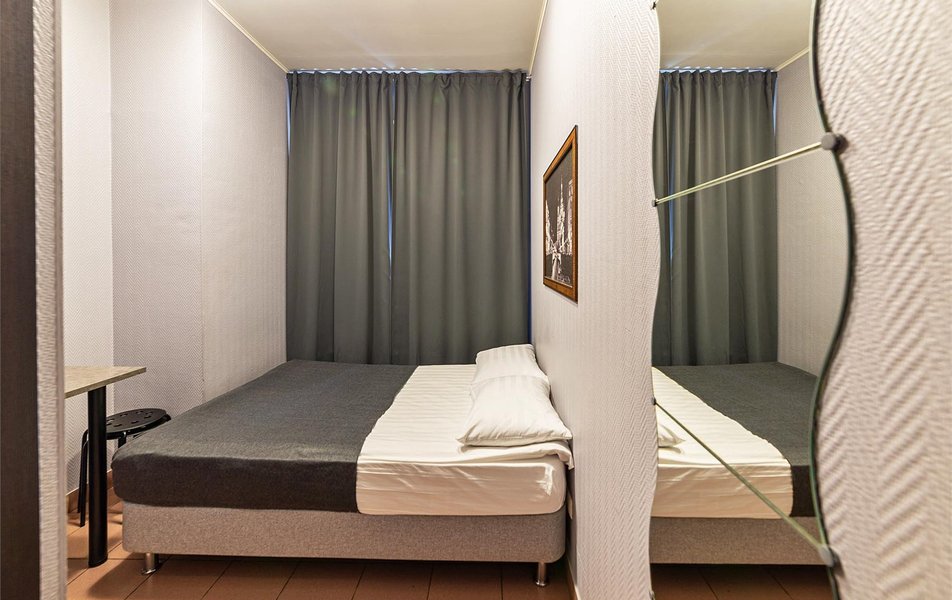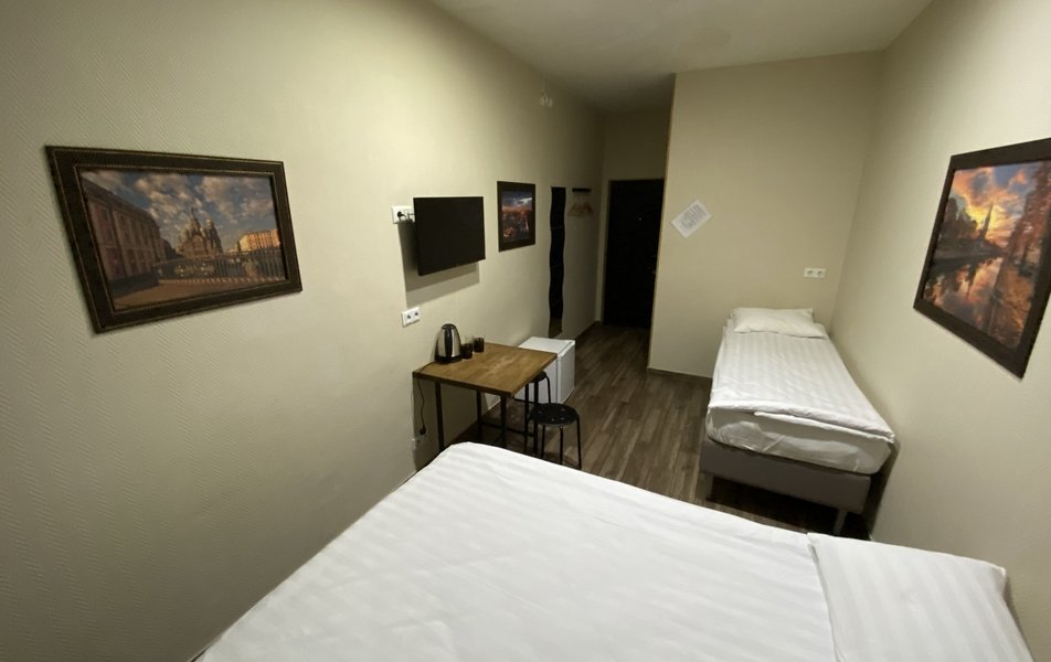 Кто пишет положительные отзывы?????? Отель на Лиговском. Вход со двора на втором этаже, подъем по крутой лестнице (не скользкая), этажи считаются от ресепшен. Если окна на проспект - это плохо. Шум не уменьшается даже при закрытии окон. Не рекоменду 3 этаж - душно, окно под потолком, не проветривается и подъем по разноуровневым крутым ступеням не удобный. При заселении от 301 номера отказались. Духота, номер маленький, санузел грязный/ потертый. Дали 117 - конура. Кровать в нише, узкая как минимум 1,5 спальня, но не для двоих. Мебель (комод или тумба) сломана, внутри пыльно, волосы от предыдущих постояльцев. Полотенца были более менее чистые как и постельное белье. Матрац довольно удобный. Санузел новый, душ довольно удобный, все работает. Мыло шампунь не мылятся. Был новый фен. Санузел очень маленький. В комнате пахло из санузла. В коридоре чехол на гладильной доске грязный, утюг удобный.