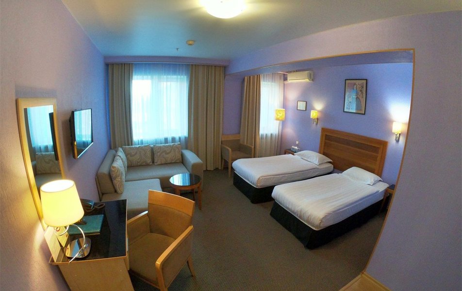 В номере на 8 этаже были тараканы. На 9 этаже располагается ресторан, вероятно, там была дезинфекция от тараканов, поэтому они приходили ко мне в номер умирать. Уборщица, убирая тараканов, которых я видела еще утром, их просто сдвинула ближе к плинтусу. Вернувшись вечером в номер и увидев тараканов, которые были еще утром, пошла на ресепшен за решением этой проблемы. К сожалению, решить ее не смогли. Переселить отказались, сославшись на отсутствие номеров, убирать тоже отказались, т. к. горничной уже не было. Пришлось переехать в другую гостиницу, оплату согласились вернуть только со следующих суток. Очень не рекомендую эту гостиницу