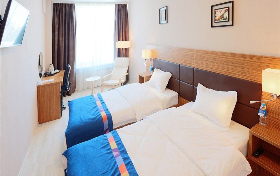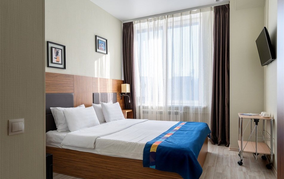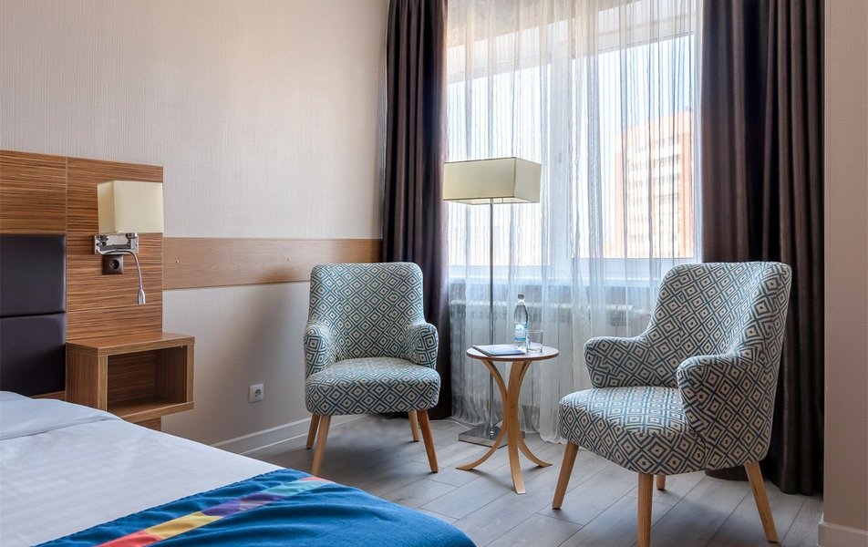 Стандартный 2-местный 1-комнатный (Улучшенный) Количество комнат: 1-комнатный Тип номера: Стандартный Вид из номера: на город Кол-во основных мест: 2 Площадь (кв. м): 24 Мебель: вешалка, зеркало, кресло, кровати односпальные, прикроватные тумбочки, стол: письменный, столик журнальный, стул, шкаф Оборудование: кондиционер, мини-холодильник, сейф, телевизор ЖК, телефон, чайный набор посуды, электрочайник Санузел: с ванной или душевой кабиной, тапочки, туалетные принадлежности, фен, халат Сервис: Wi-Fi бесплатно, смена полотенец, смена постельного белья, уборка номера