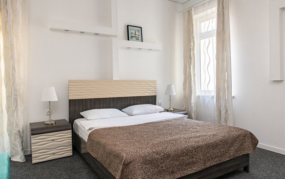 Приехав во Владивосток с будущей женой, погуляв вечерком по набережной и по центральным улицам города и в 00:30 и совсем не хотелось ехать к друзьям (у которых остановились)и будить их своим приходом начали мониторить гостиницы и сразу попалась эта гостиница....такси...регистрация... и мы в номере) Номер - это как однокомнатная квартира, есть кухня отдельная со всей посудой и бытовой техникой, также там стоит угловой диван который раскладывается и превращается в ещё одно спальное место)) а комнате все довольно просто но со вкусом - большая кровать, телевизор, шкаф купе...чисто комфортно..удобно)