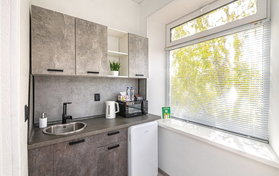 Были в командировке, отель забронировали по WhatsApp,очень удобно.Номера оснащены мини-кухней,есть микроволновка,плитка электрическая,чайник,холодильник,стиральная машина,набор посуды.Очень удобно.В номера на первом этаже вход с внутреннего дворика.Остались довольным!