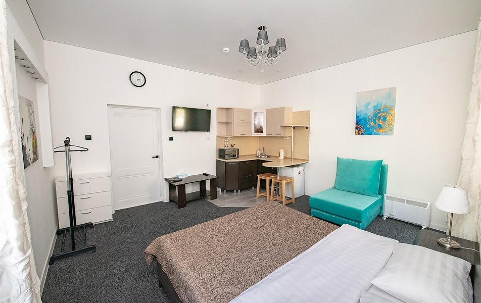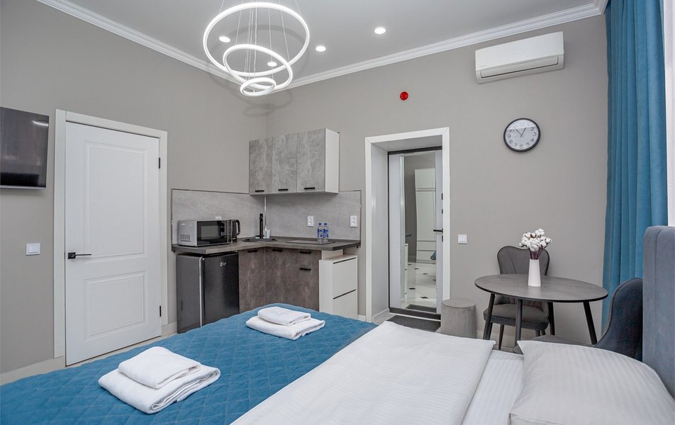 Отель удобно расположен в центре. Сотрудники оперативно обрабатывают бронирования и сообщения. В номере есть все необходимое (кухня, кондиционер, гладильная доска и т.п.). Данный вид проживания отличаются от привычных отелей, но имеет свои плюсы. Большое спасибо ребятам, работающим на ресепшн за участливое отношение.