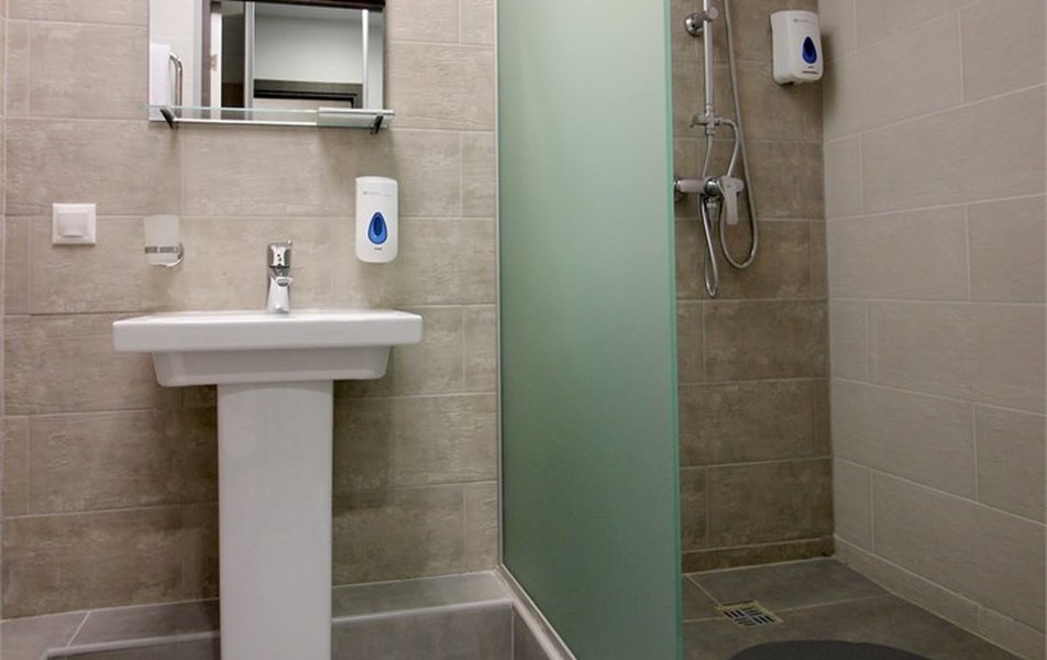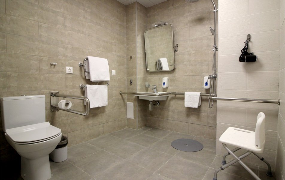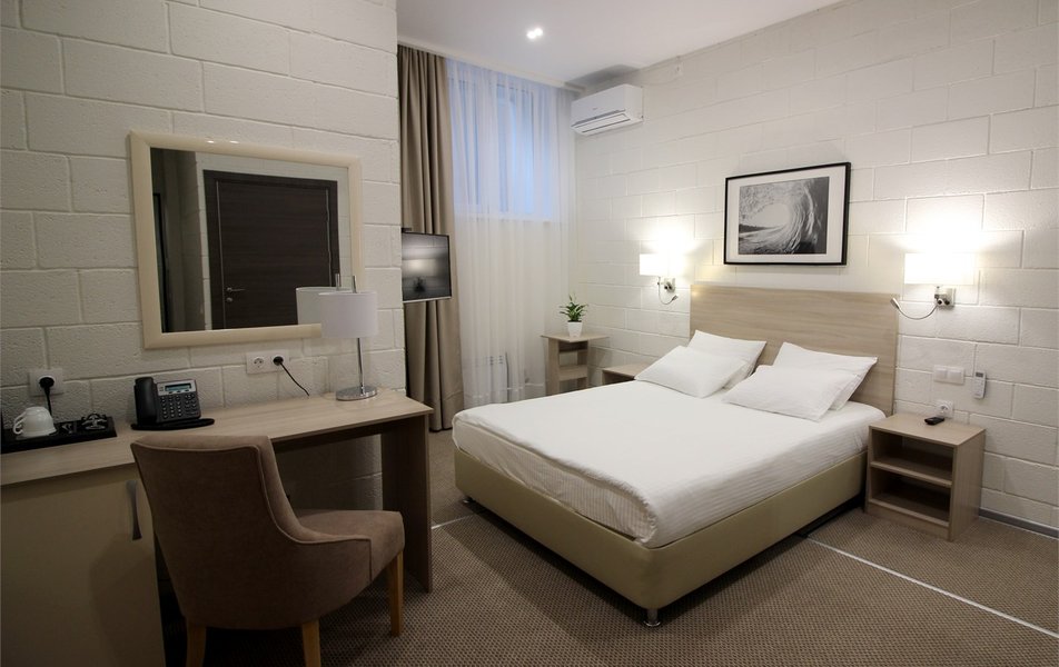 Стандартный 2-местный (DBL для людей с ОВ) Количество комнат: 1-комнатный Тип номера: Стандартный Кол-во основных мест: 2 Площадь (кв. м): 23 Мебель: вешалка, зеркало, кресло, кровать двуспальная, прикроватные тумбочки, стол, стул, шкаф-купе Оборудование: кондиционер, мини-холодильник, сейф, телевизор, телефон, чайный набор посуды, электрочайник Санузел: с душевой кабиной, тапочки, туалетные принадлежности, фен Сервис: Wi-Fi бесплатно, карточная система замков, смена полотенец, смена постельного белья, уборка номера
