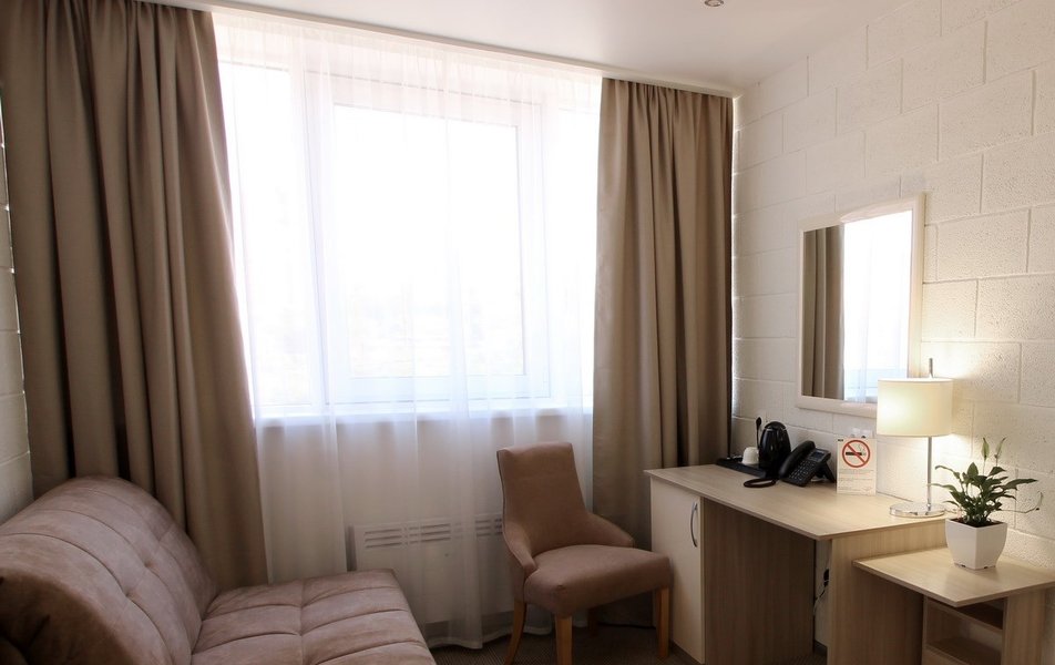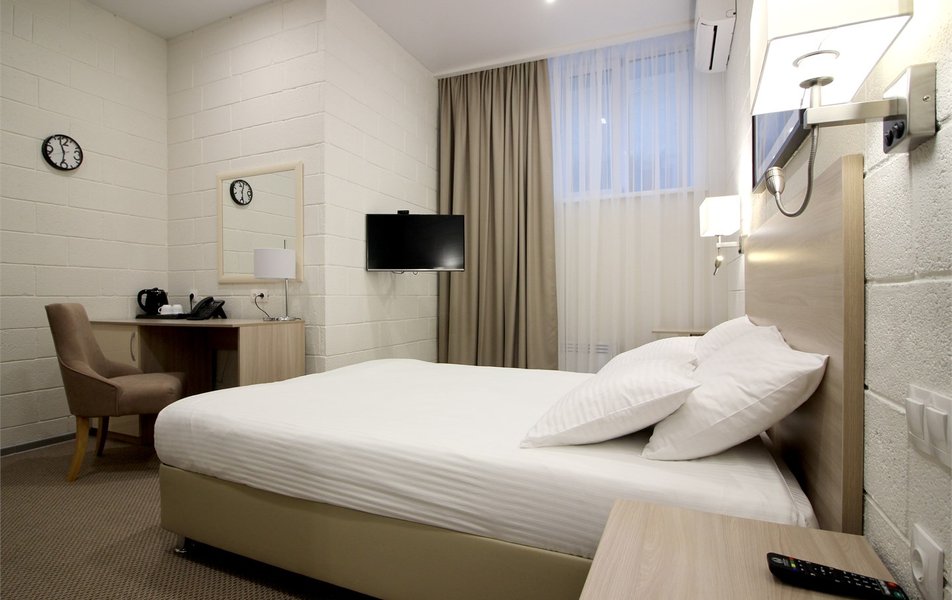 Стандартный 2-местный (DBL) Количество комнат: 1-комнатный Тип номера: Стандартный Кол-во основных мест: 2 Площадь (кв. м): 18 Мебель: зеркало, кресло, кровать двуспальная, прикроватные тумбочки, стол, стул, шкаф-купе Оборудование: кондиционер, мини-холодильник, сейф, телевизор, телефон, чайный набор посуды, электрочайник Санузел: с душевой кабиной, тапочки, туалетные принадлежности, фен Сервис: Wi-Fi бесплатно, карточная система замков, смена полотенец, смена постельного белья, уборка номера