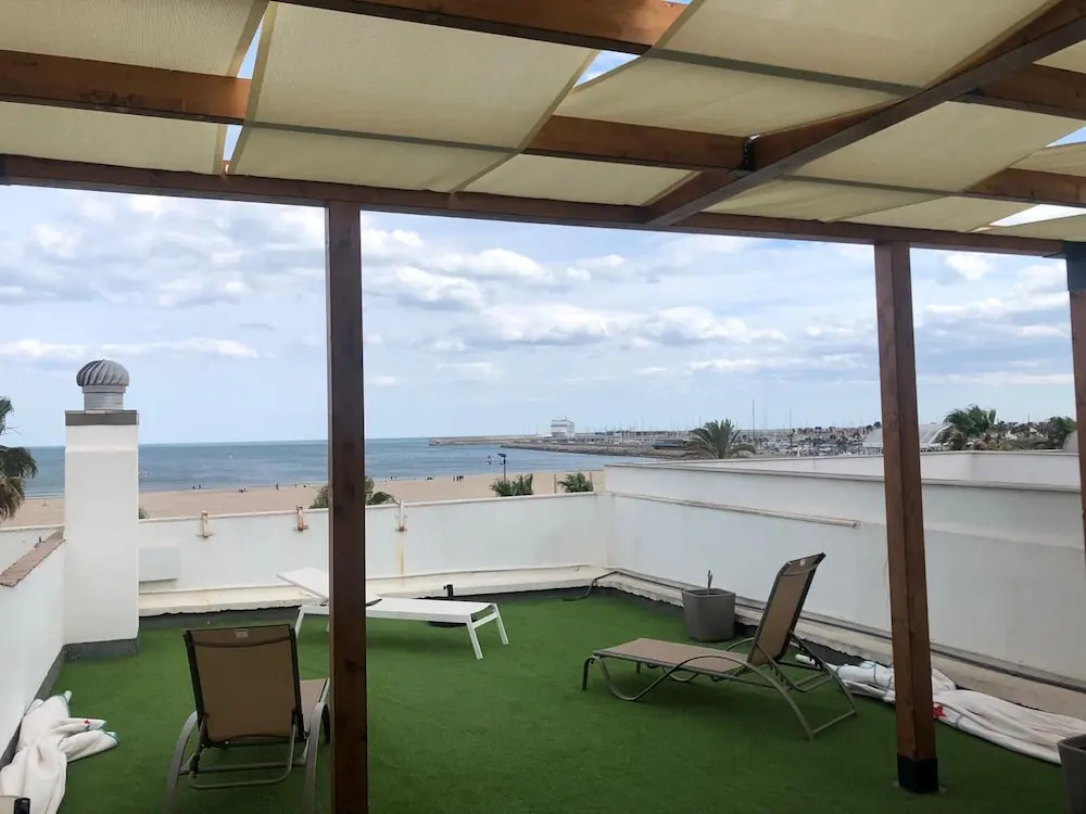 Расположение - все! Прямо на пляже у нас также был вид на Nice Beach из Нашего номера.Сам номер довольно baic, но чистый. Немного дороговат. Наше самое дорогое в течение Нашего путешествия по Испании и Португалии и определенно не самый лучший!Маленький, бесплатный завтрак включен в стоимость, но ничего, чтобы наесться.Много ресторанов поблизости.Есть автобус в Валенсию поблизости.