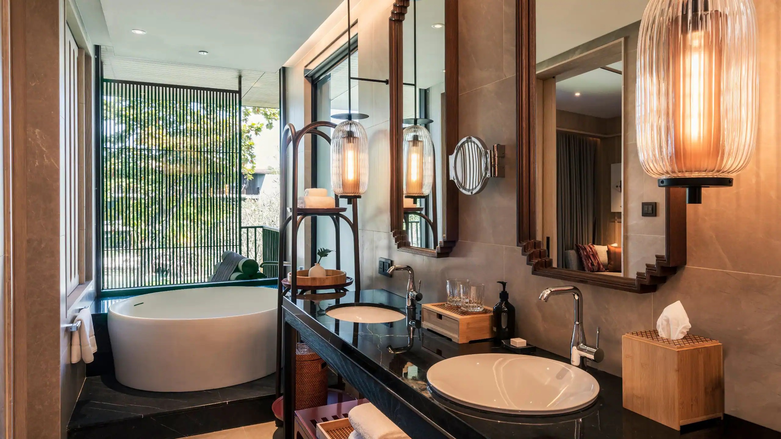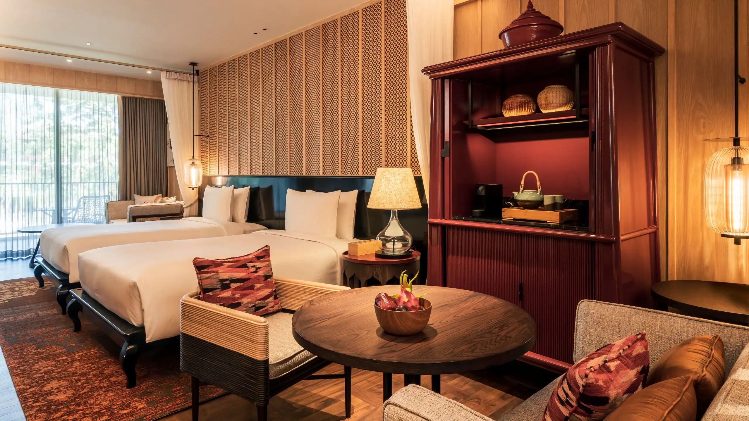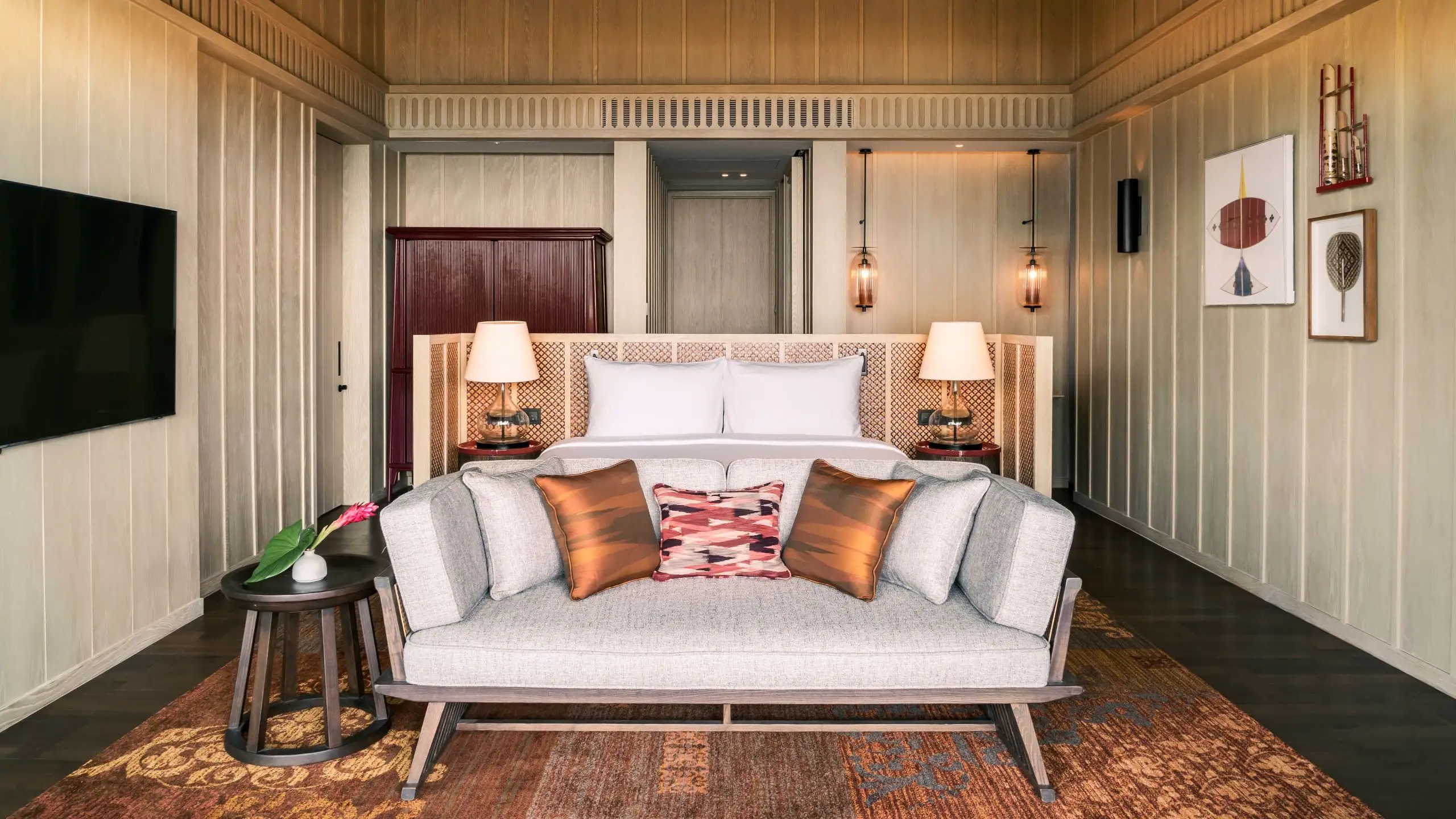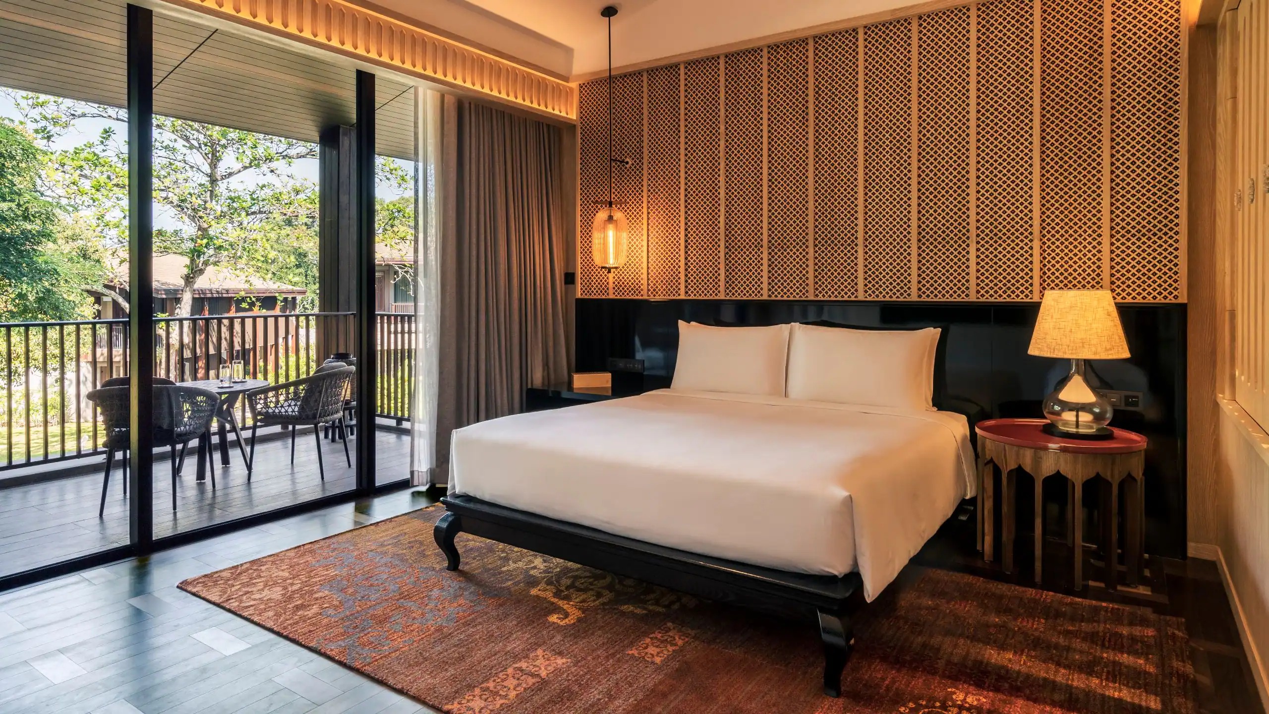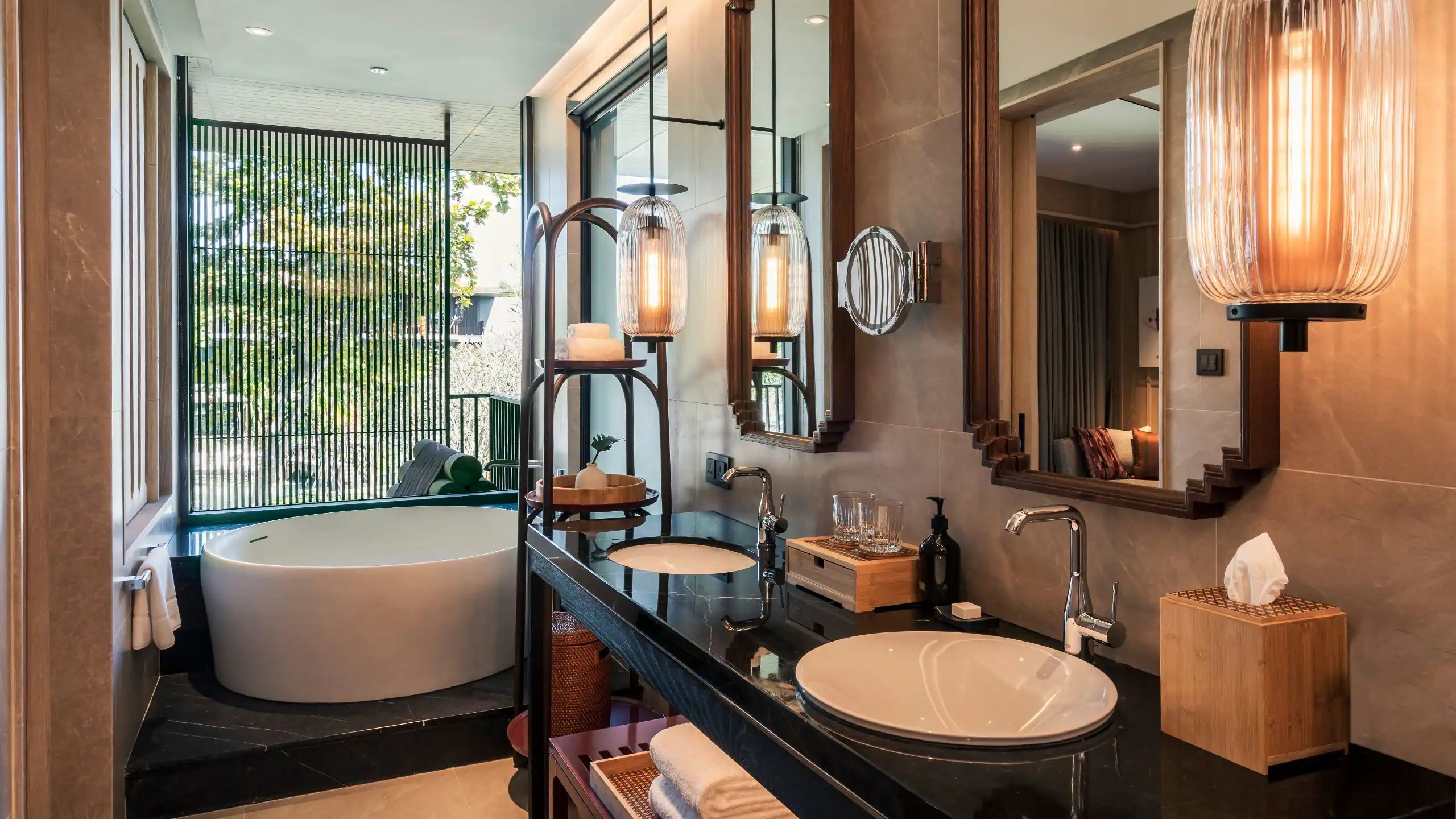 Однокомнатный номер с балконом/террасой и ванной комнатой с круглой ванной, двойной раковиной и тропическим душем. В числе стандартных удобств — Wi-Fi, телевизор, кондиционер, мини-бар с закусками и напитками, кофеварка Nespresso, чайные принадлежности. Гости размещаются на большой двуспальной кровати, кушетке, есть гостиная зона. Из номера открывается вид на тропический сад.