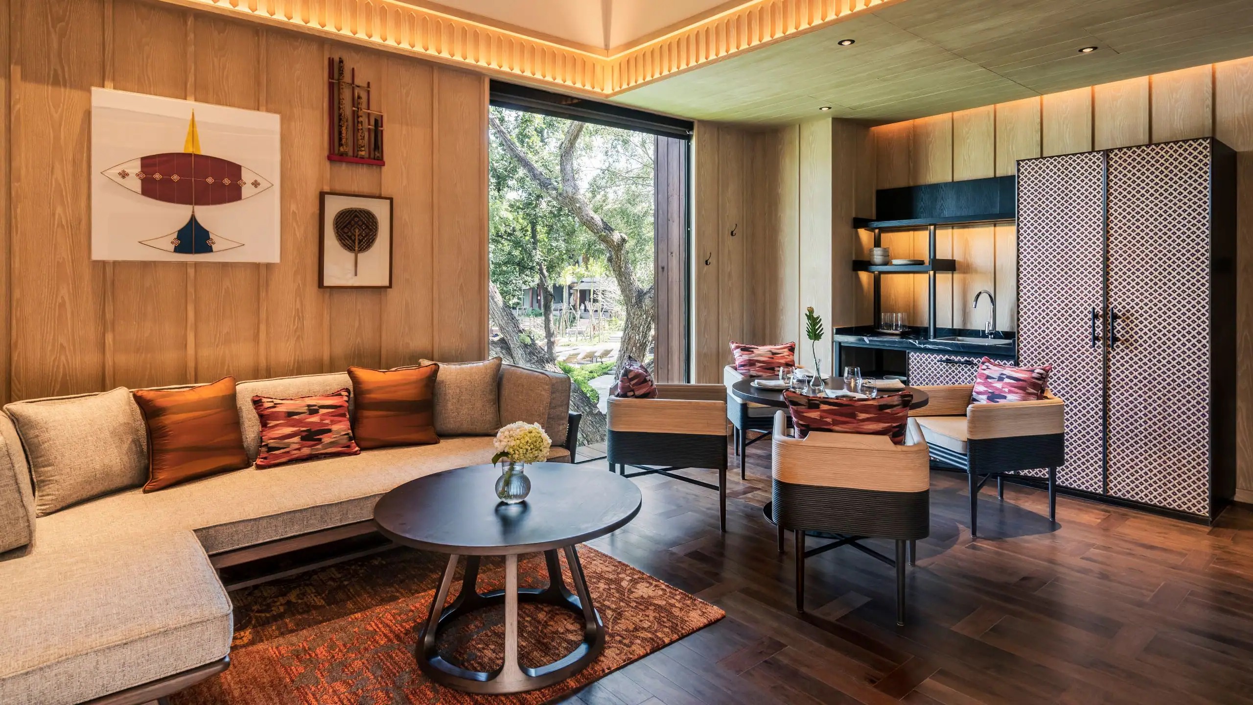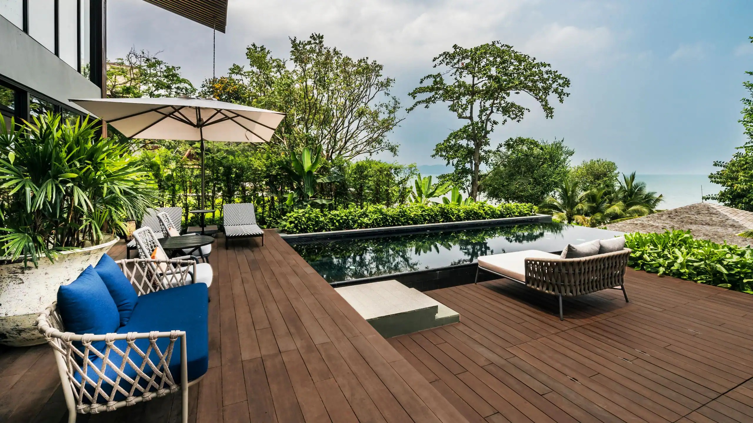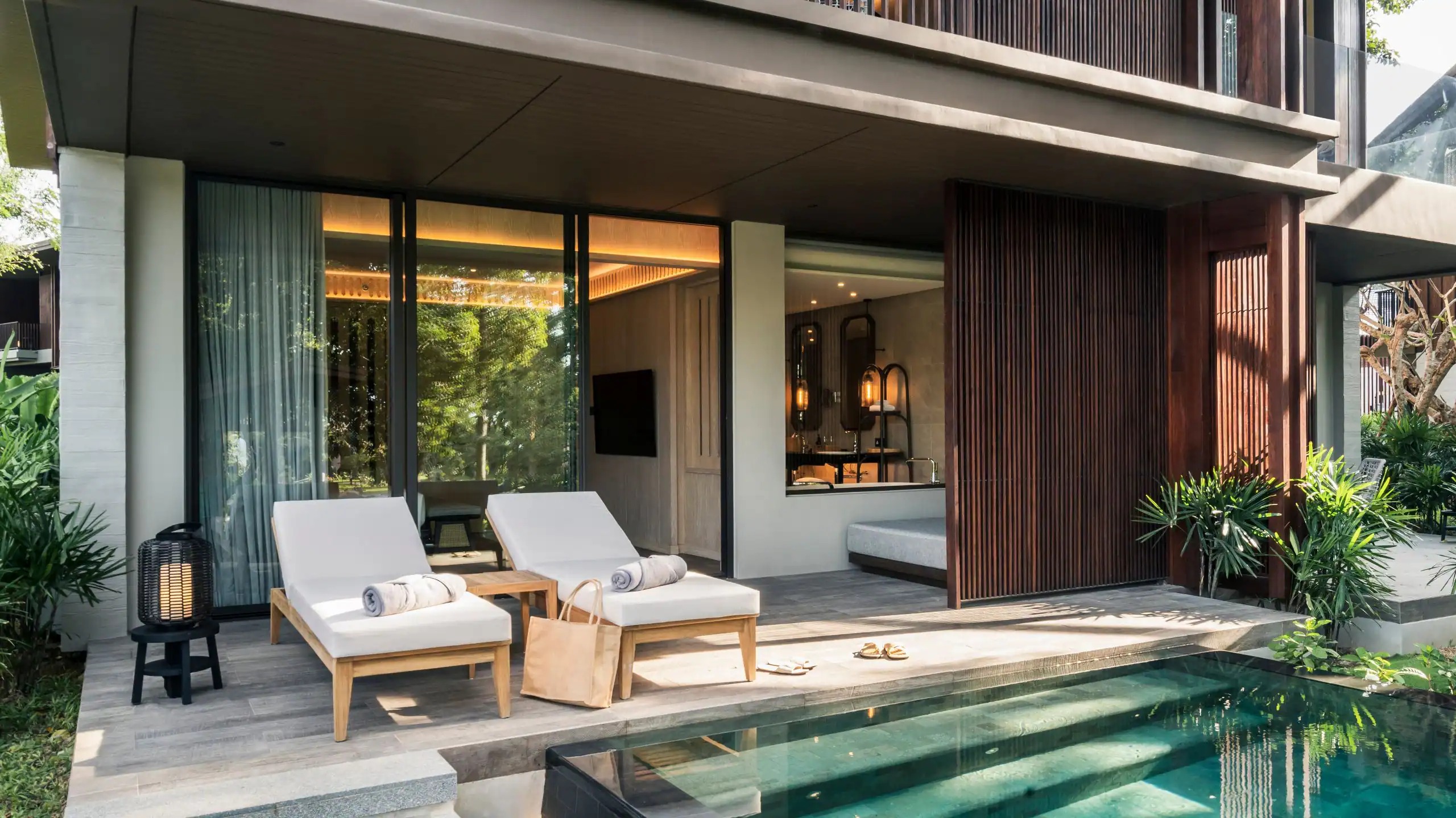 Комфортабельный люкс включает спальню с двуспальной кроватью, гостиную с обеденной зоной, собственный мини-бассейн (10 кв.м), террасу (20 кв.м), ванную комнату с ванной, двойной раковиной и тропическим душем, кладовую. В распоряжении гостей Wi-Fi кондиционер, телевизор, мини-бар, кофеварка Nespresso, принадлежности для чая/кофе, набор гостиничной косметики.