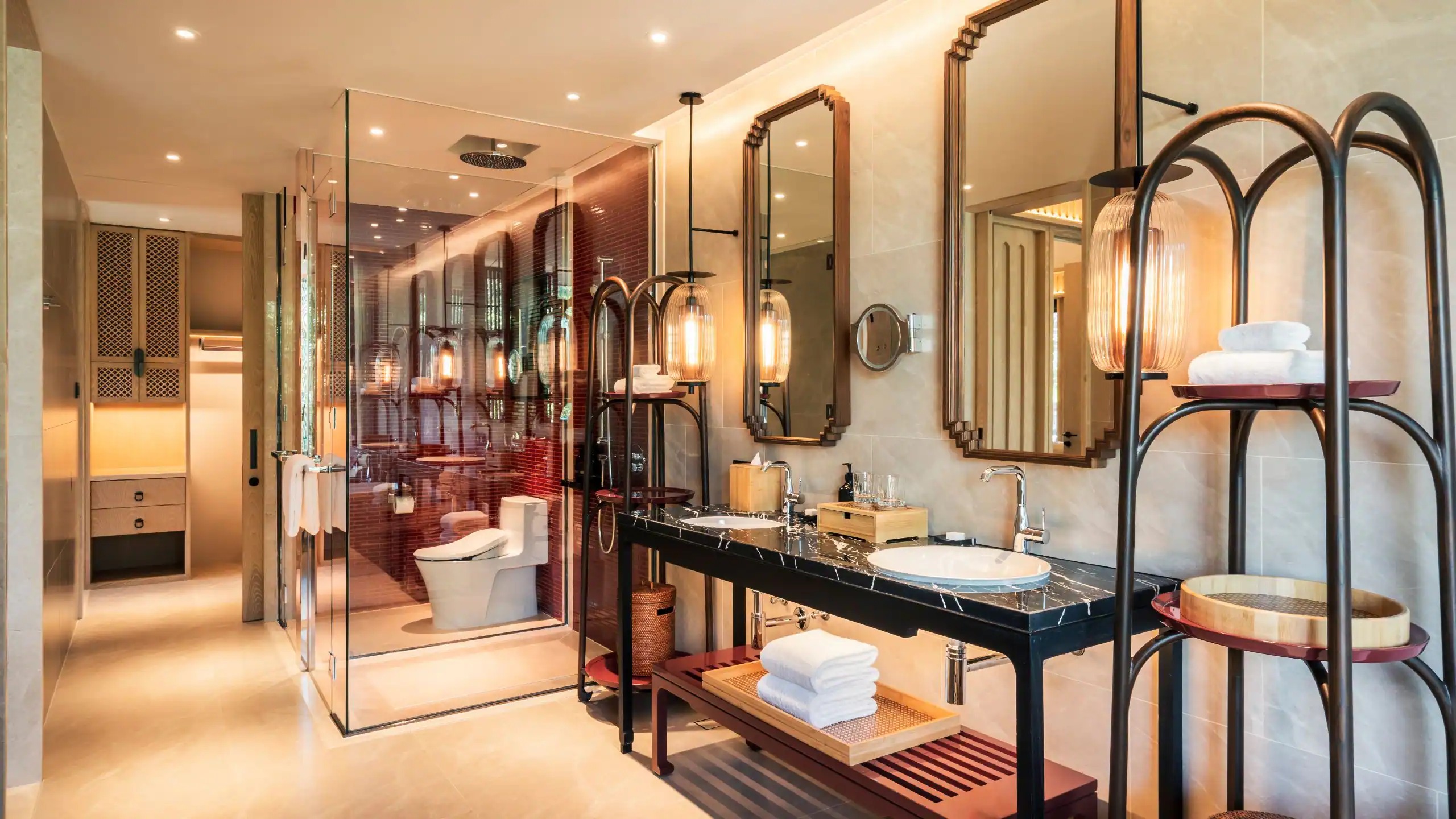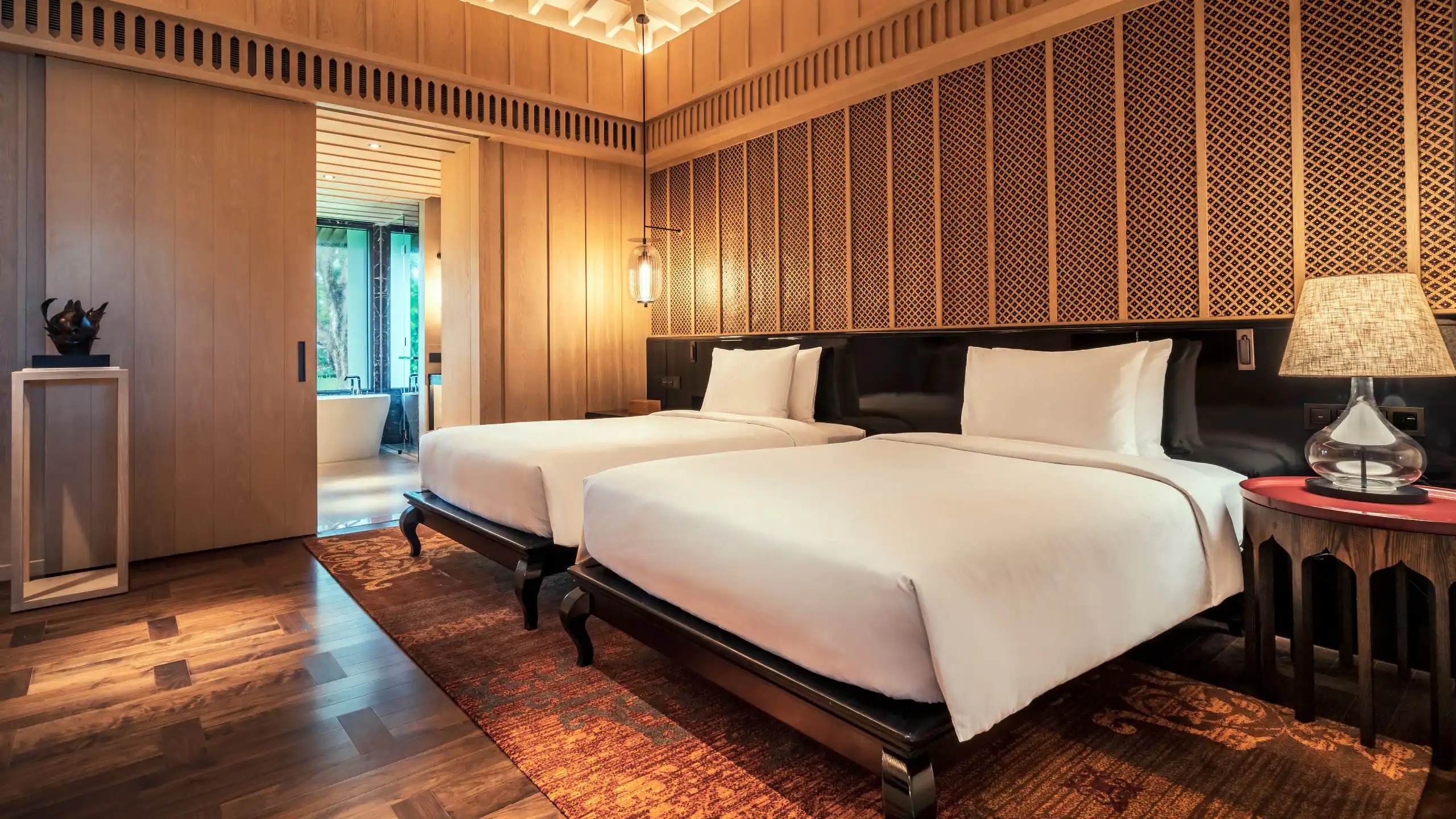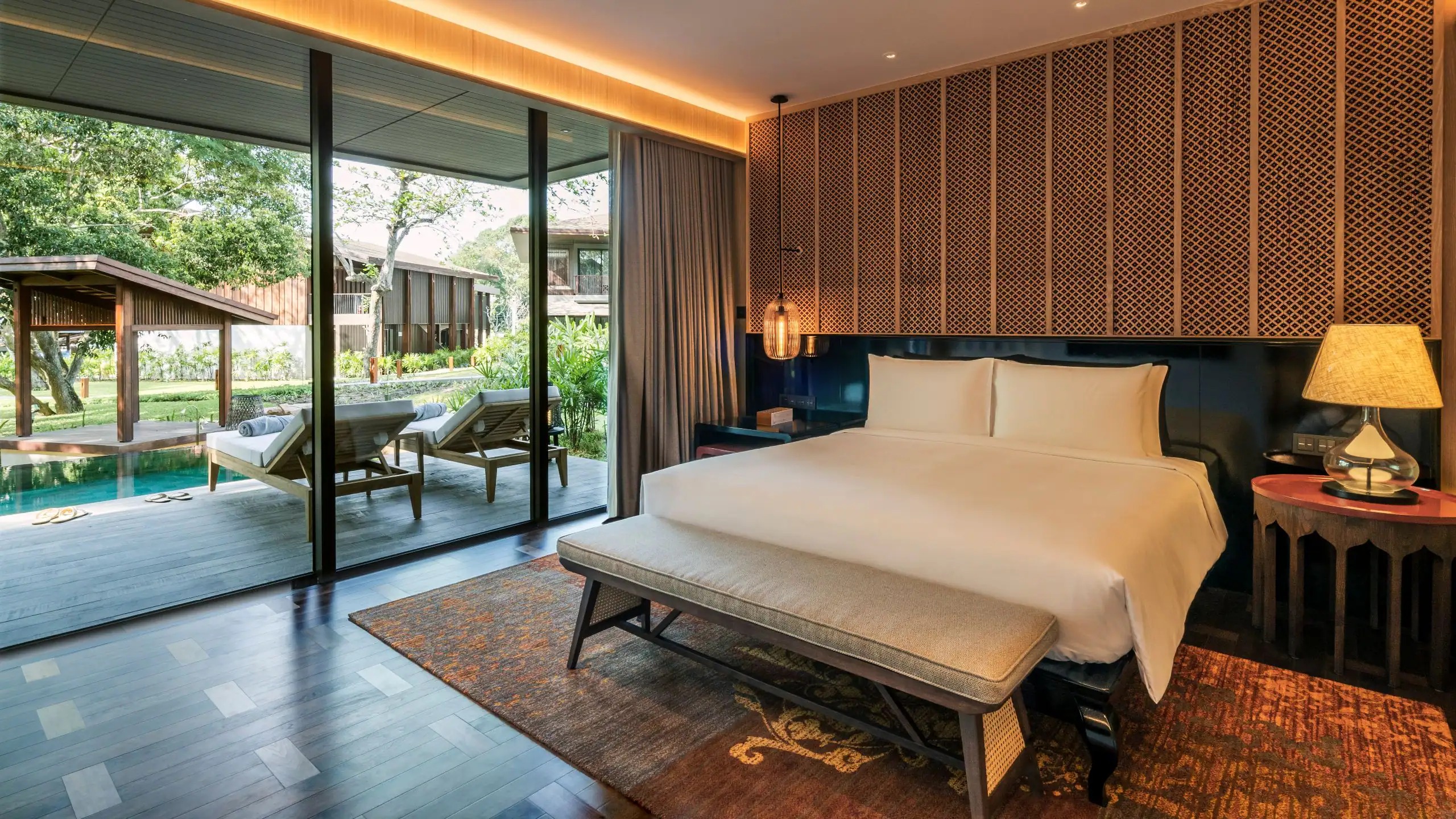 Комфортабельный люкс включает спальню с двуспальной кроватью, гостиную с обеденной зоной, собственный мини-бассейн (10 кв.м), террасу (20 кв.м), ванную комнату с ванной, двойной раковиной и тропическим душем, кладовую. В распоряжении гостей Wi-Fi кондиционер, телевизор, мини-бар, кофеварка Nespresso, принадлежности для чая/кофе, набор гостиничной косметики.
