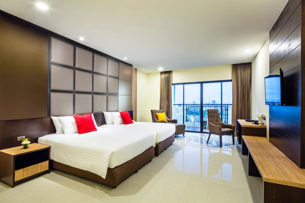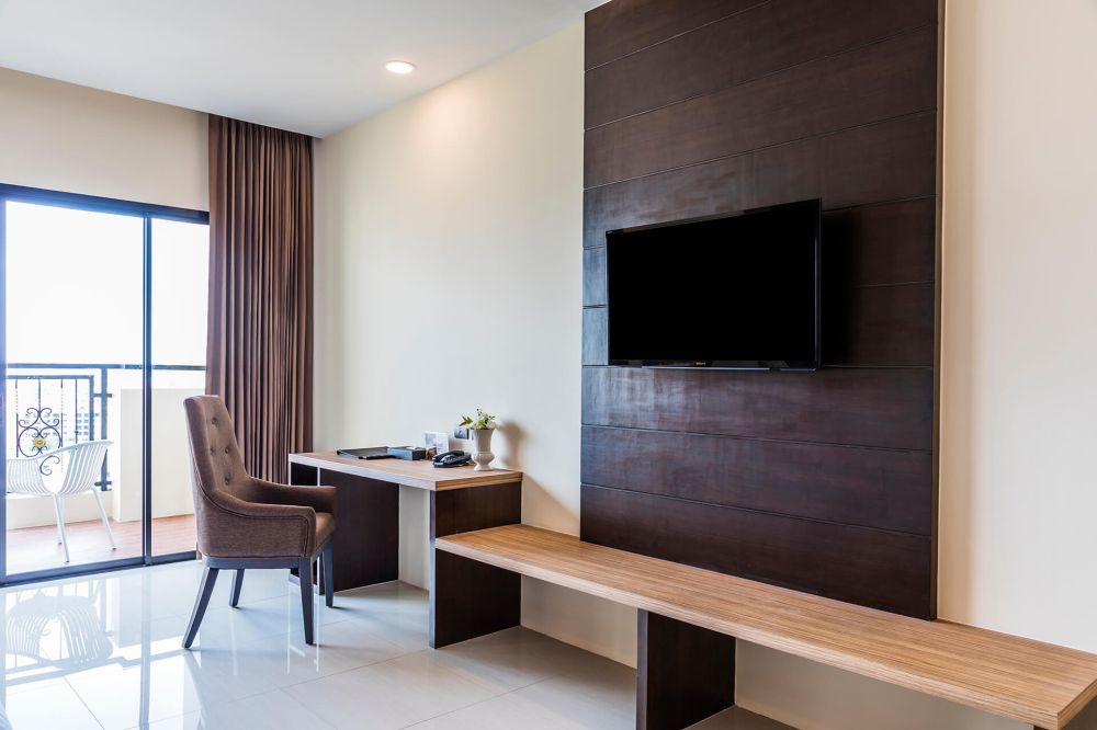 Однокомнатный номер с меблированным балконом, открывающим вид на город. Оснащен двуспальной/2 односпальными кроватями, мягким креслом, кондиционером, спутниковым телевидением, сейфом, телефоном, мини-холодильником, набором для приготовления чая/кофе, рабочим местом, шкафом. Ванная комната имеет душ, ванну, фен, гигиенические средства.