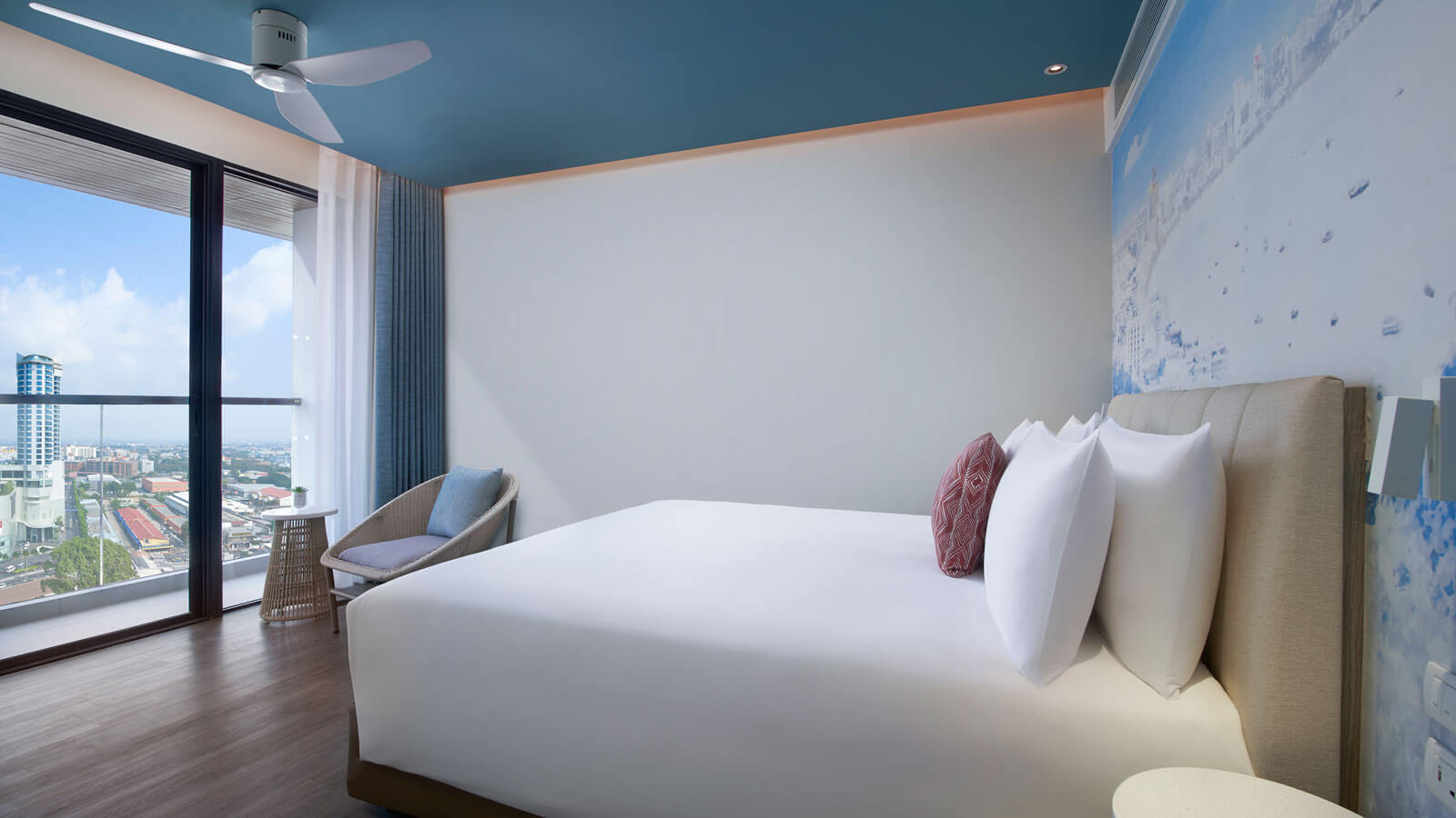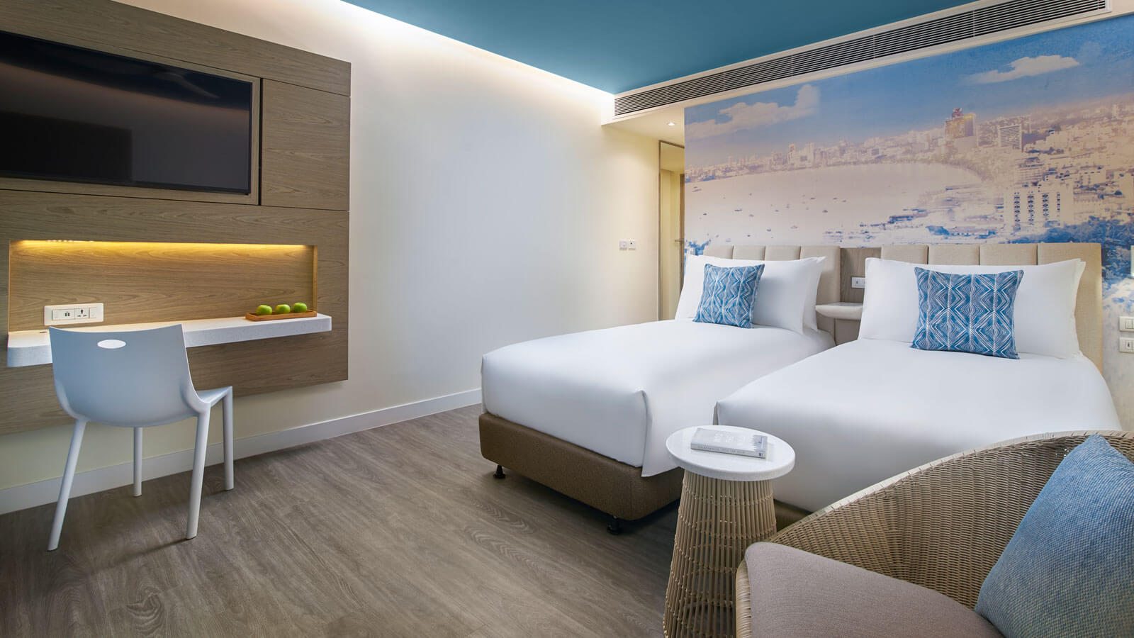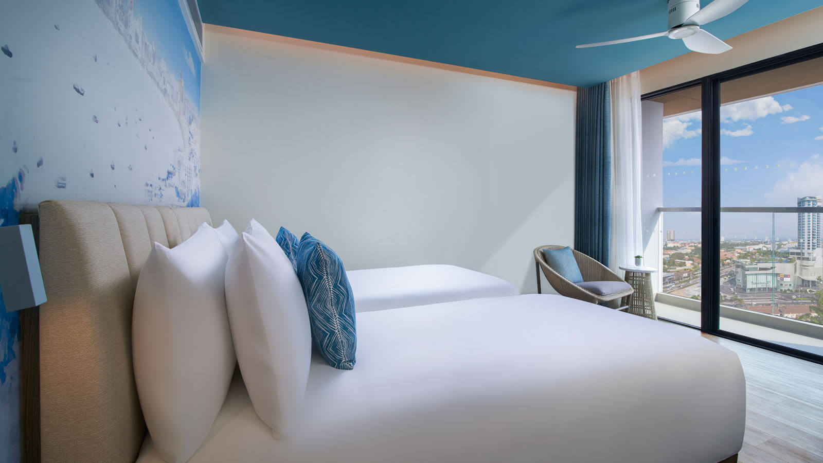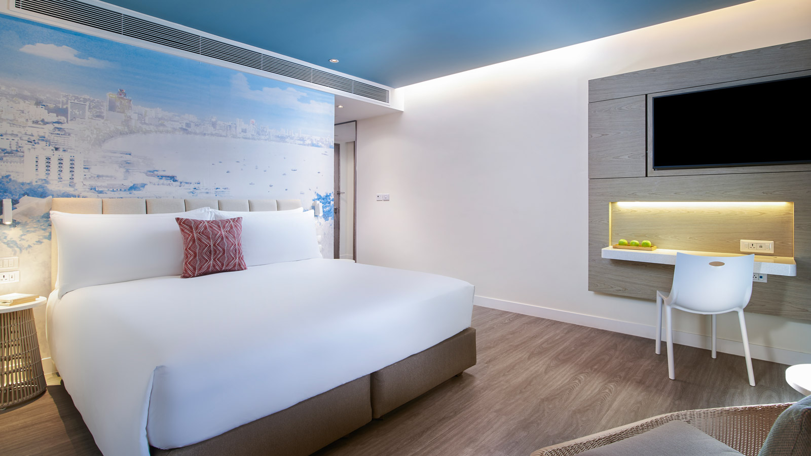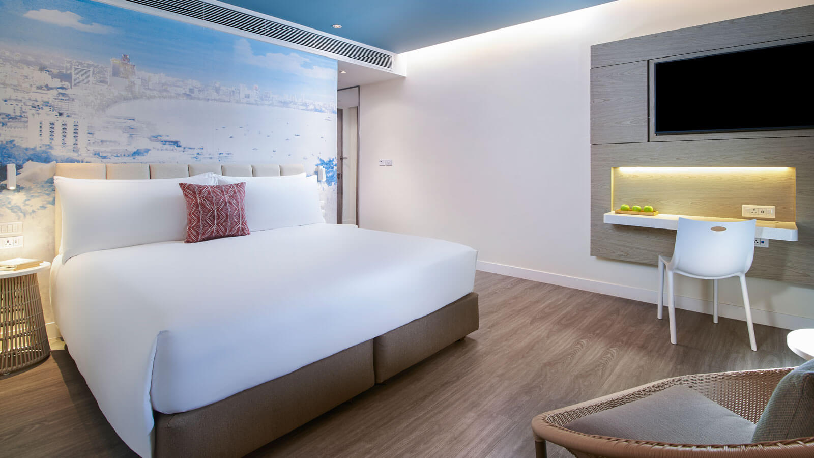 Отдыхали со взрослым сыном 10 дней в данном отеле. Отель понравился, но есть некоторые моменты, на которые стоит обратить внимание при бронировании номеров. Отель находится практически рядом с крупным ТЦ «Терминал 21» и недалеко от центрального пляжа. Но купаться на этом пляже я бы не советовала, т.к. вода не отличается чистотой. Зато прогуляться по набережной вечером или посидеть в кафе на Пляжной улице очень приятно. Номера в отеле выполнены в современном стиле, достаточно просторные для двоих, новые и чистые со всем исправно работающим оборудованием. Мы жили в номере с видом на море на 15-м этаже. Москиты на такую высоту не долетают, к тому же на балконной двери есть москитная сетка. Не понравилось, что на балконе нет ни столика, ни кресел. Есть небольшая сушилка для купальников. Номер охлаждается и кондиционером, и вентилятором, что очень удобно днём, когда мокрый после бассейна или душа (не простудишься). Хочу предупредить, что кондиционер работает на охлаждение только при плотно закрытом балконе. В ванной неплохая банная косметика, есть всё кроме бальзама для волос и бритвенных принадлежностей. Убираются неплохо, нужно не забывать нажать в номере кнопку с уборкой. Завтраки вкусные и разнообразные. Есть блюда с азиатской и с европейскими кухнями. Присутствует один вид свежевыжатого сока. Вид сока меняется через день. Не понравились свежие фрукты на завтрак. Вкусные были только арбузы. Дыни, ананас были явно неспелые. Понравились бассейны отеля, там их 3. Самый большой, к сожалению, неглубокий и два маленьких, расположенных под тентами. В одном детском бассейне есть горка для детей и постоянно работают спасатели. В зоне бассейнов есть два пляжных душа и туалет. Всё идеально чистое. Пляжные полотенца большие и хорошего качества. Бассейны работают до 20:00. Лежаков всегда хватало, несмотря на то, что отдыхающих в отеле много. Вообще в отеле прекрасная команда из обслуживающего персонала, всё делается быстро и чётко. На просьбы сотрудники откликаются оперативно и помогают решать небольшие проблемы, возникающие во время отдыха. А теперь лично мой опыт и наблюдения. Так как отель большой, то и отдыхающих в нём много (даже в низкий сезон), поэтому суета вокруг — неизбежность этого места. Если вам нужны тишина и релакс, то лучше поискать что-то не столь масштабное). Ещё момент. Отель позиционирует себя как место бережного отношения к природе, поэтому некоторые привычные атрибуты отеля 4* тут отсутствуют или очень дороги. Нет швейцара и нет носильщиков. При заселении вас никто не проводит в номер и вещи не отвезёт: всё сами, своими лапками). Цены на стирку в отеле грабительские (футболку постирать 100 или побольше бат). Ищите прачечную. Ближайшая, которую мы нашли, находится на «3-й сойке» ближе ко 2-й улице. Ещё один момент для тех, кто предпочитает самостоятельные поездки пакетным турам. При бронировании номера следите, чтобы имя на карте, с которой оплачивается бронь, совпадало с именем хотя бы одного гостя, указанного в брони. В отель не заселят, если имена разные, придётся оплачивать заново. Вот такая особенность политики безопасности отеля. В отеле можно поужинать, с безалкогольными напитками ужин стоит почти 700 бат на взрослого. Есть «счастливые часы», когда со скидкой можно заказать коктейли или блюда. Вообще этот отель подойдёт для активных лю